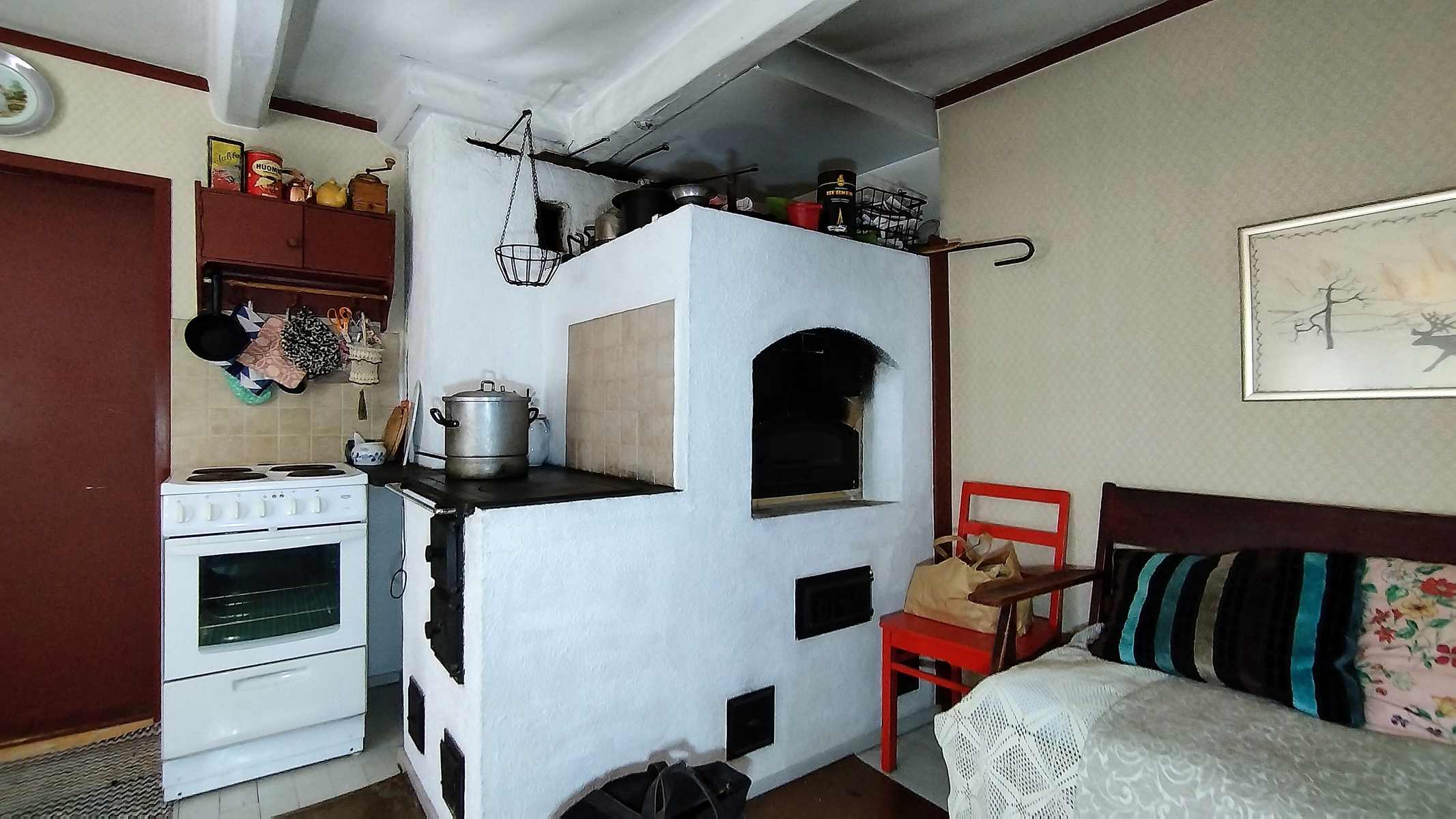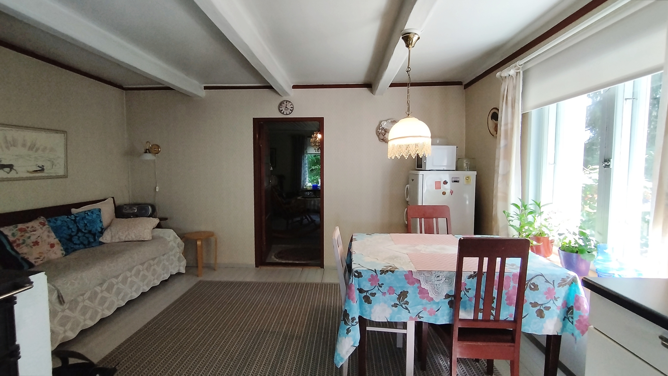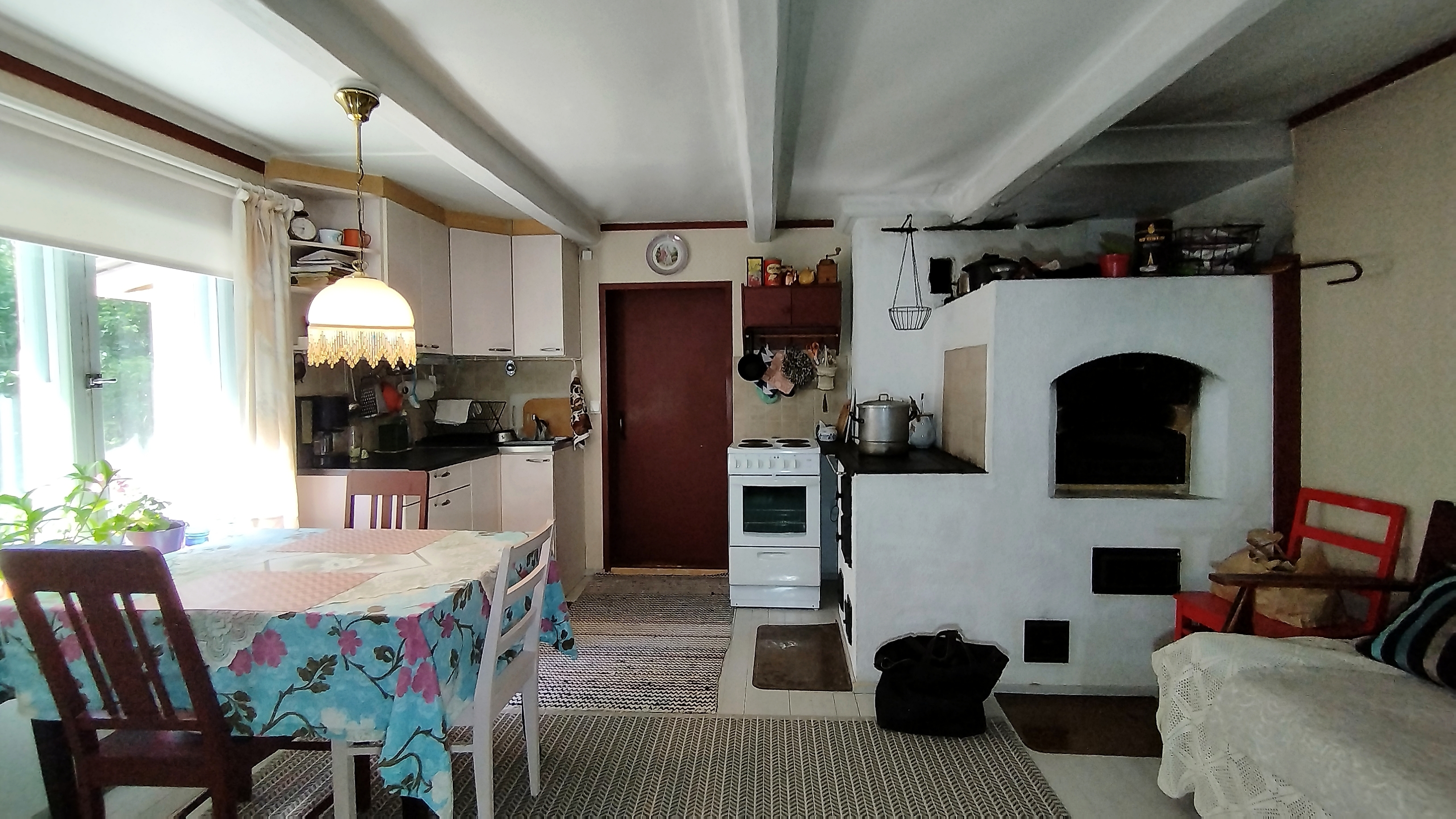 Mökin sydän on tilava keittiö, jossa on uusittu leivinuuni ja puuhella sekä tilaa ruokapöydälle. Suuressa tuvassa varaava takka tuo lämpöä ja tunnelmaa. Wc-tila on varustettu vesiosuuskunnan vesi- ja viemäriliittymillä, mikä lisää asumismukavuutta. Makuuhuone sijaitsee vinttihuoneessa yläkerrassa, ja lisäksi alakerrasta löytyy pieni huone majoittumiseen. Rakennus on vuosien varrella läpikäynyt useita parannuksia, kuten katon, sähköjen ja lattioiden uusimisen, mikä tekee siitä käyttövalmiin vapaa-ajan kodin.