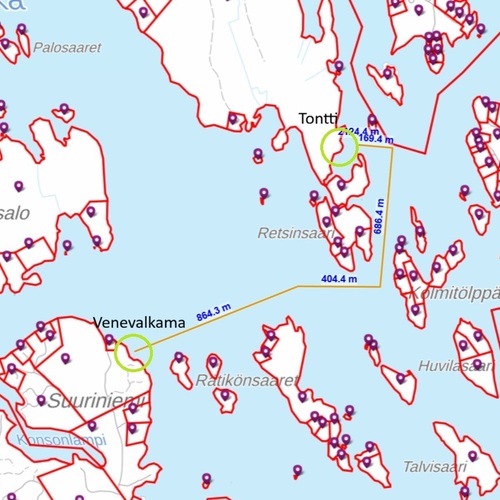 👉 Venematka noin 2 km (kartalta mitattuna).