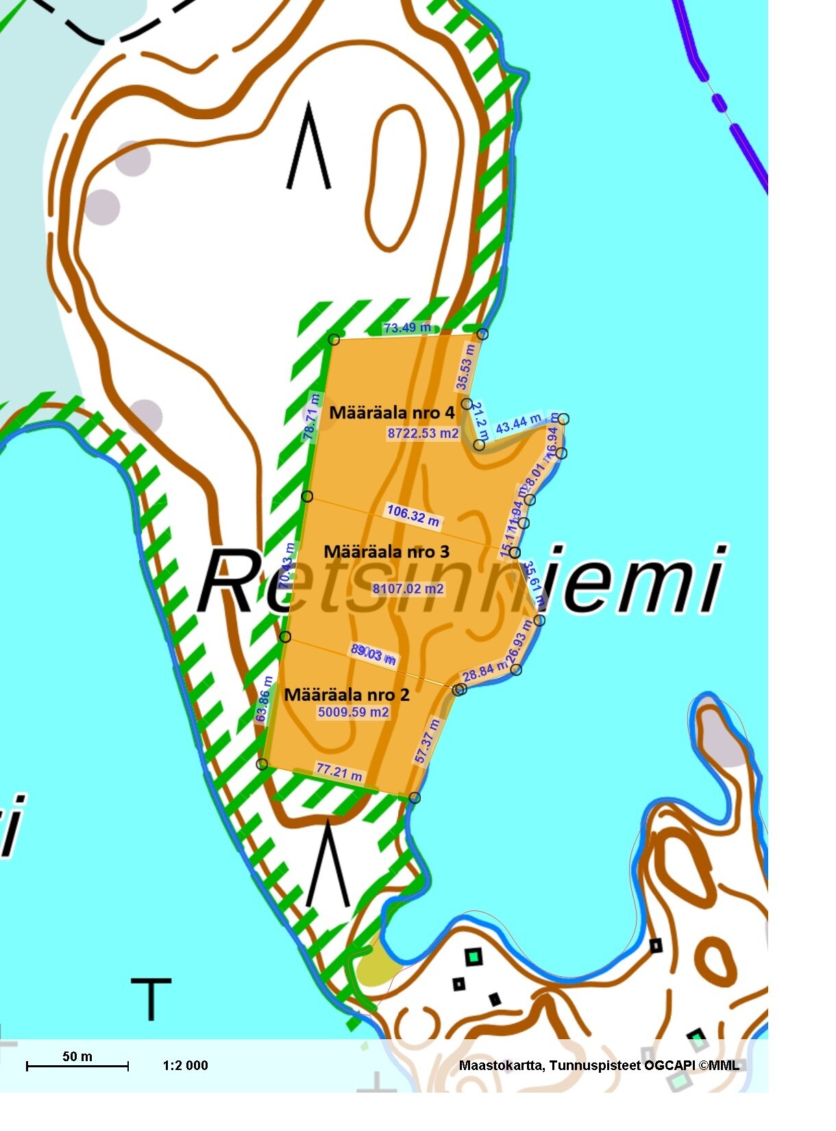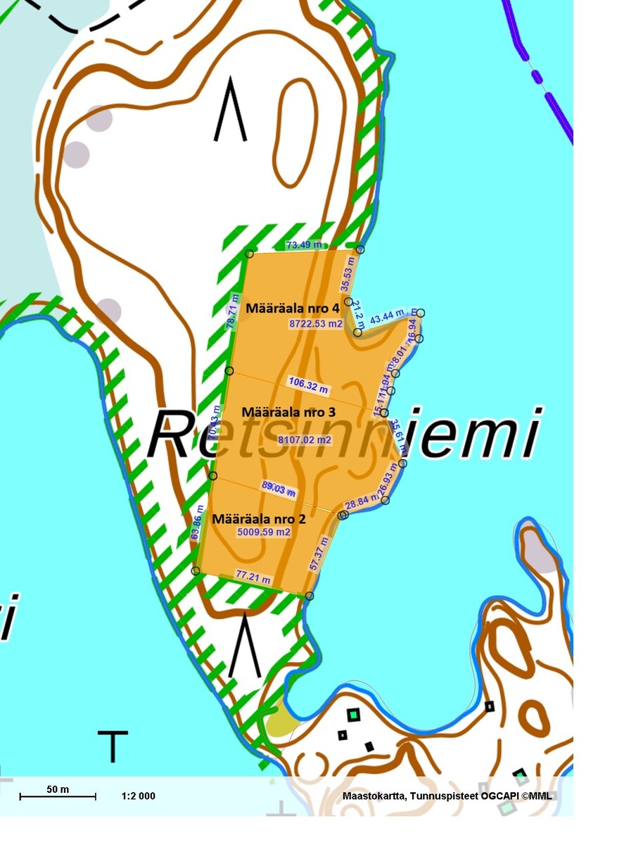 Kokonaisuus koostuu useista vierekkäisistä määräaloista (n. 5000 –8700 m²), joten sinulla on ainutlaatuinen mahdollisuus ostaa myös naapuritontit ja rakentaa esimerkiksi perheelle, suvulle tai sijoitustarkoitukseen useampi virkistyskäyttöön tarkoitettu rakennuspaikka.