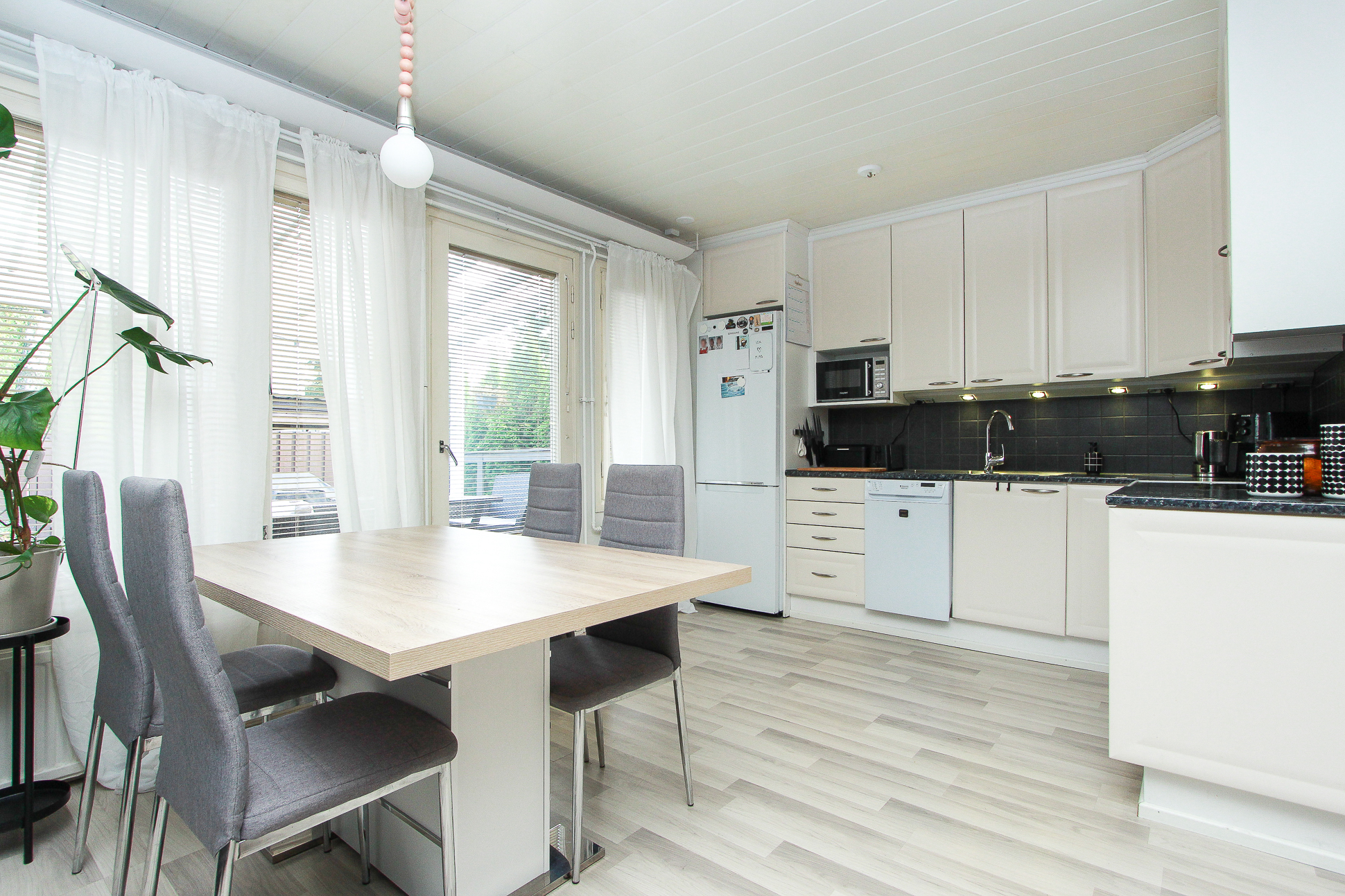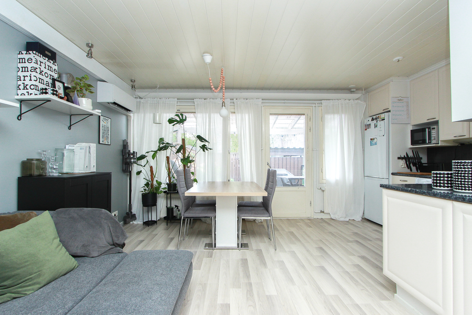 Tämä koti sopii niin yksin asuvalle kuin pariskunnalle, joka arvostaa rivitaloasumisen helppoutta sekä palveluiden ja hyvien kulkuyhteyksien läheisyyttä.