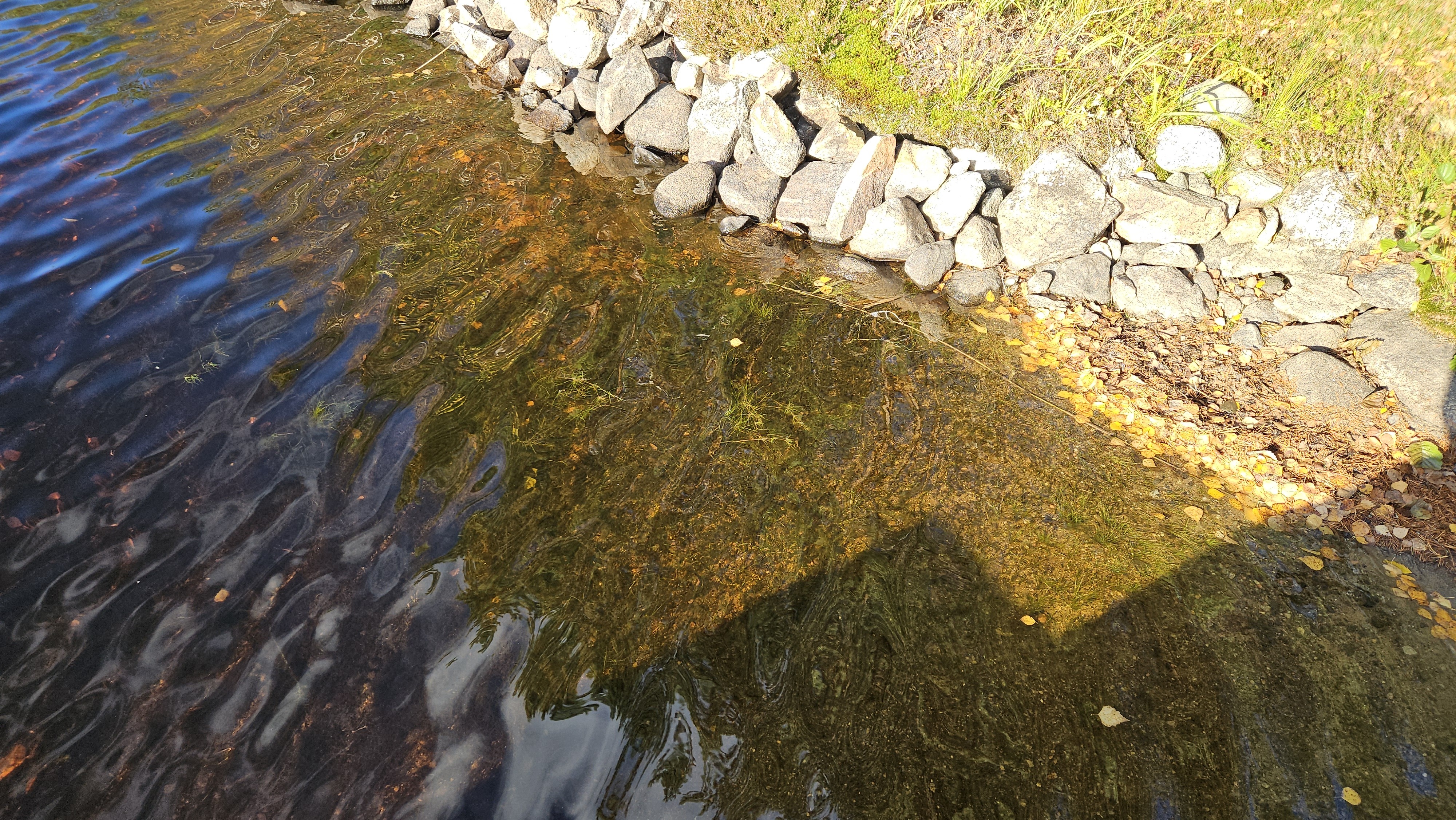 Loivasti syvenevä hiekka-/kivipohjainen ranta, Humusta kerääntynyt pohjalle.
