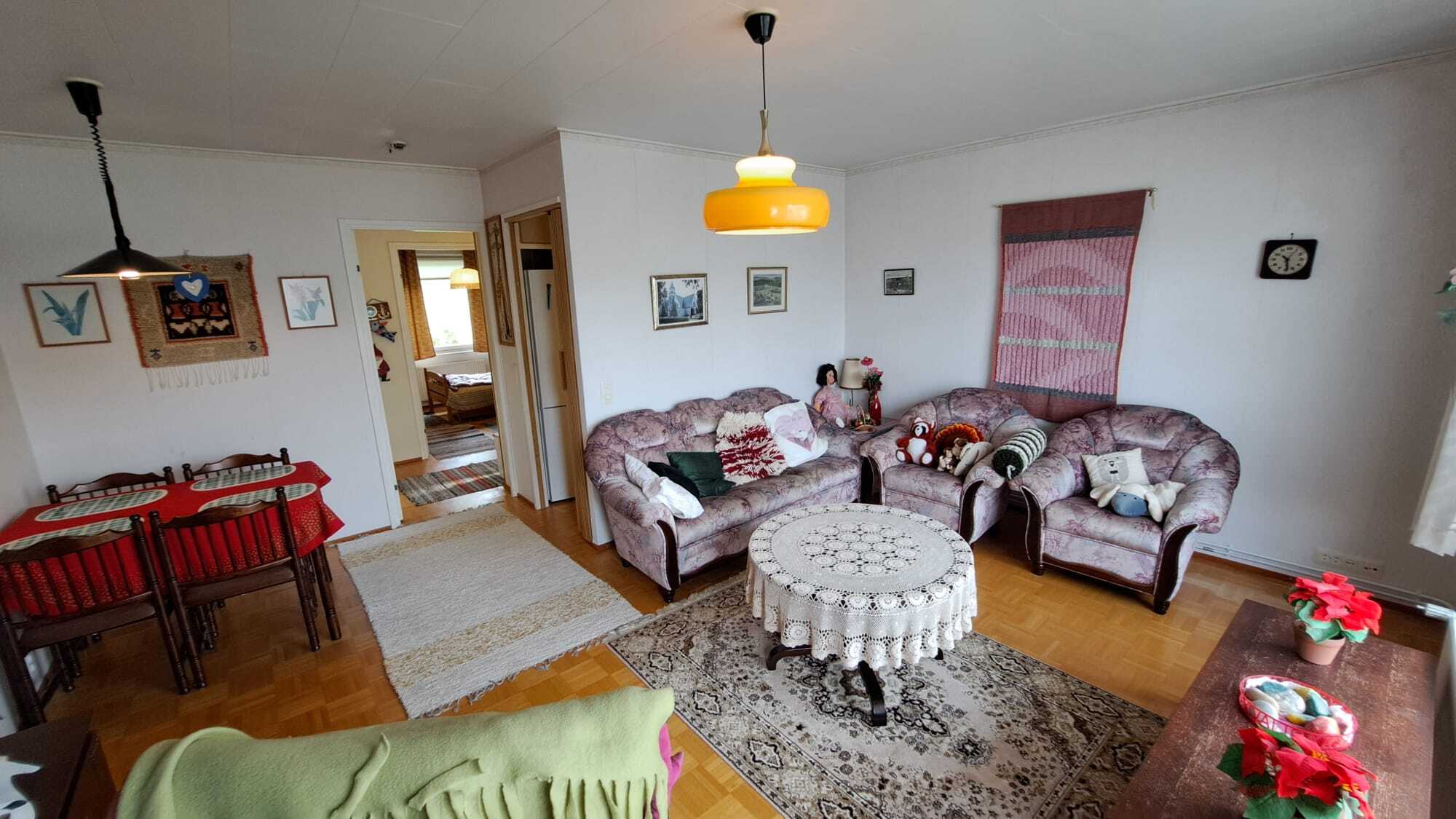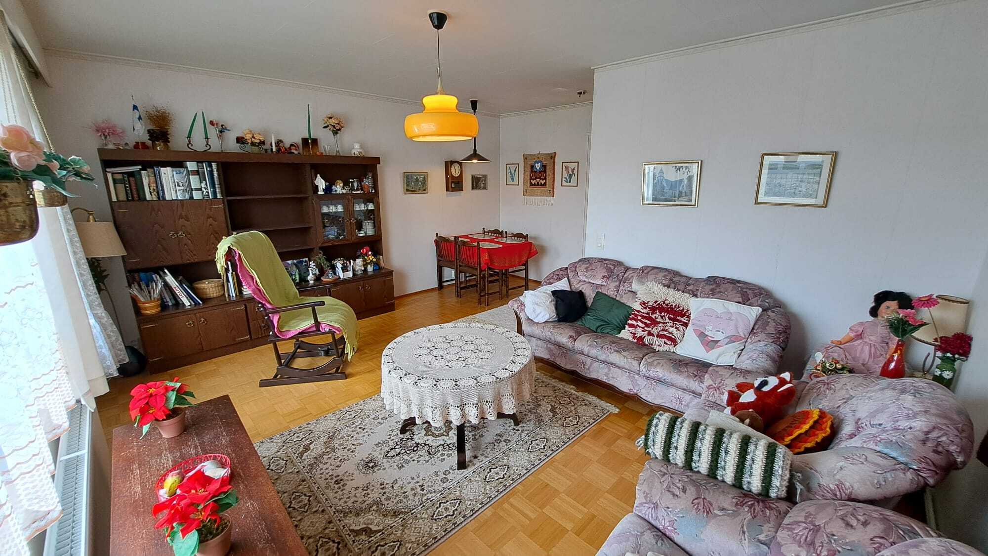 Olohuoneessa tila ruokailuryhmälle.