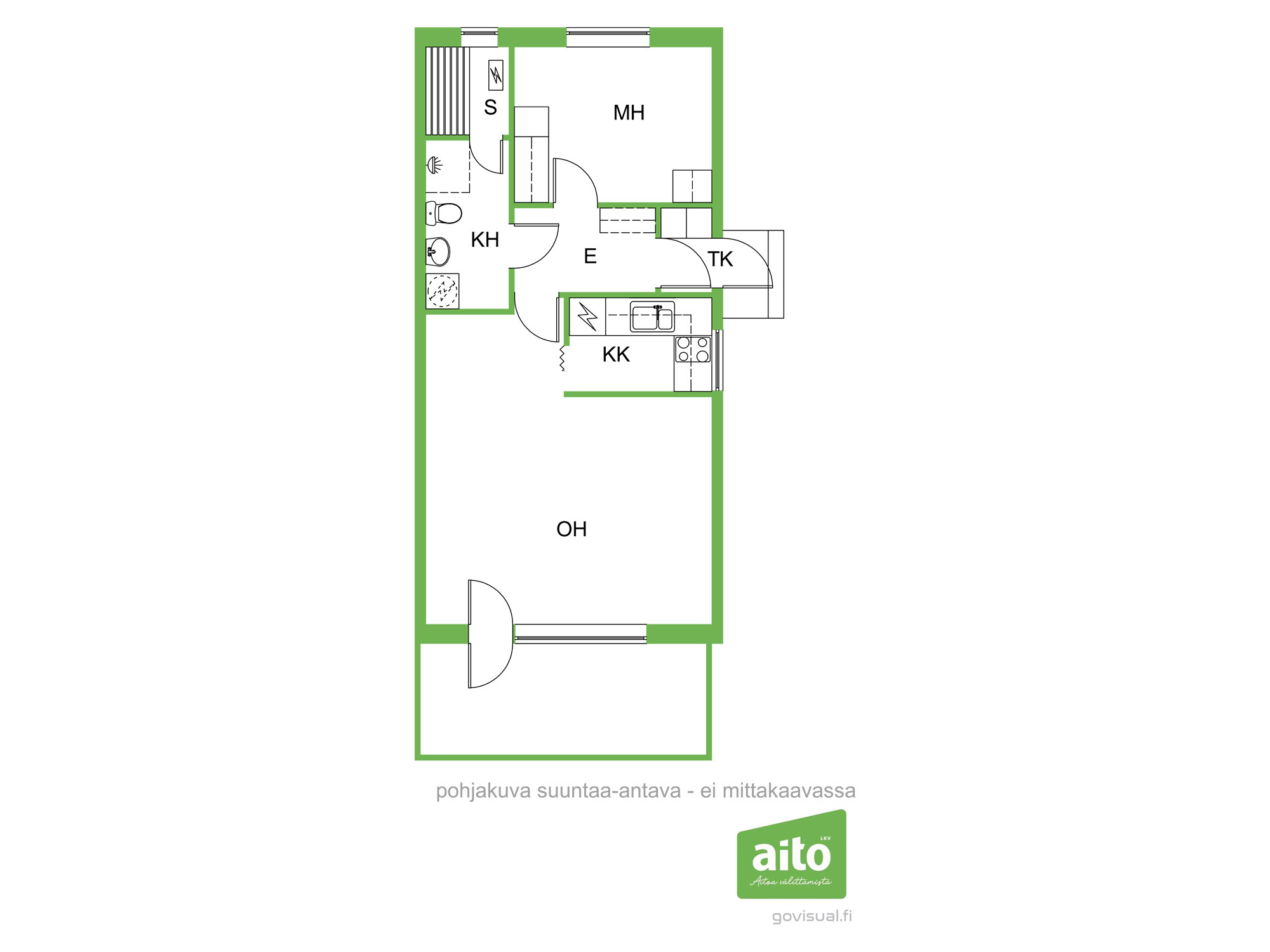 Oh, kk, mh, kph/wc, s, et, tk, terassi