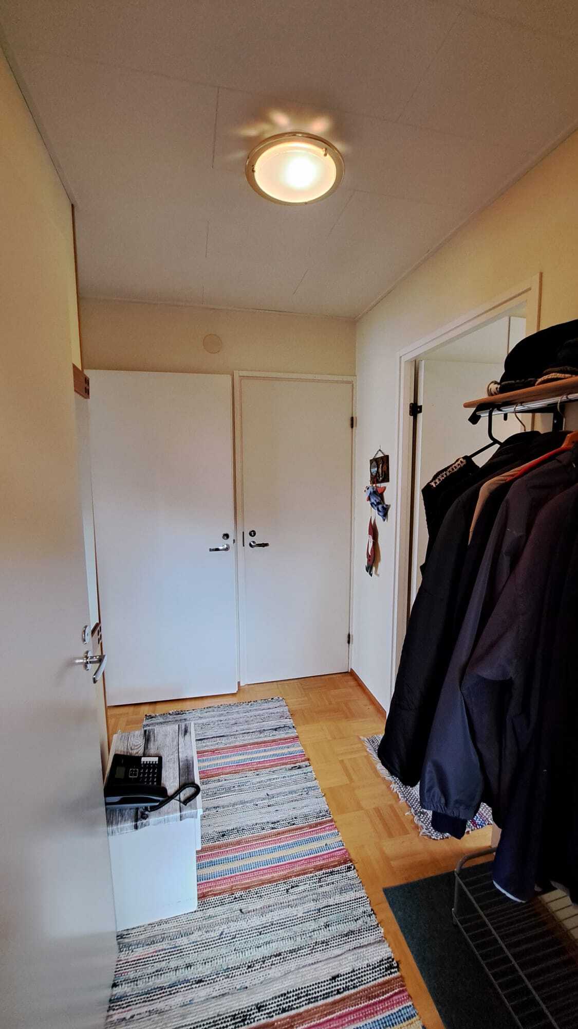 Sälekaihtimet/rullaverhot, verhotangot, naulakko, kiinteät valaisimet, pyykinpesukone