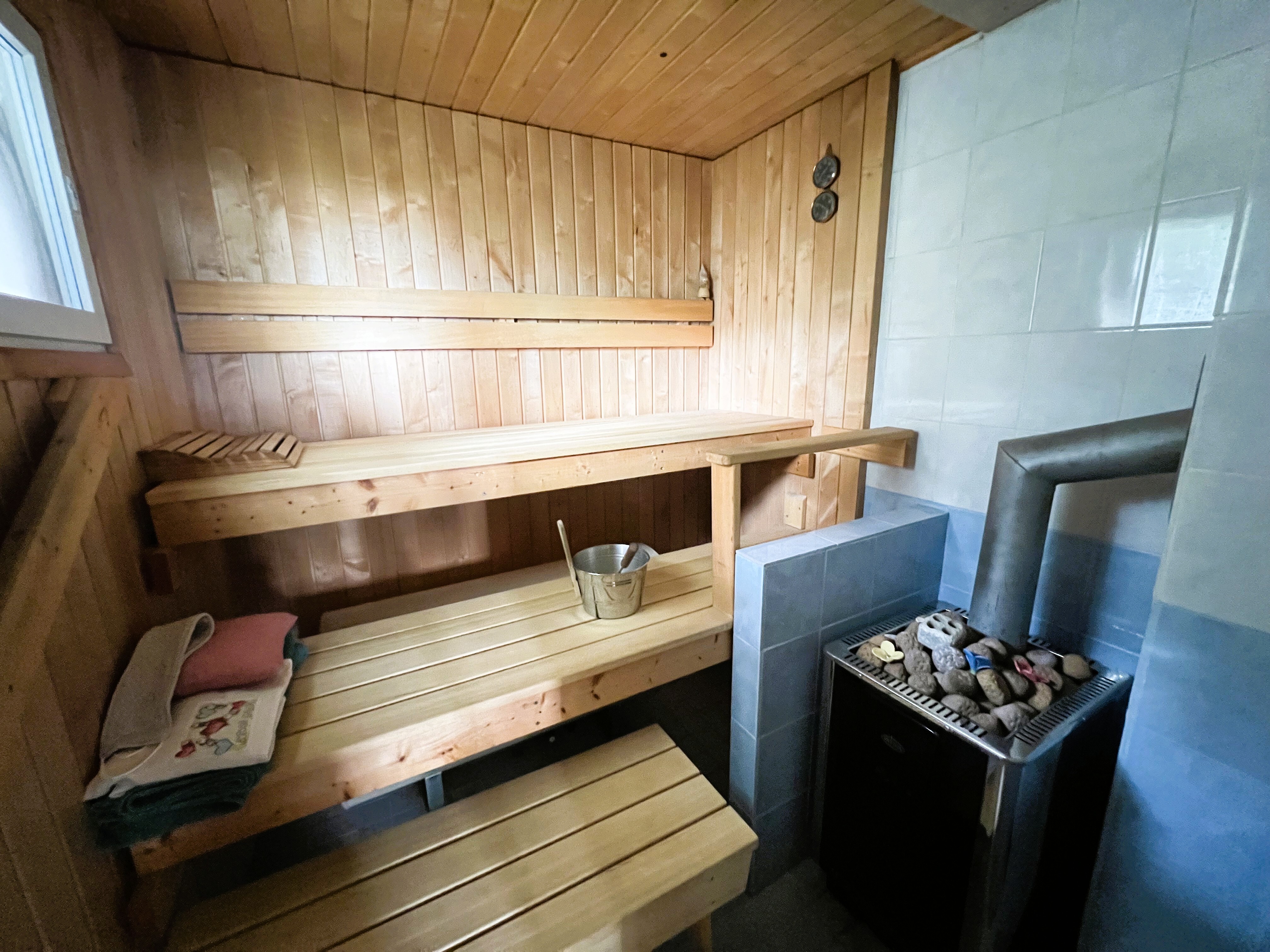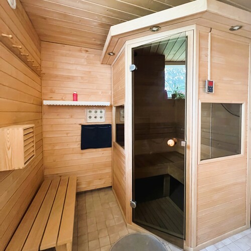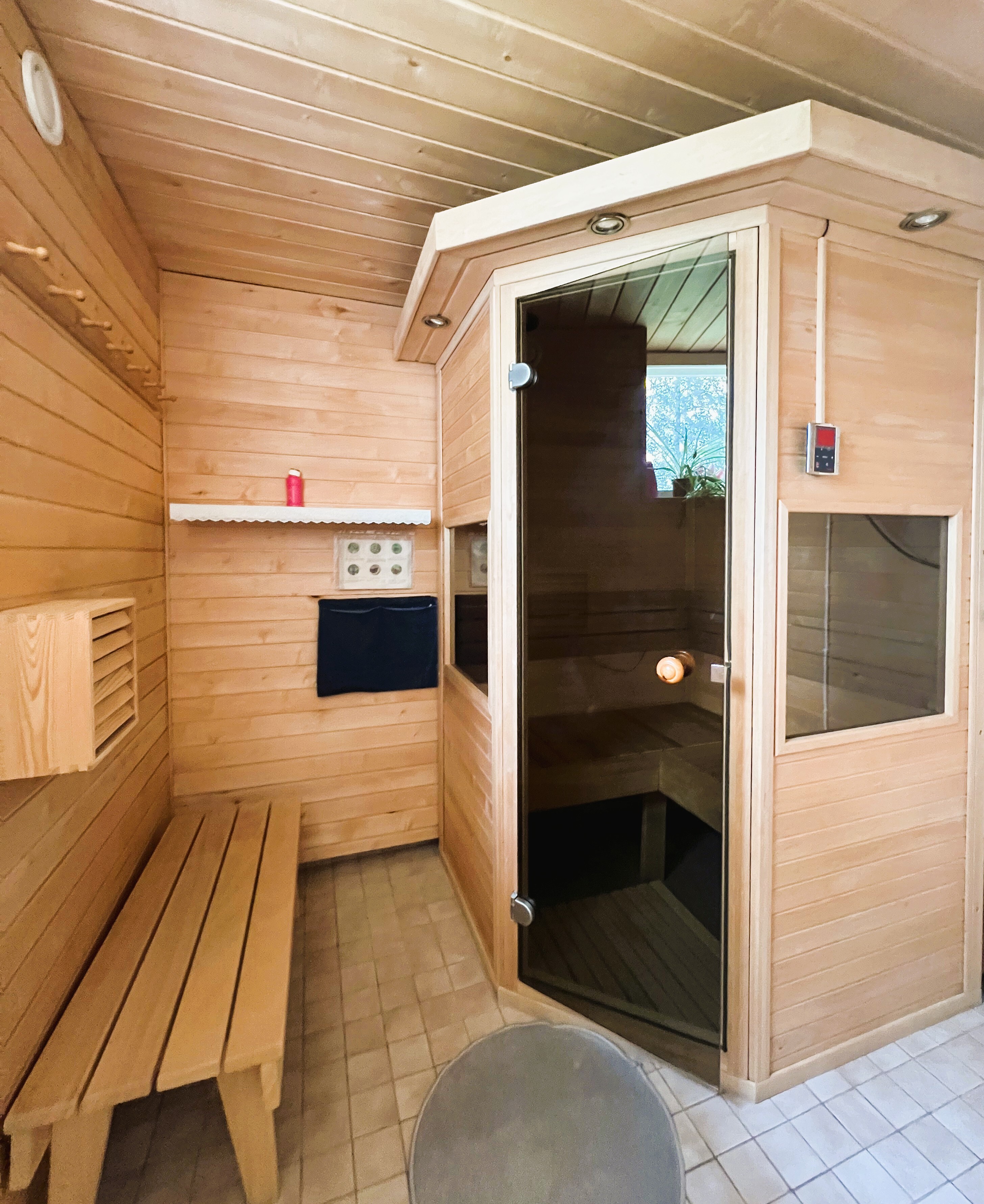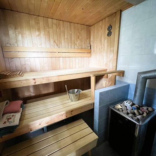 Infrapunasauna, lauteet. Lisäksi erillinen rantasauna.