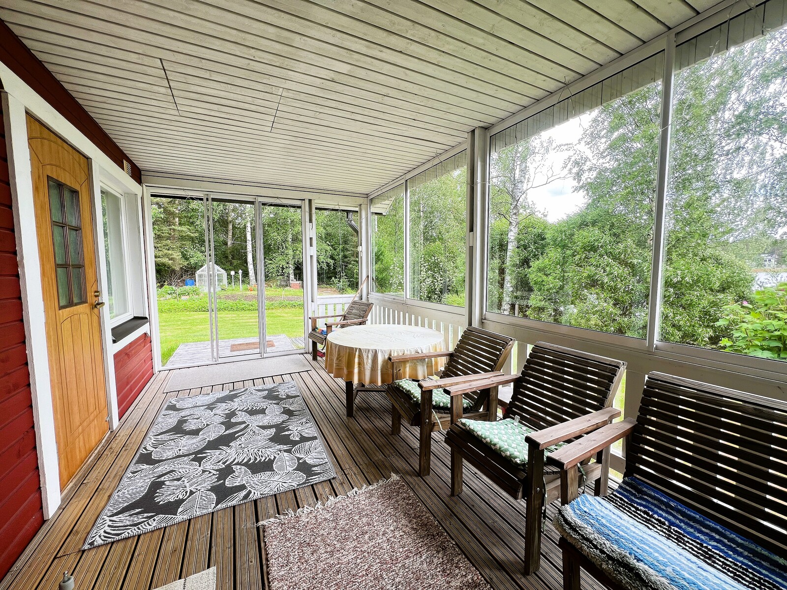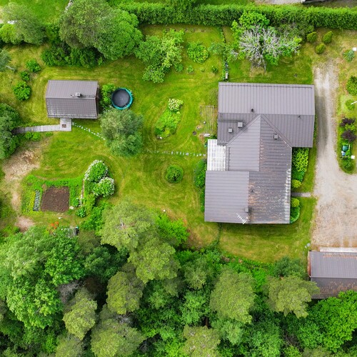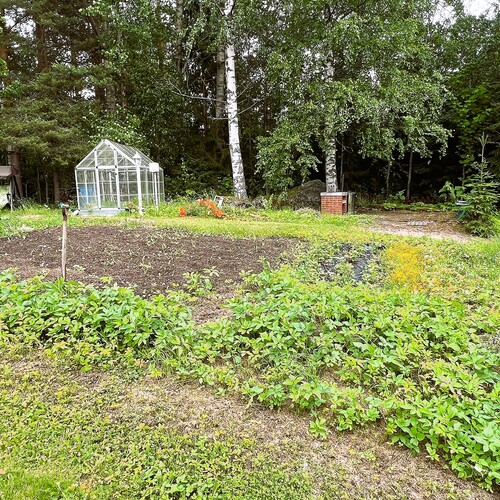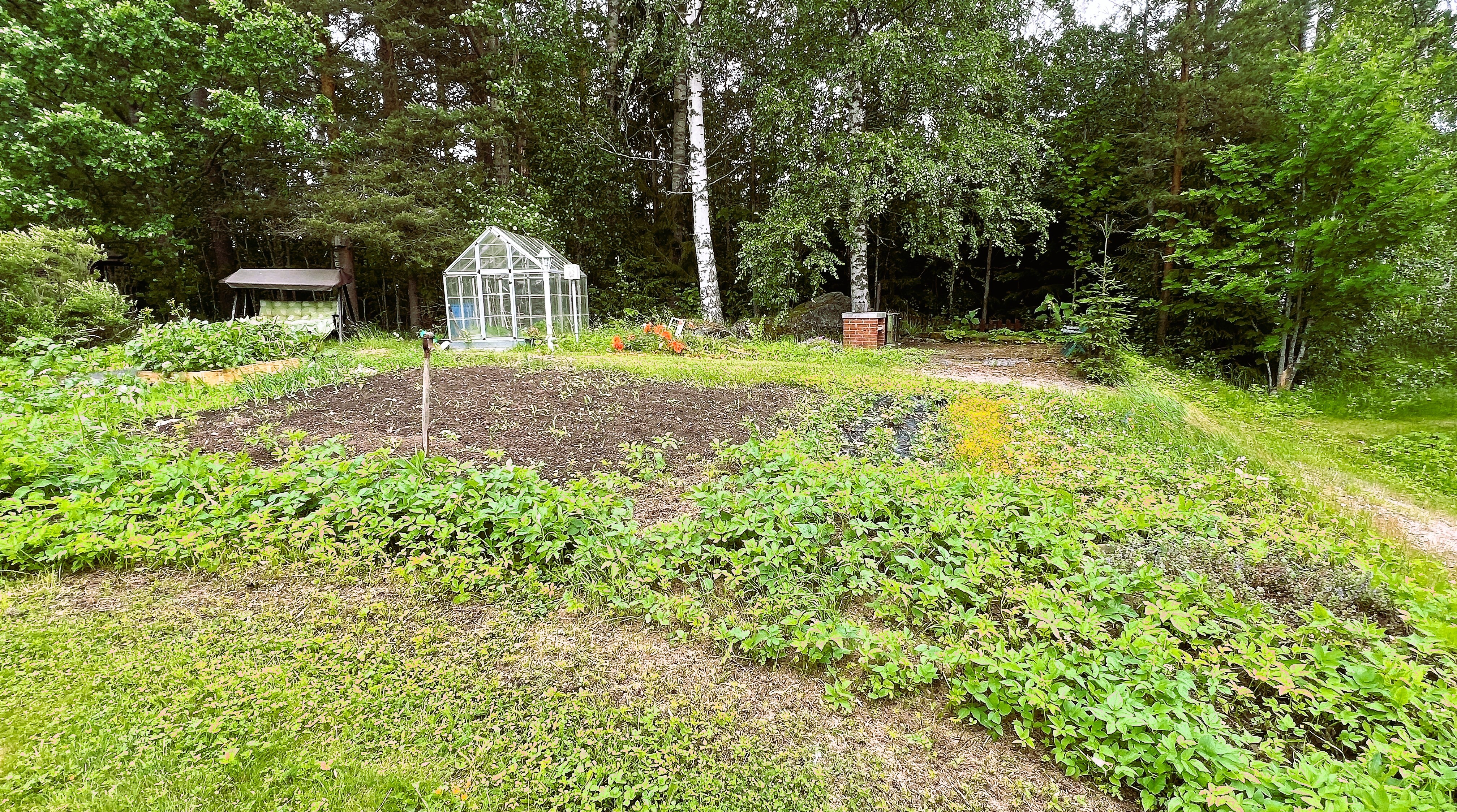 Tasainen ja suojaisa piha tarjoaa mahdollisuuksia monenlaiseen vapaa-ajan viettoon. Pihapiiristä löytyy myös leikkimökki, kasvihuone, puutarha ja kasvimaa – paikka, jossa voi viljellä omia vihanneksia ja nauttia luonnonläheisestä elämästä.