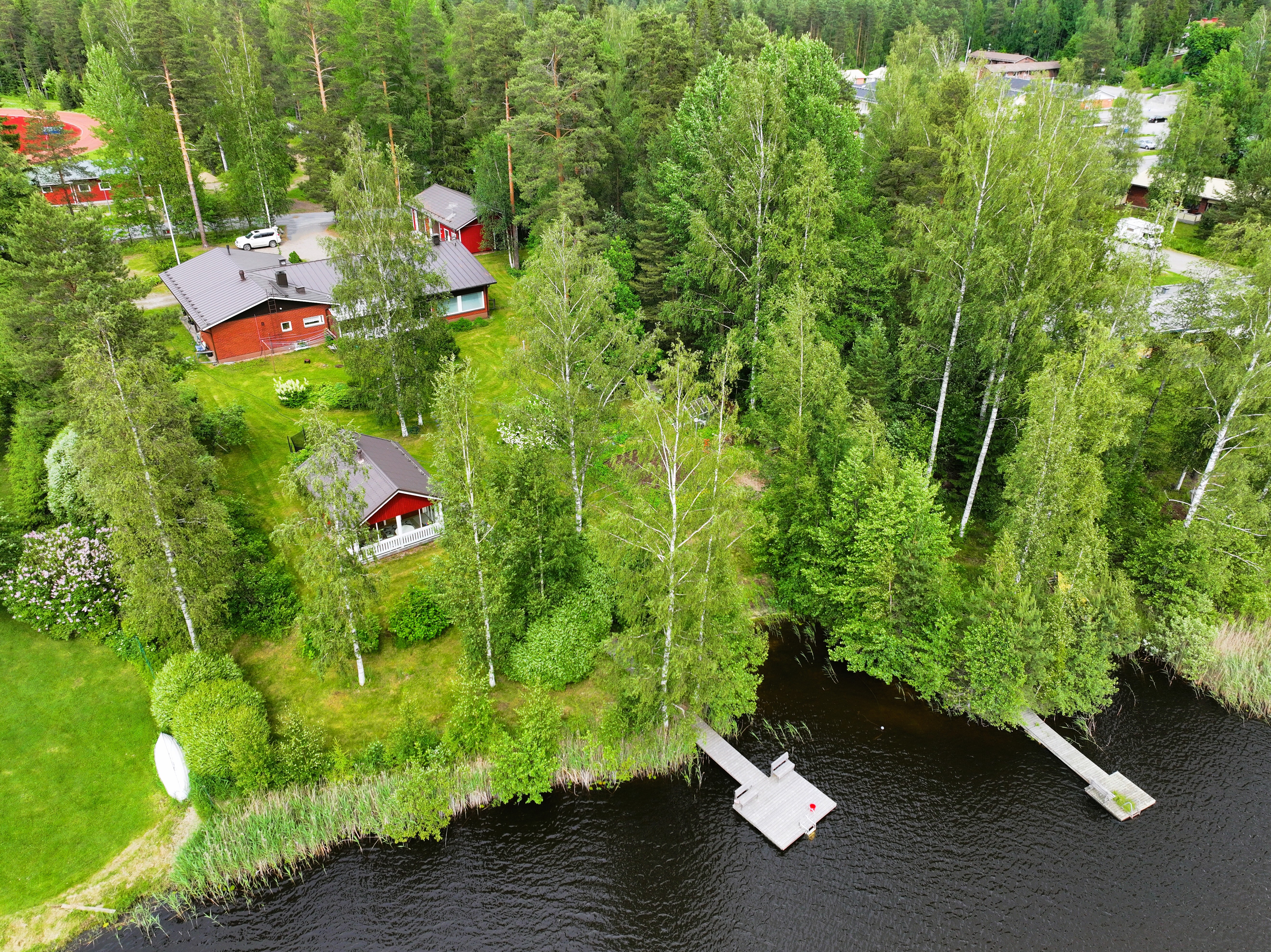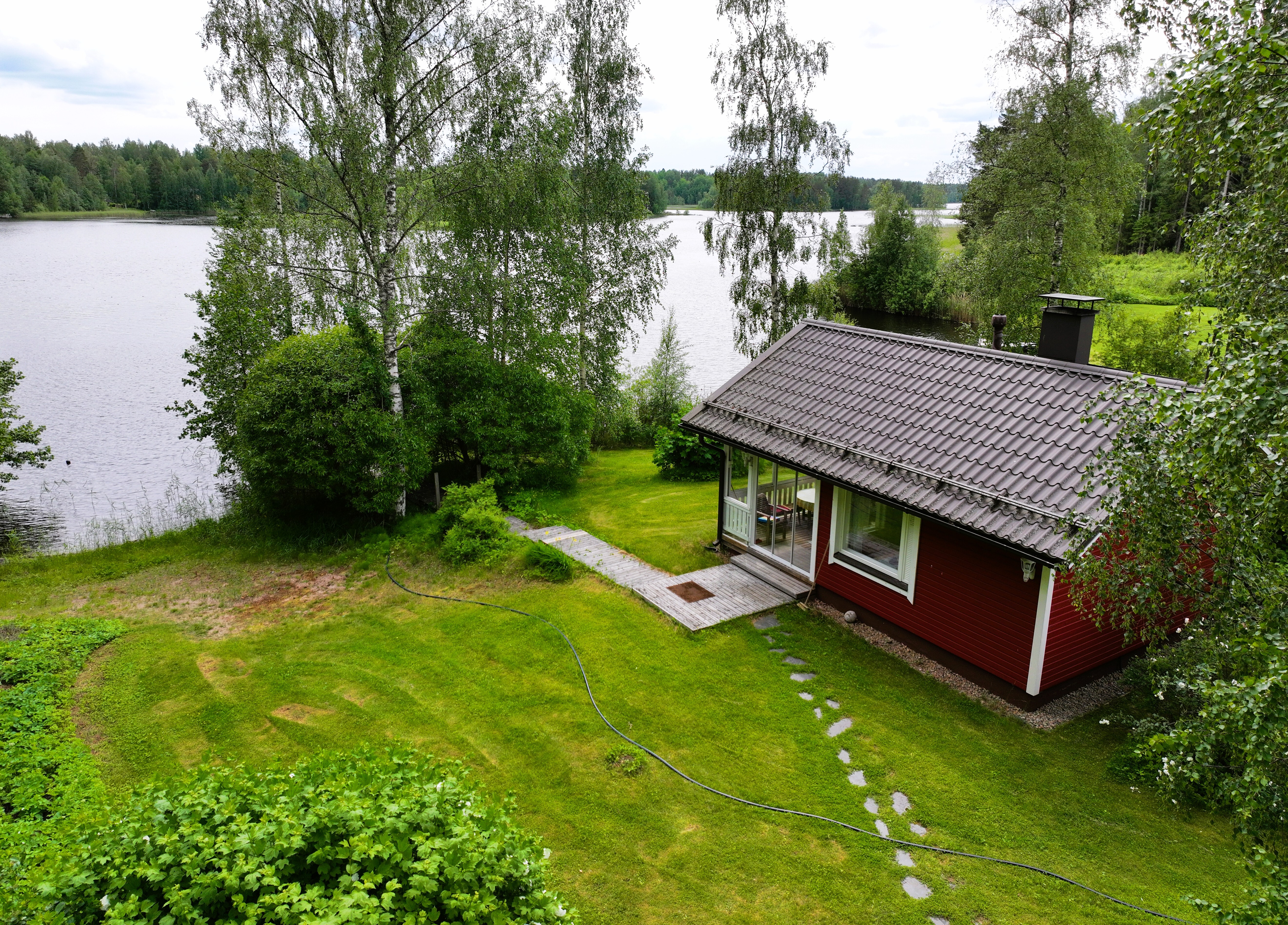 Sijainti tekee kohteesta kiinnostavan vaihtoehdon myös etätyötä tekevälle – tai kaupunkiasujalle, joka etsii rauhallista paikkaa luonnon ja järvimaiseman ääreltä.