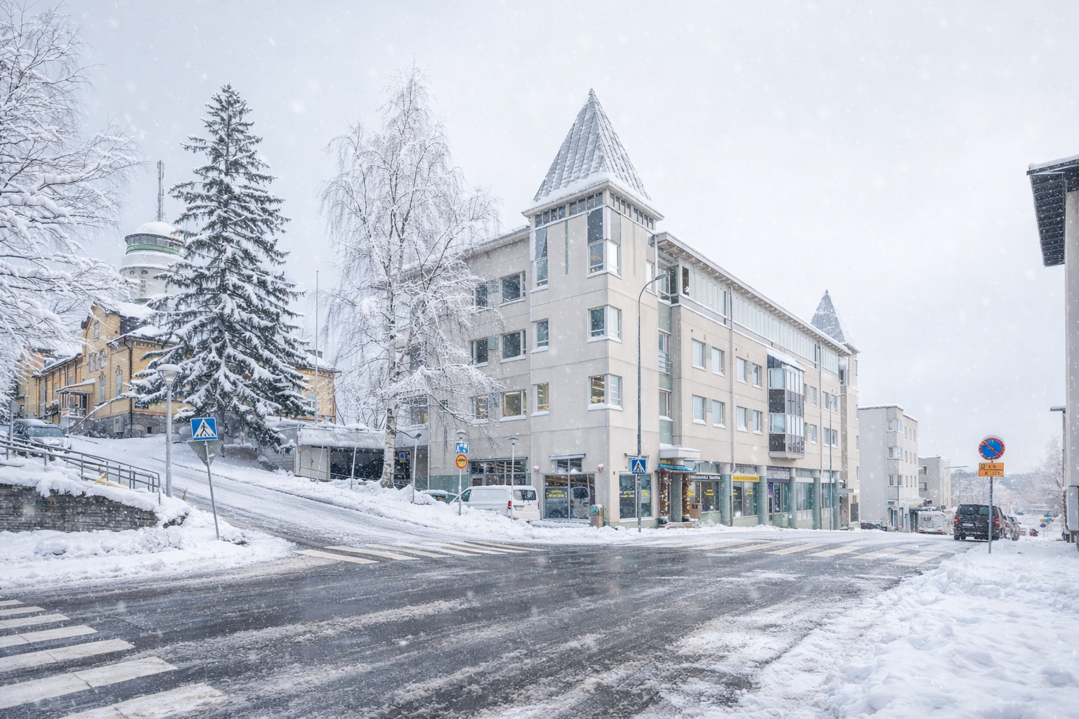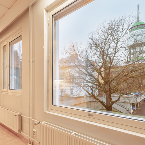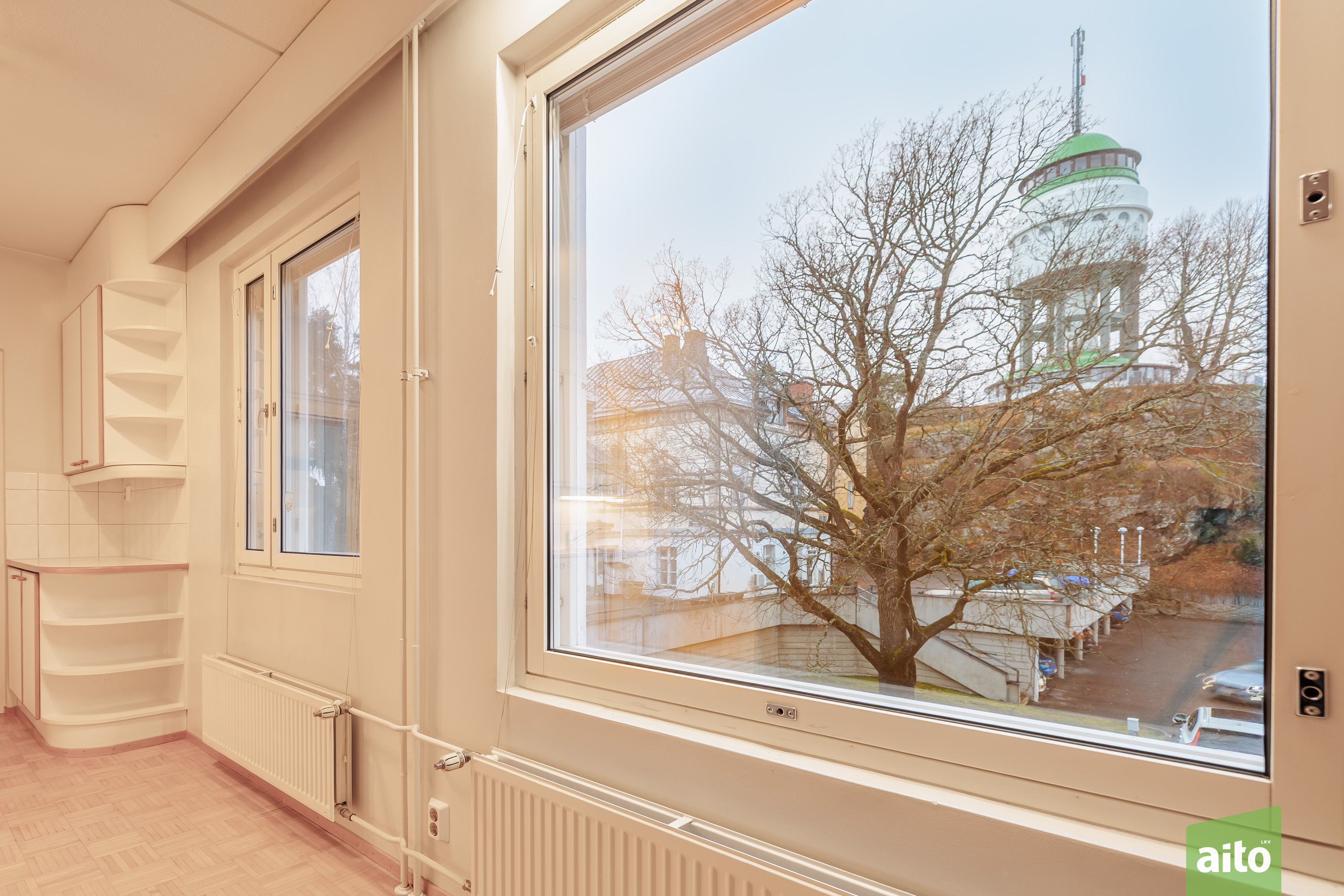 Asunnosta avautuvat ikkunat kohti Naisvuoren näkötornia, tarjoten upeat ja ainutlaatuiset näkymät erityisesti iltaisin valaistulle Naisvuorelle.