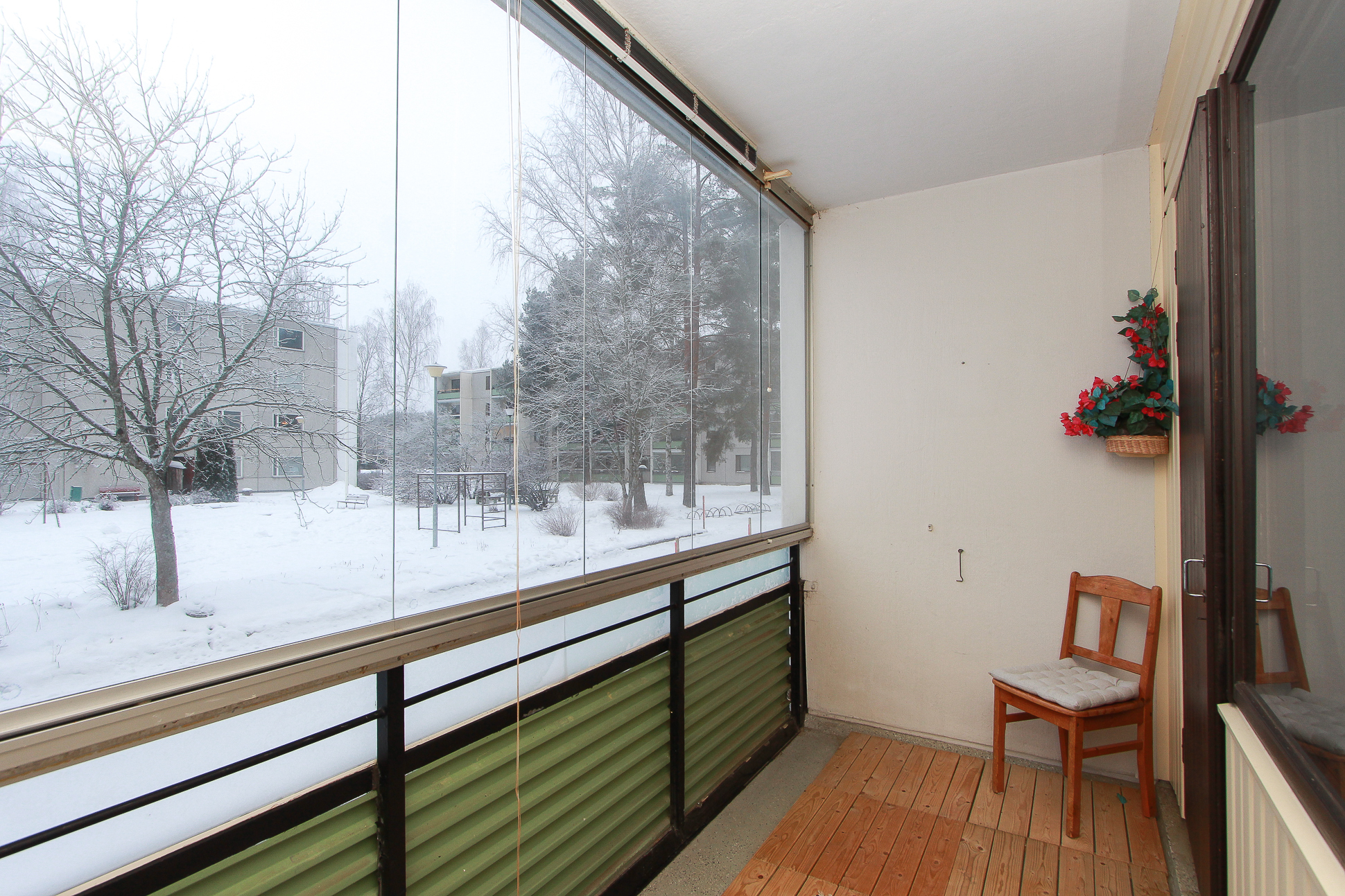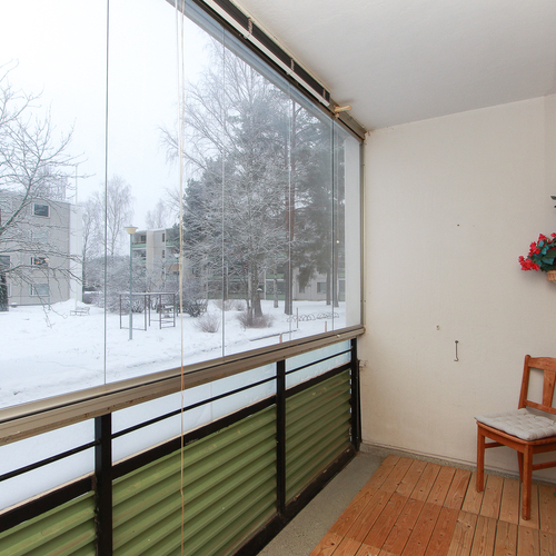 Tilavat huoneet, lasitettu parveke.