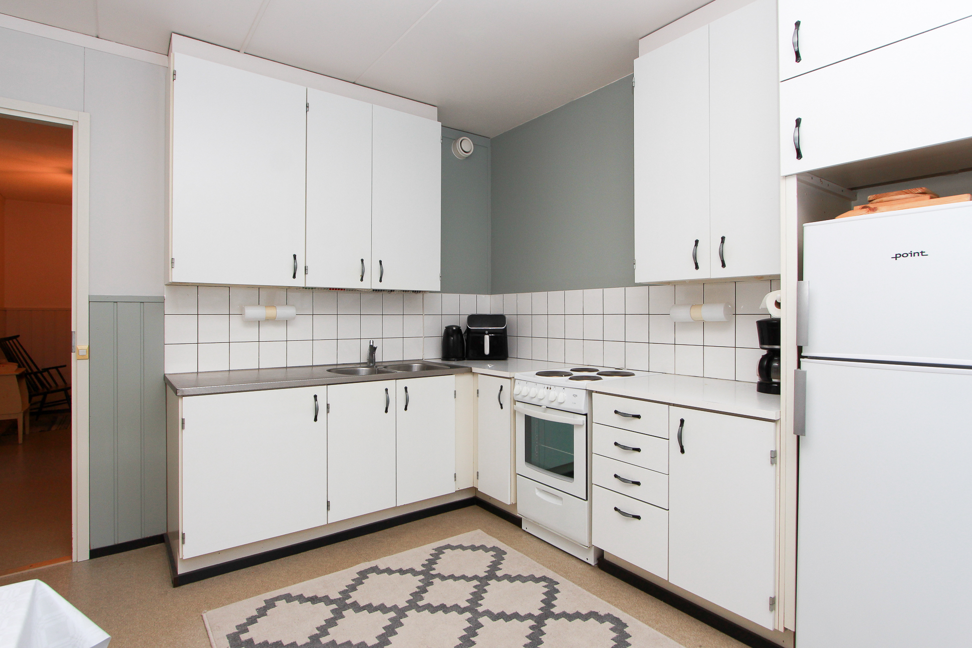 Keittiön seinät ja puolipaneelit maalattu 2025.