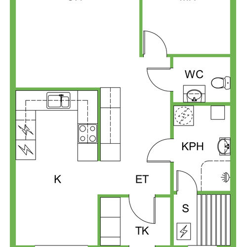 Pintamateriaalit: lattia laatta, seinät paneeli, katto paneeli.