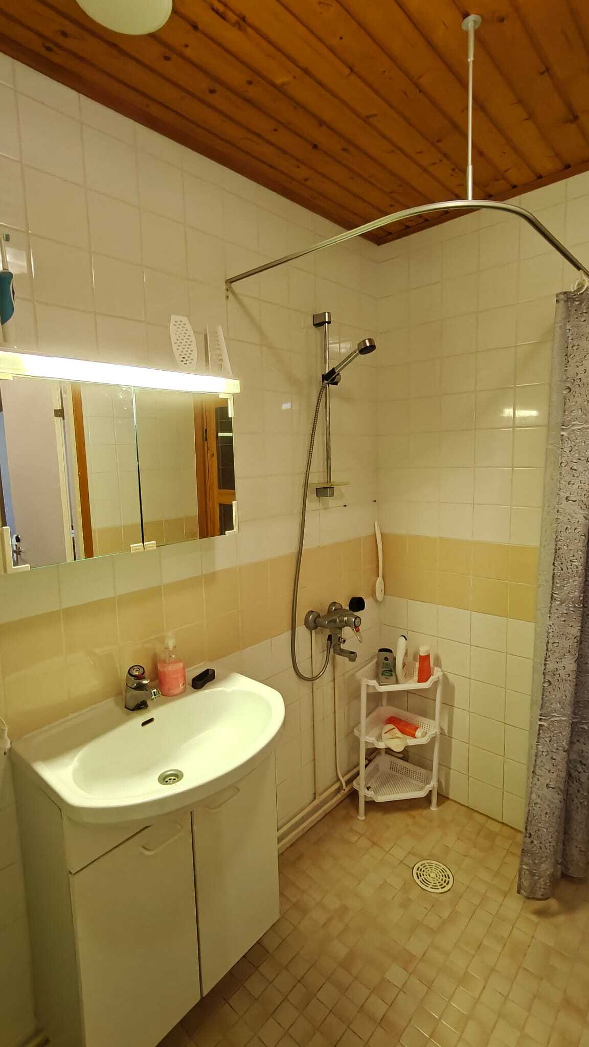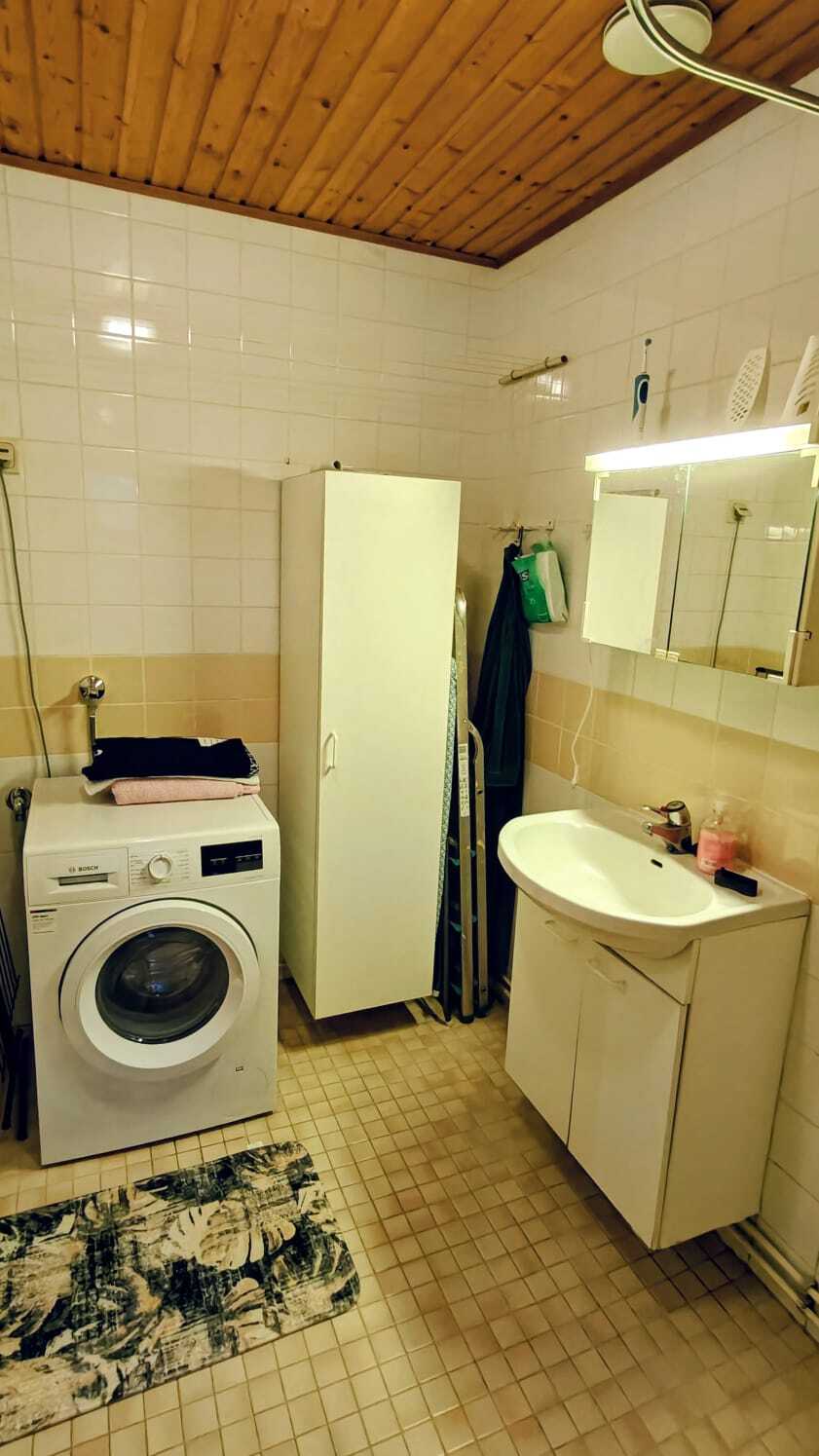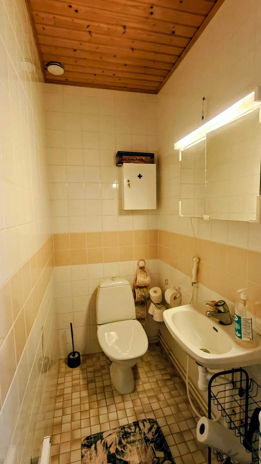 Pintamateriaalit: lattia laatta, seinät kaakeli, katto paneeli.