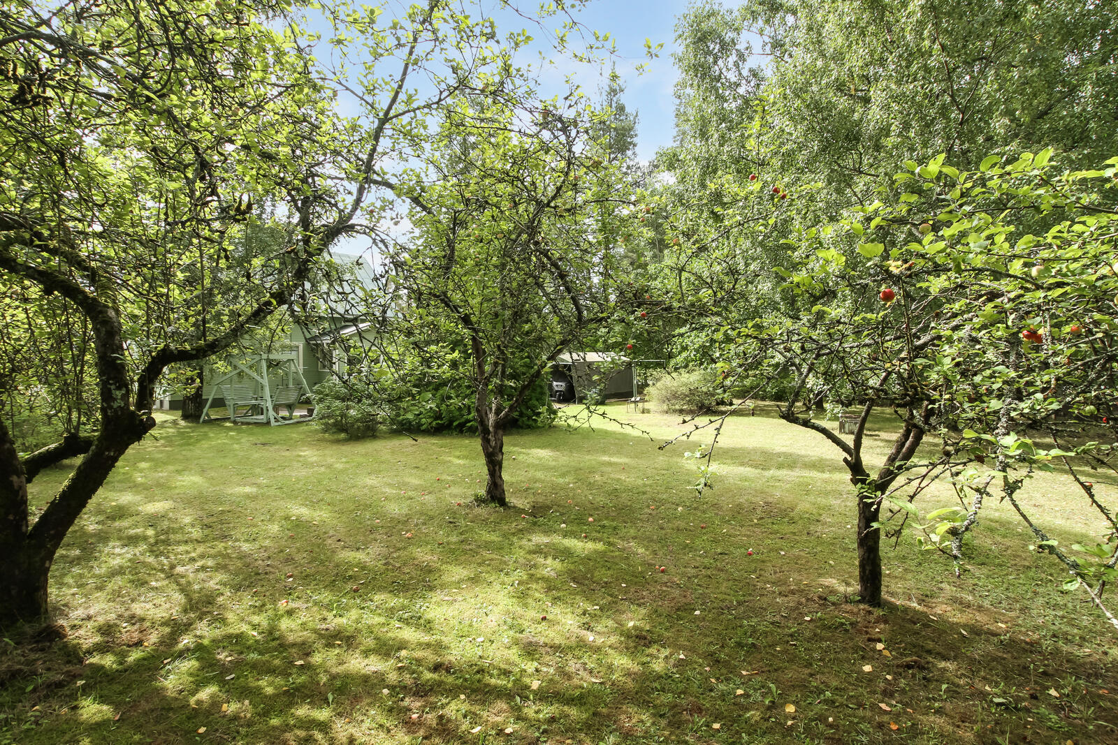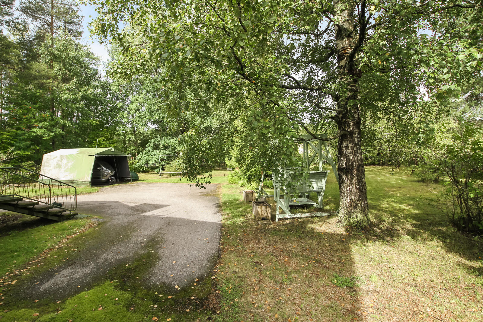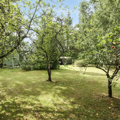 Talo sijaitsee omalla tontilla, ja suojaisa piha-alue tarjoaa rauhallisen ympäristön niin lasten leikeille kuin aikuisten rentoutumiselle.