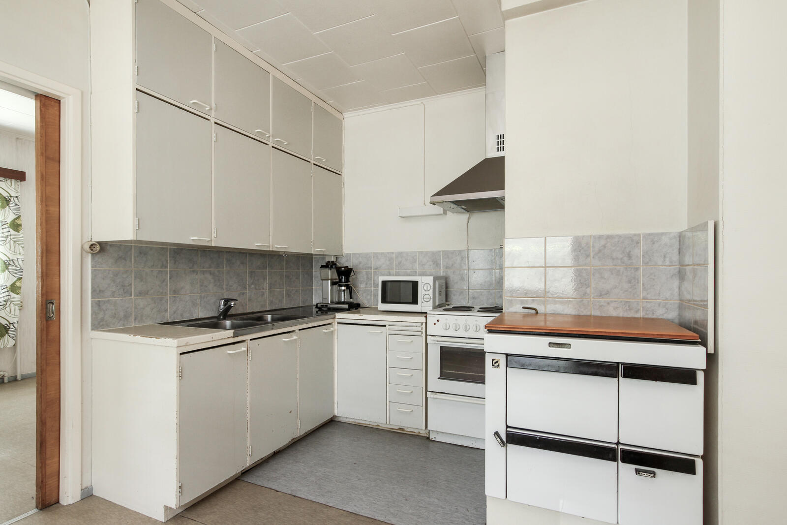 Seinien pintamateriaali: kaakeli, paneeli