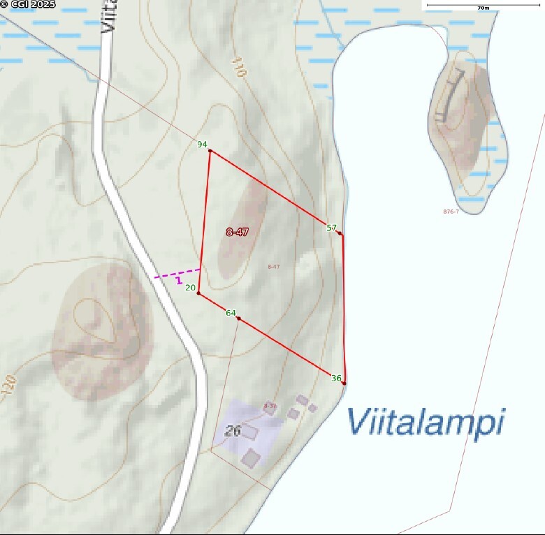 Kiinteistö sijaitsee Viitalammentie 25:ssä, missä luonto on säilyttänyt alkuperäisen viehätyksensä. Oma ranta Viitalampeen tarjoaa suoran yhteyden kirkasvetiseen järveen, jossa voi nauttia uinnista, kalastuksesta ja veneilystä. Rauhallisuus ja yksityisyys ovat taattuja tässä luonnonkauniissa ympäristössössä.