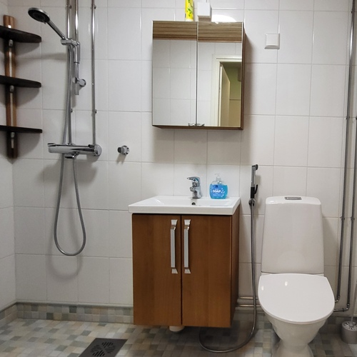 Kylpyhuone ja keittokomero uusittu. Lattiapinnoitteet uusittu laminaatiksi. Seinät ja katto maalattu.