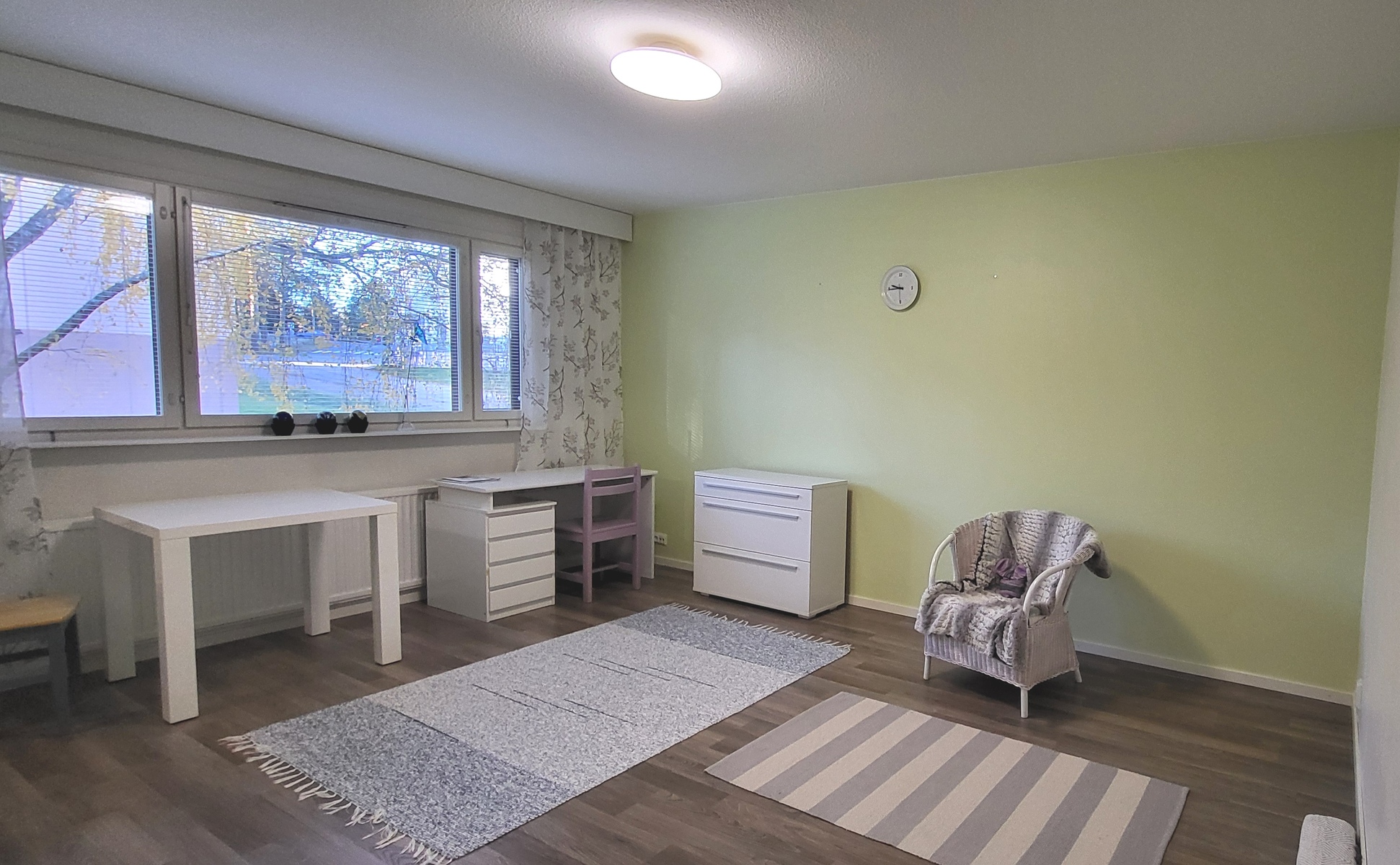Kauppa sijaitsee vain 100 metrin päässä, uimahalli, urheilusali, lenkkeily- ja hiihtomaastot 400 metrin etäisyydellä. Ala- ja yläasteet 300 metriä – erinomainen sijainti myös opiskelijalle tai sijoittajalle.