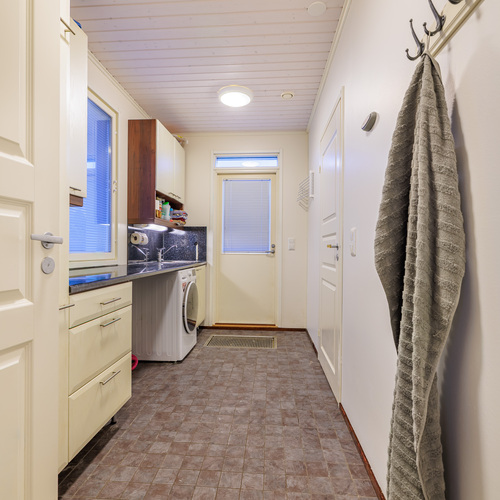 Maalämpö, vesikiertoinen lattialämmitys, ilmalämpöpumppu ja varaava takka takaavat energiatehokkaan ja miellyttävän asumisen. Kodinhoitohuoneessa on käytännöllinen kurapiste, pesukoneliitäntä ja lattialämmitys. Kylpyhuoneessa on kaksi suihkua ja saunassa sähkökiuas.