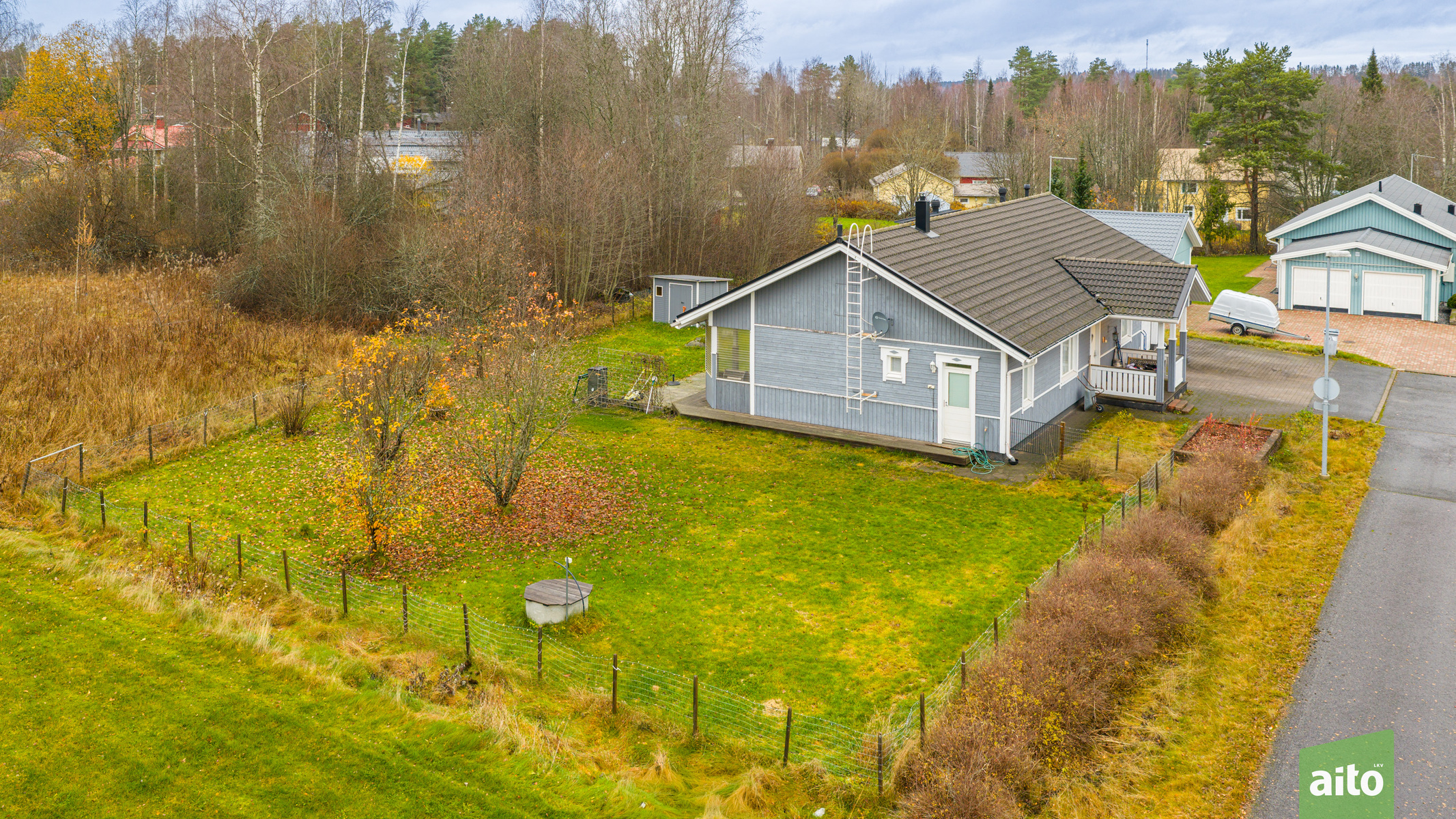 Tasainen 1 090 m²:n oma tontti tarjoaa tilaa oleskeluun ja harrastuksiin. Länsiterassi on osittain katettu ja talon yhteydessä on lisäksi lämmin varasto ja pieni piharakennus.