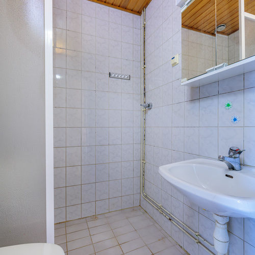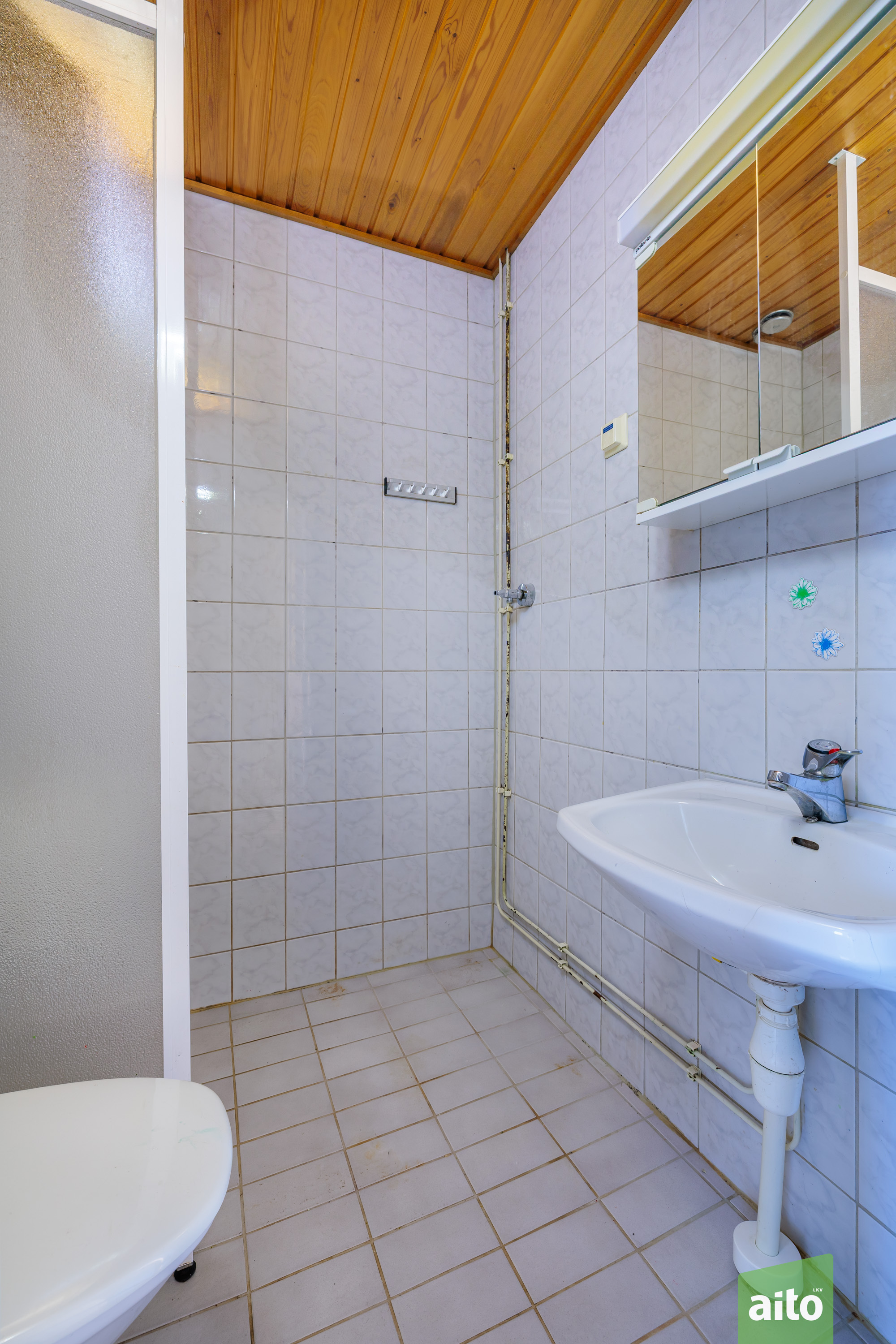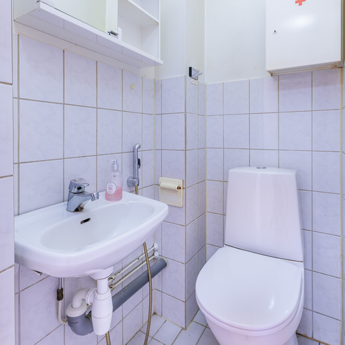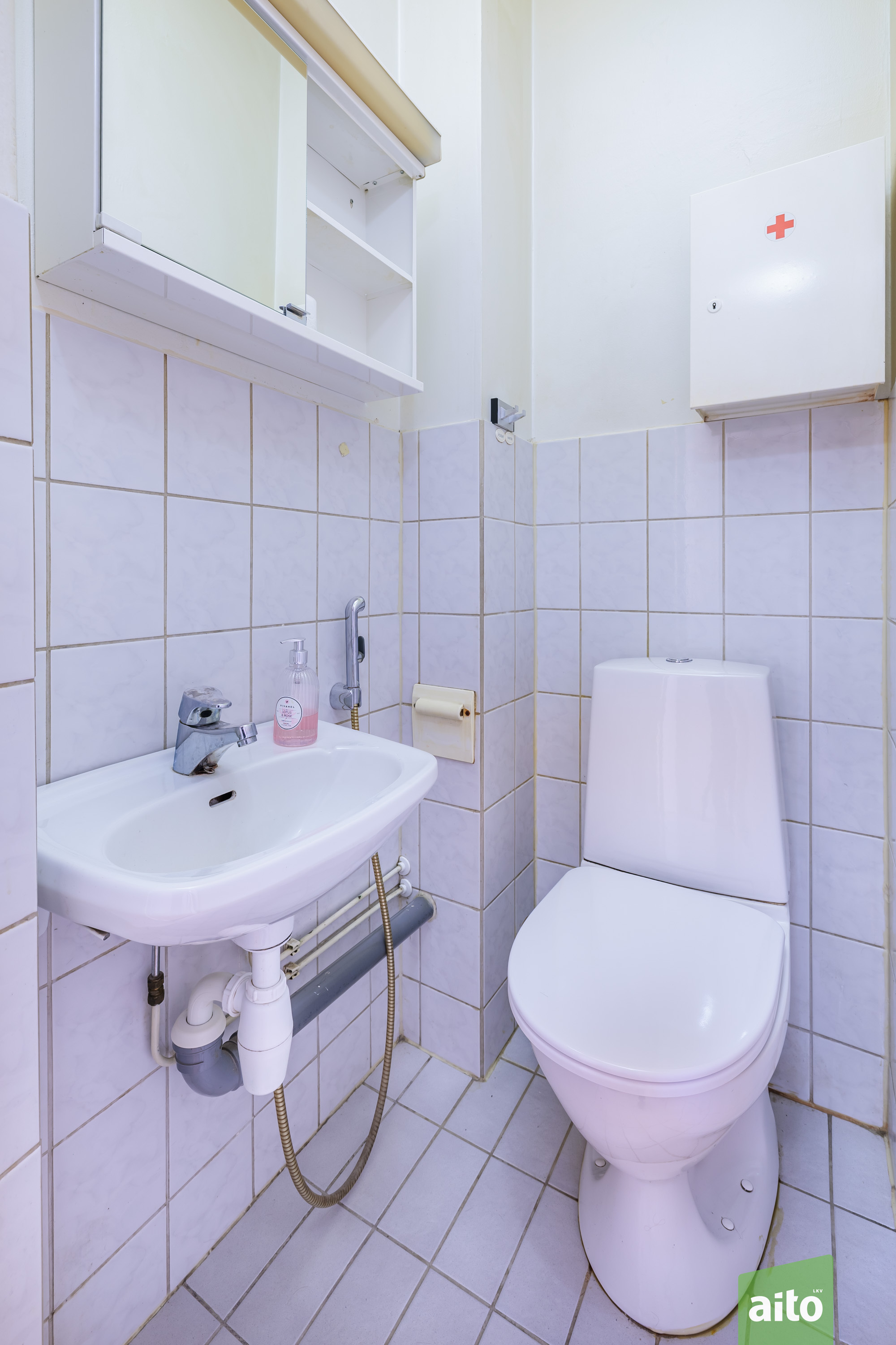 Varusteet: lattiaan asennettu WC, bidee, peilikaappi