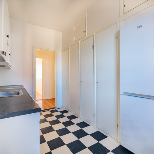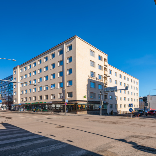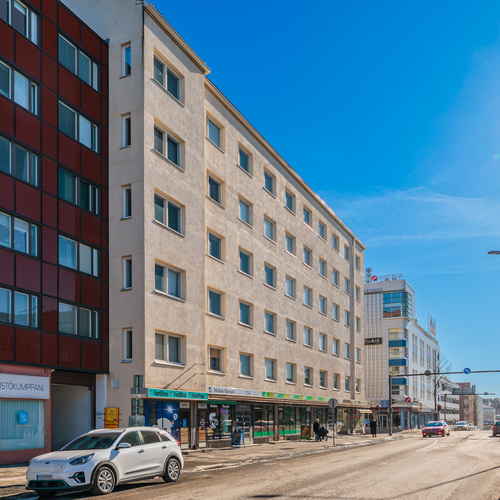 Mikkelin ydinkeskustassa, hyvin hoidetussa 1950-luvun kivitalossa sijaitseva 106 m²:n kerrostaloasunto (5h, k, p). Asunnossa on olohuone, sali, kaksi makuuhuonetta, entinen palvelijan huone, keittiö sekä kaksi wc:tä. Tilava ja muunneltava pohjaratkaisu soveltuu monenlaisiin tarpeisiin. Etelään avautuva parveke ja suuret ikkunat tuovat runsaasti valoa.