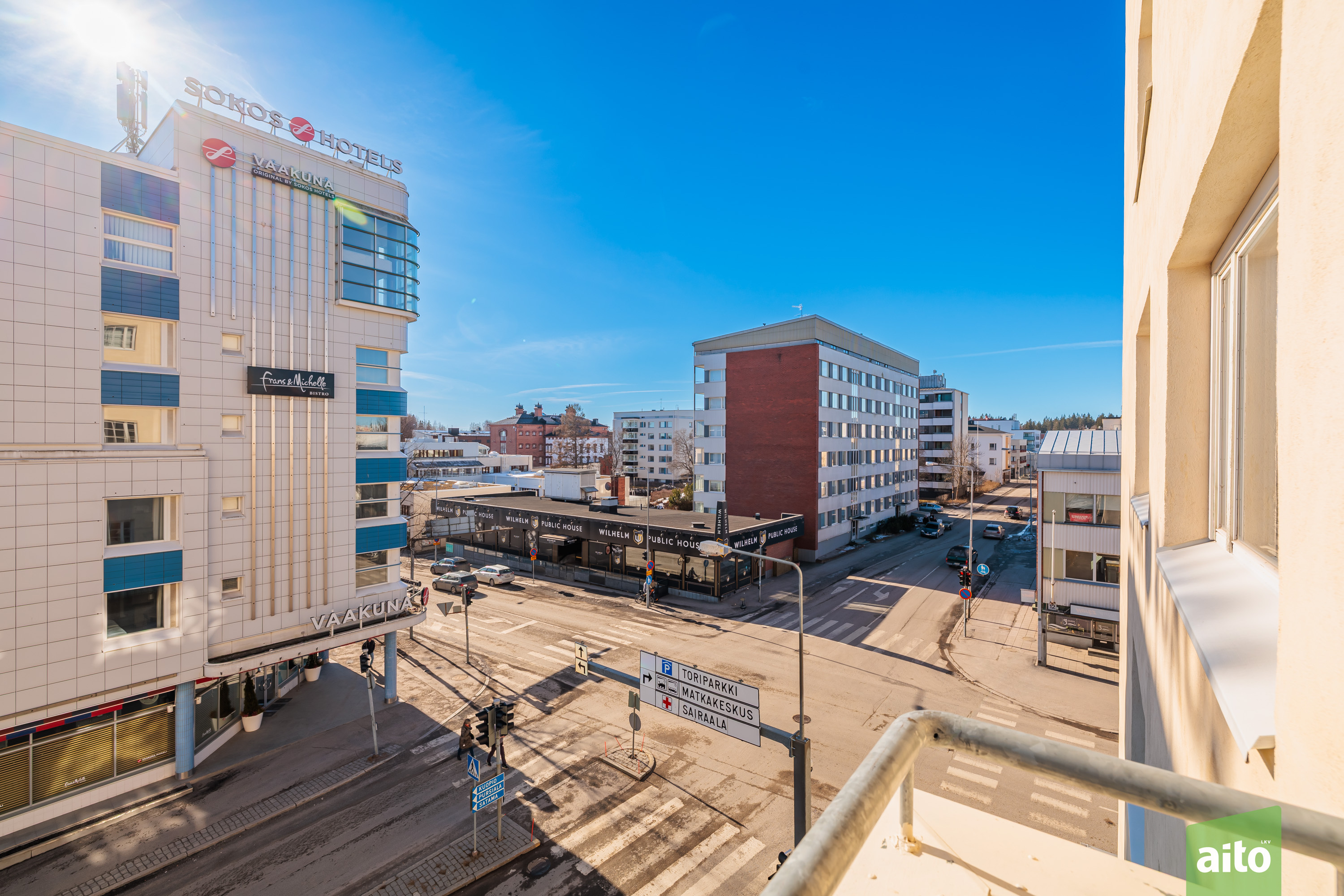 Sijainti on erinomainen – palvelut, koulut, torialue ja juna-asema ovat kävelyetäisyydellä. Hyvä yhteys myös satamaan ja yliopistokeskukseen.