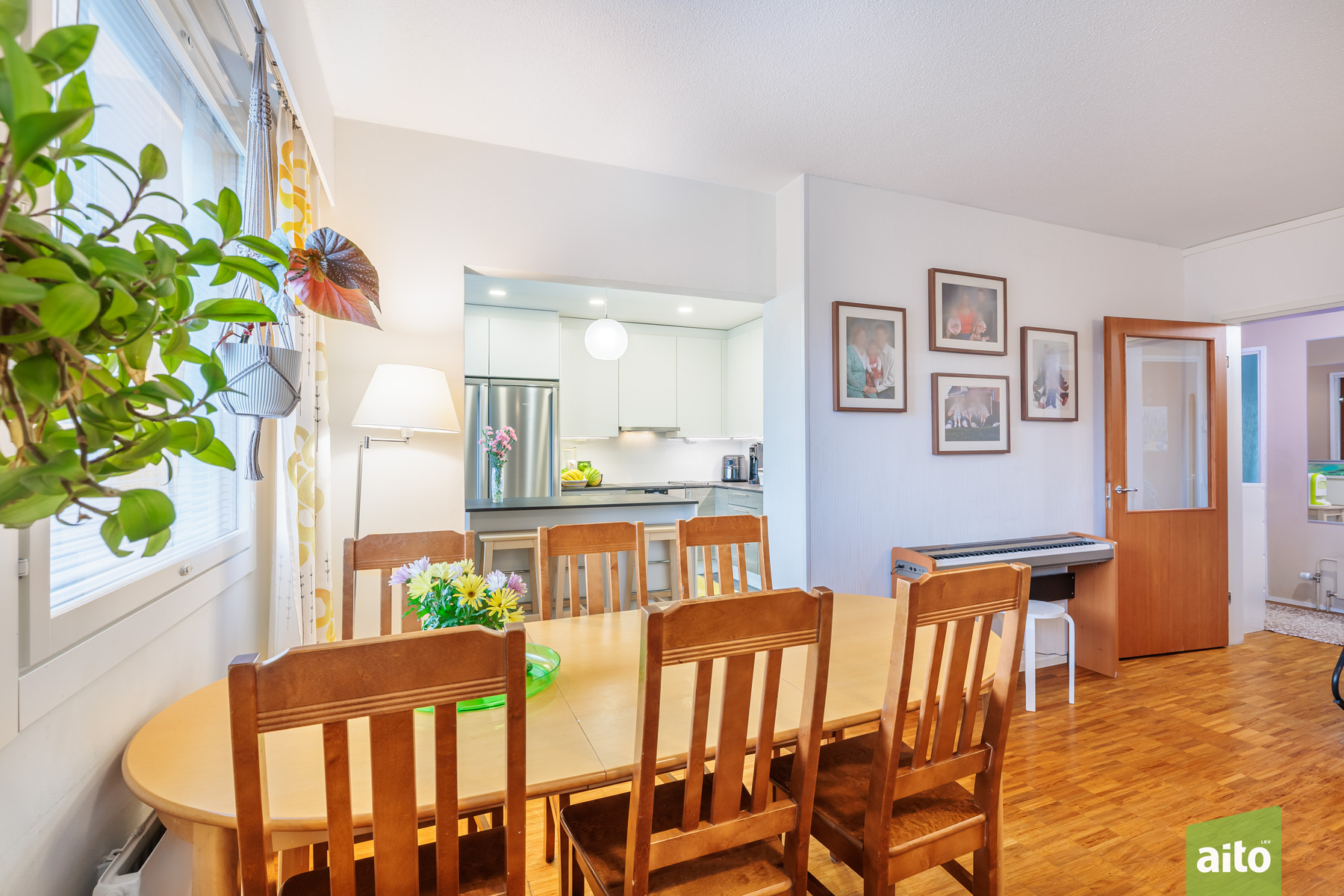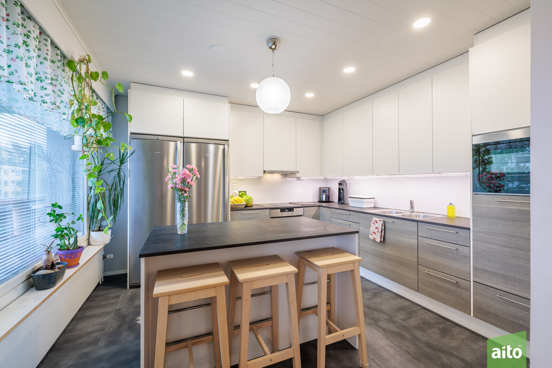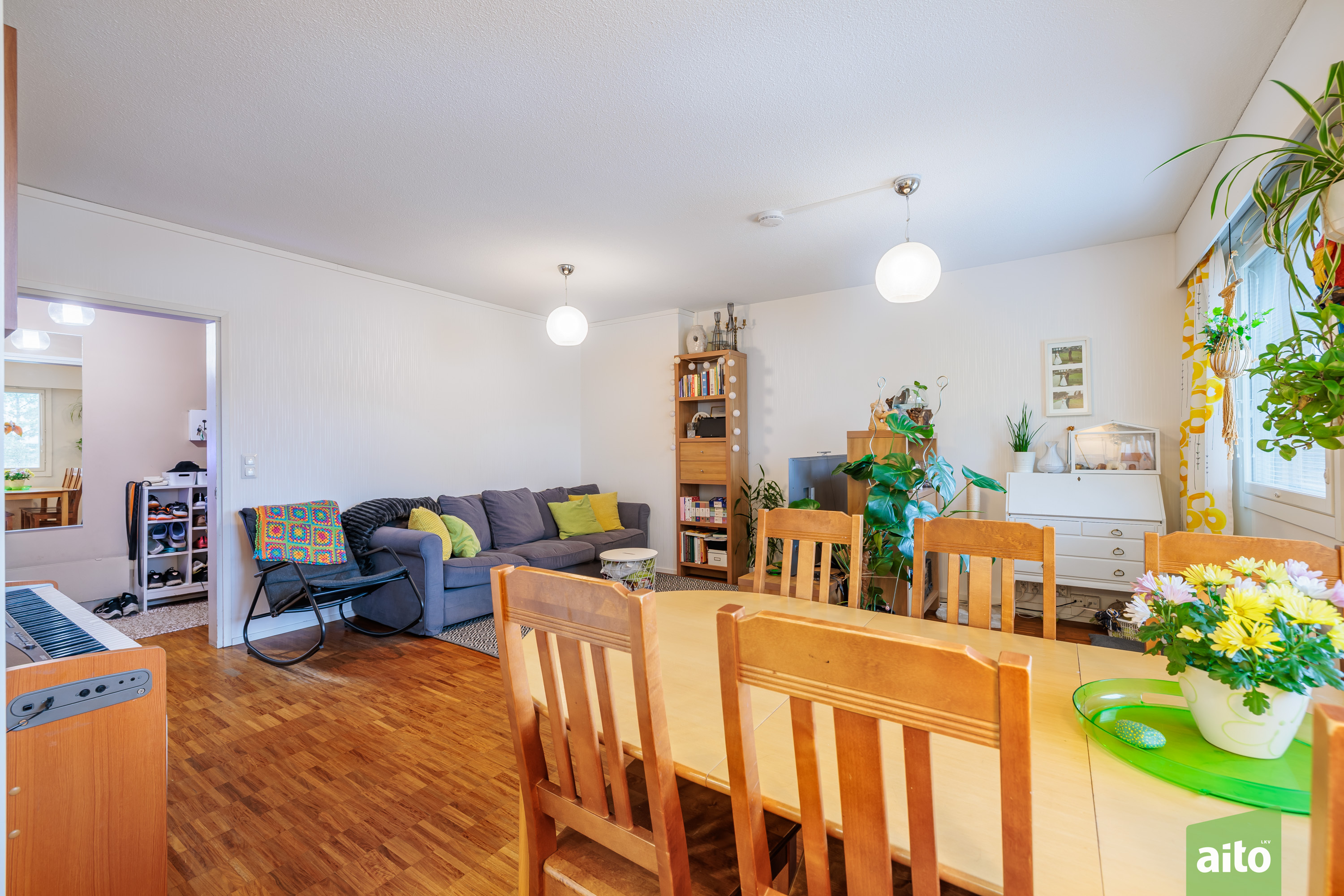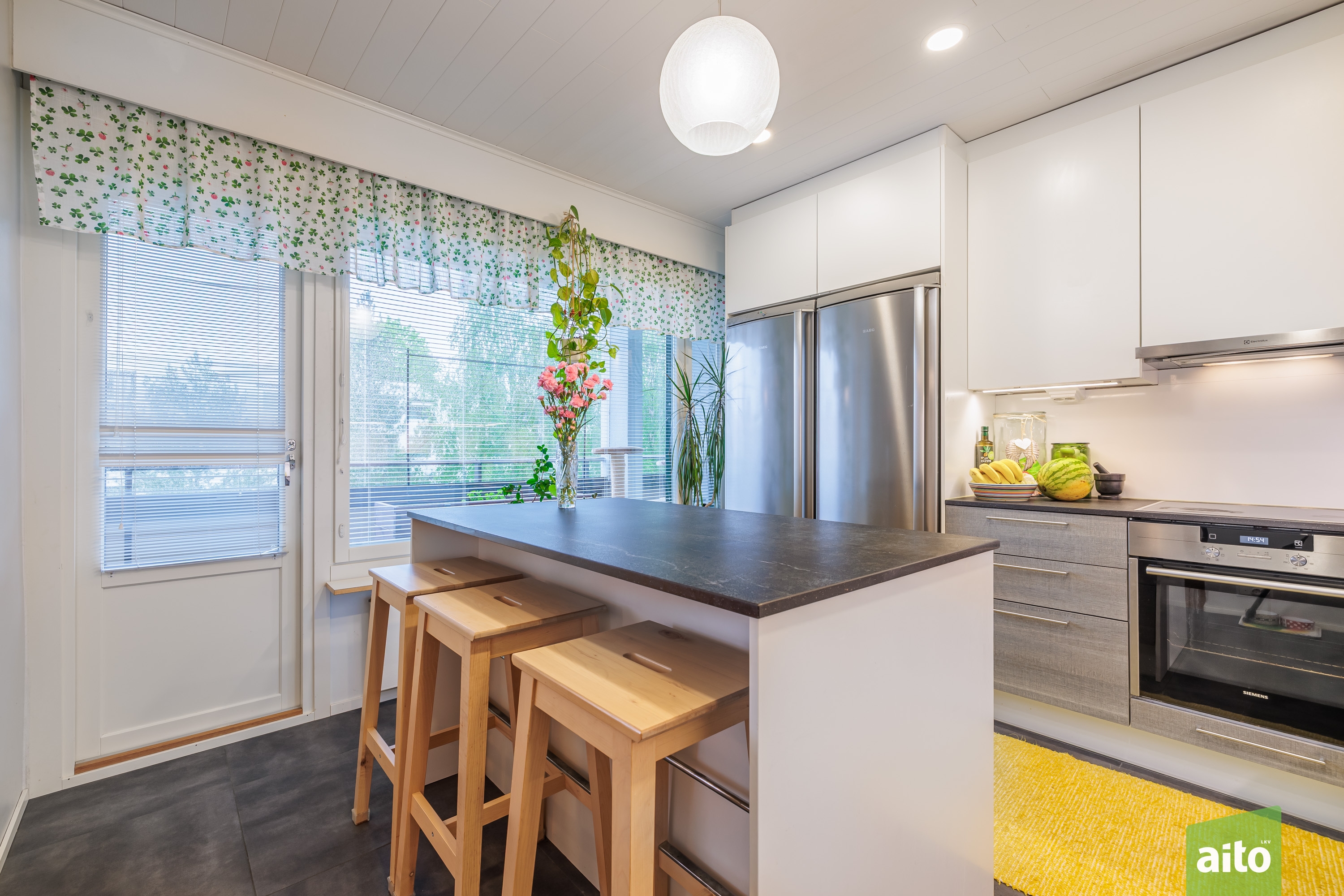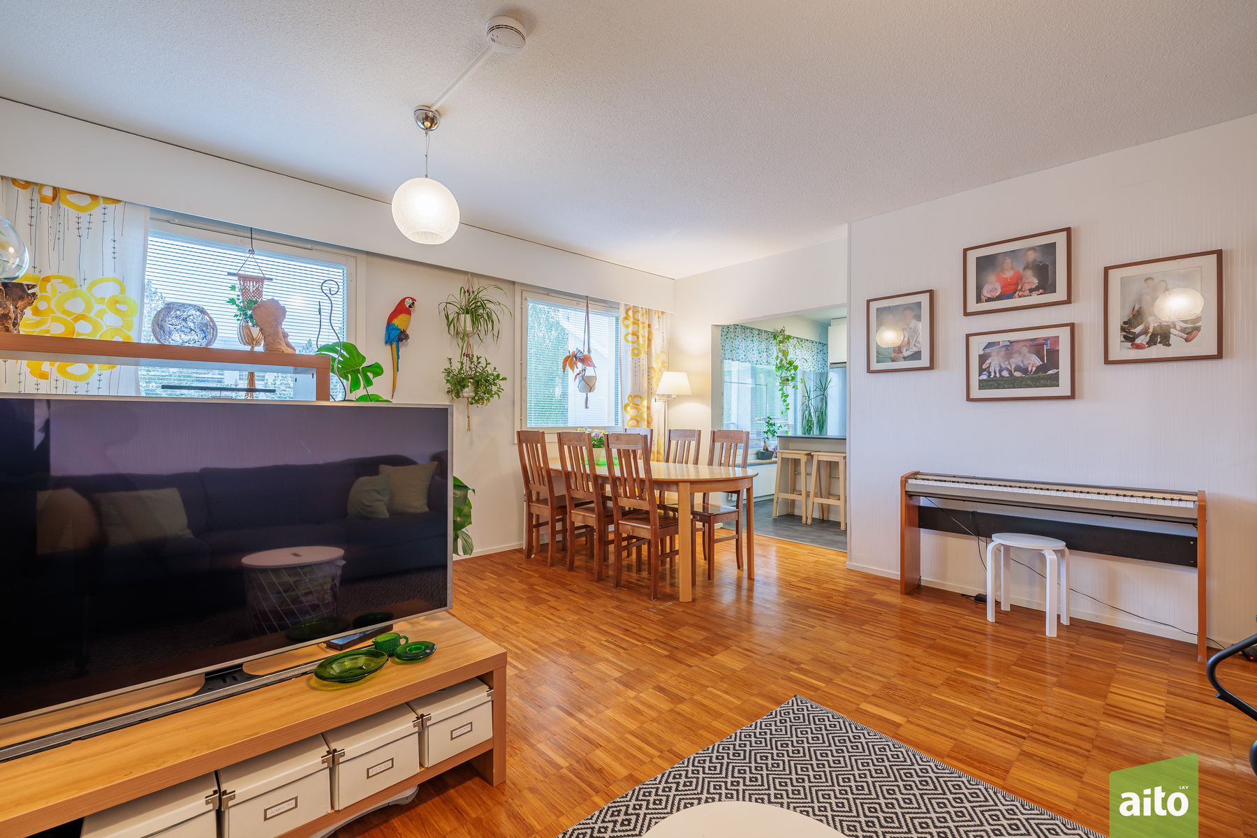 Kaikki arjen palvelut kävelyetäisyydellä. Erinomainen koti suuremmallekin perheelle – tervetuloa tutustumaan!