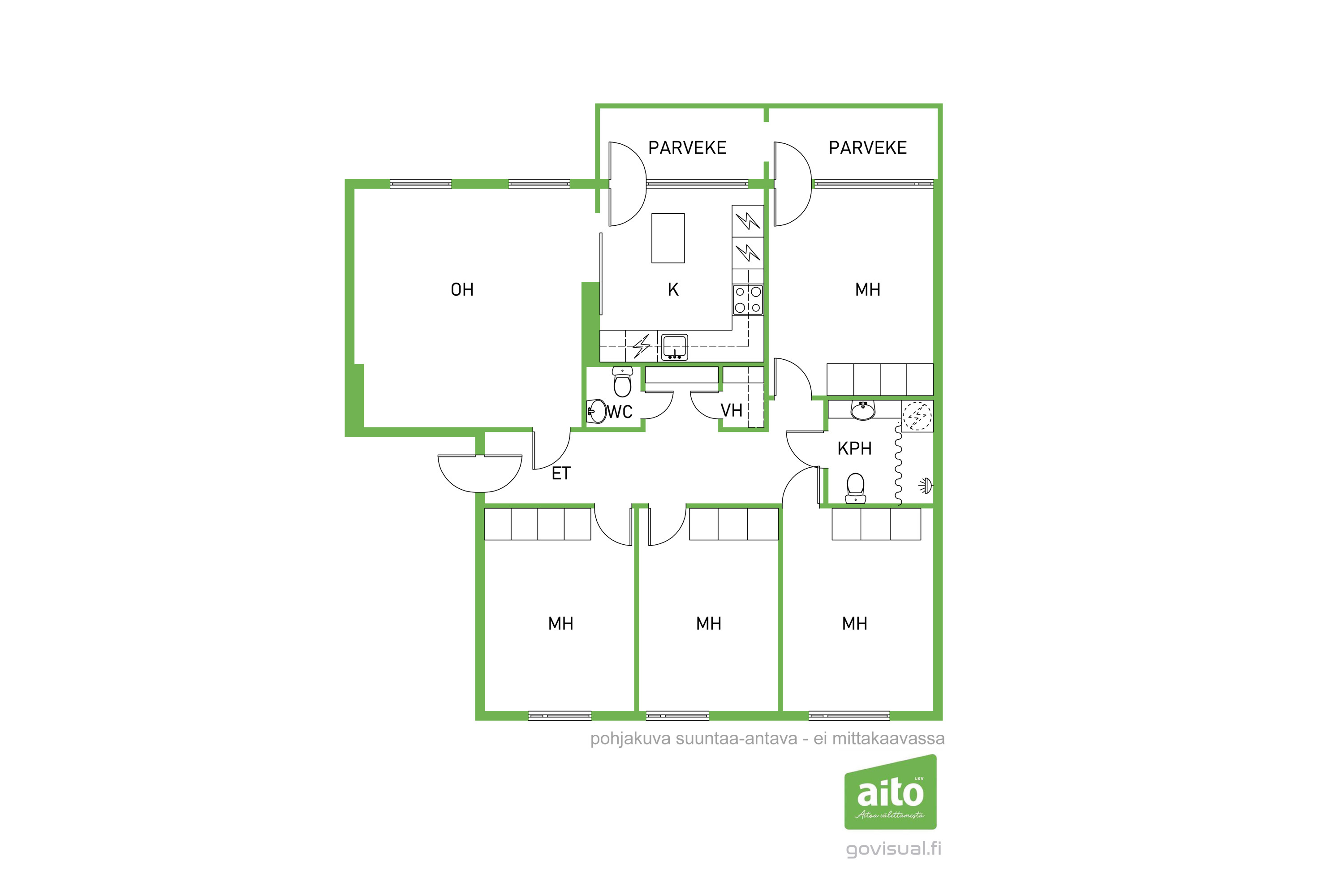 Hyväkuntoinen ja valoisa 112 m²:n kerrostaloasunto Mikkelin keskustan läheisyydessä. 3. kerroksen yksitasoisessa kodissa on neljä makuuhuonetta, erillinen keittiö, tilava olohuone, kylpyhuone ja kaksi yhdistettyä, lasitettua parveketta. Keittiö remontoitu LVIS-saneerauksen yhteydessä, kylpyhuoneessa lattialämmitys.