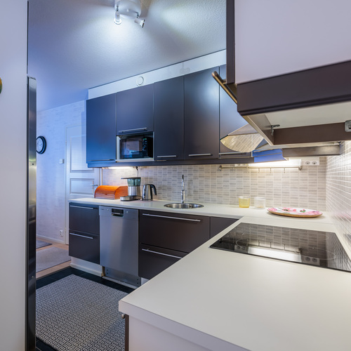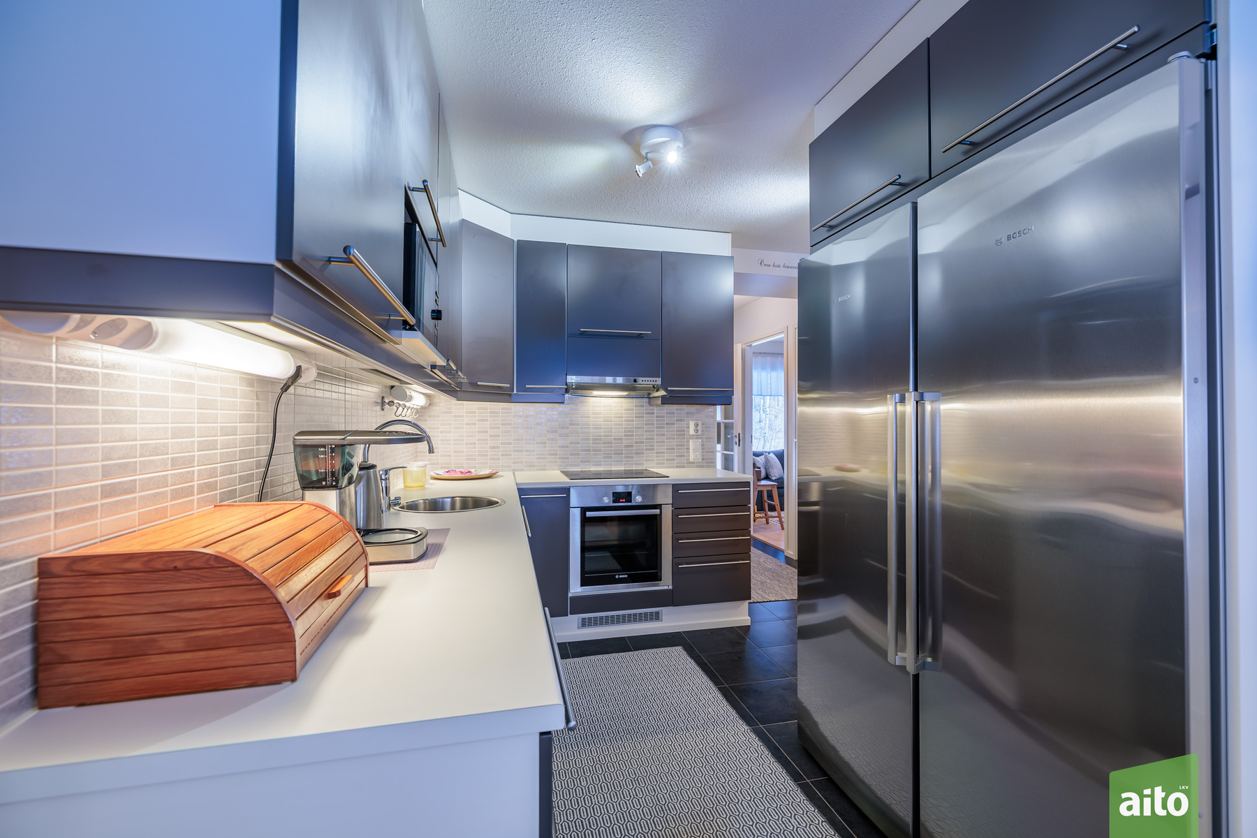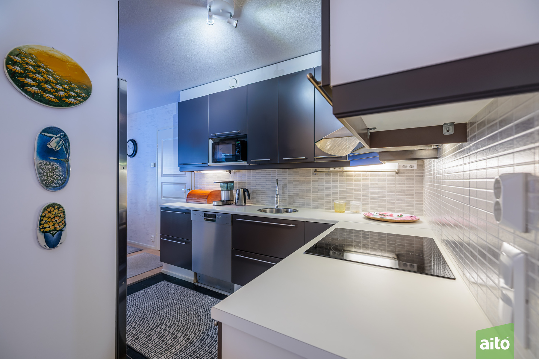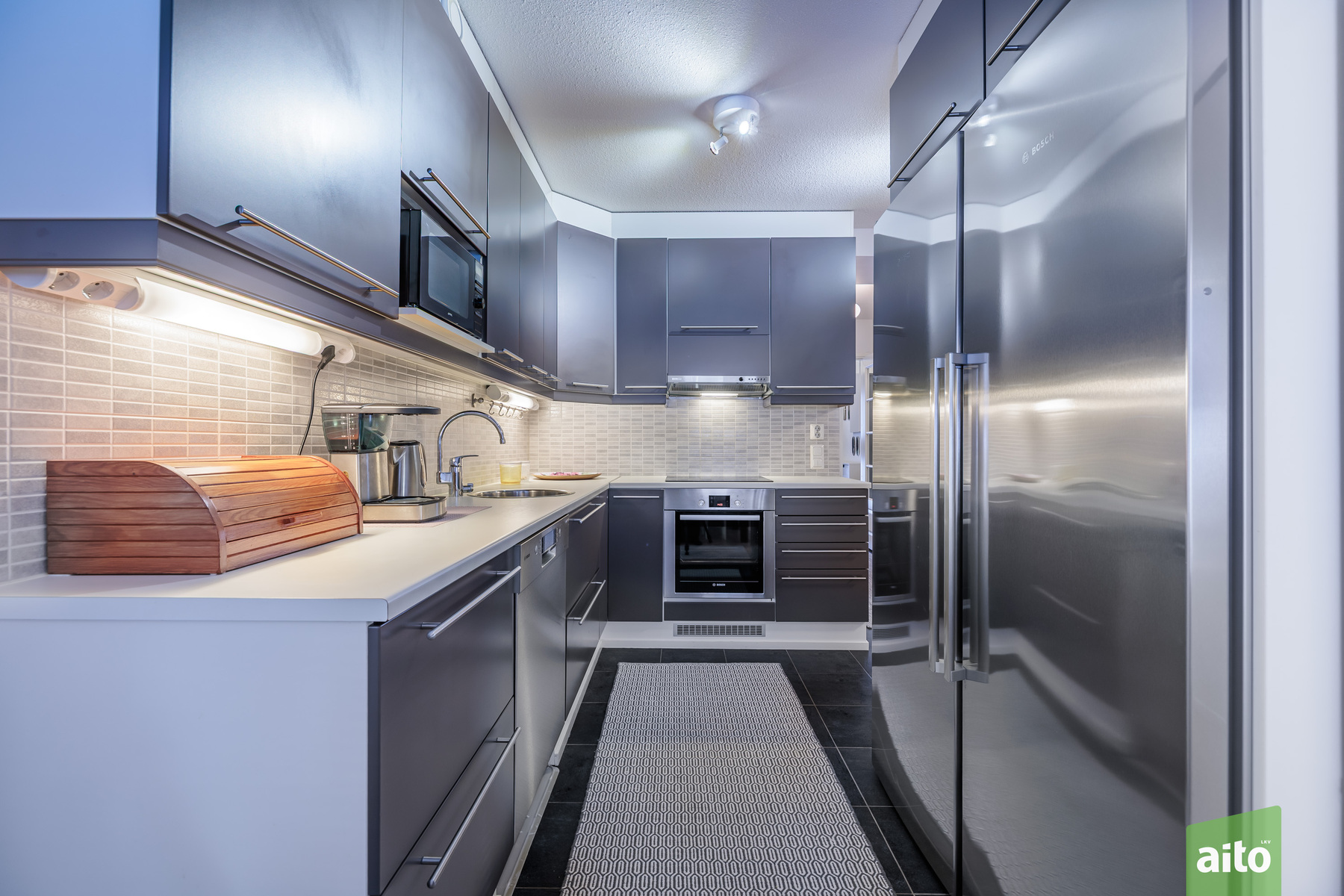 Varusteet: jääkaappi, pakastin, astianpesukone, induktioliesi, erillisuuni, liesituuletin hormilla