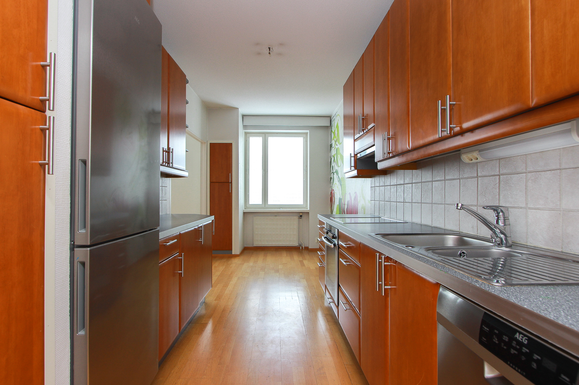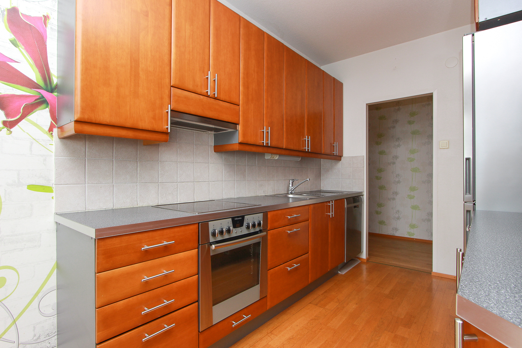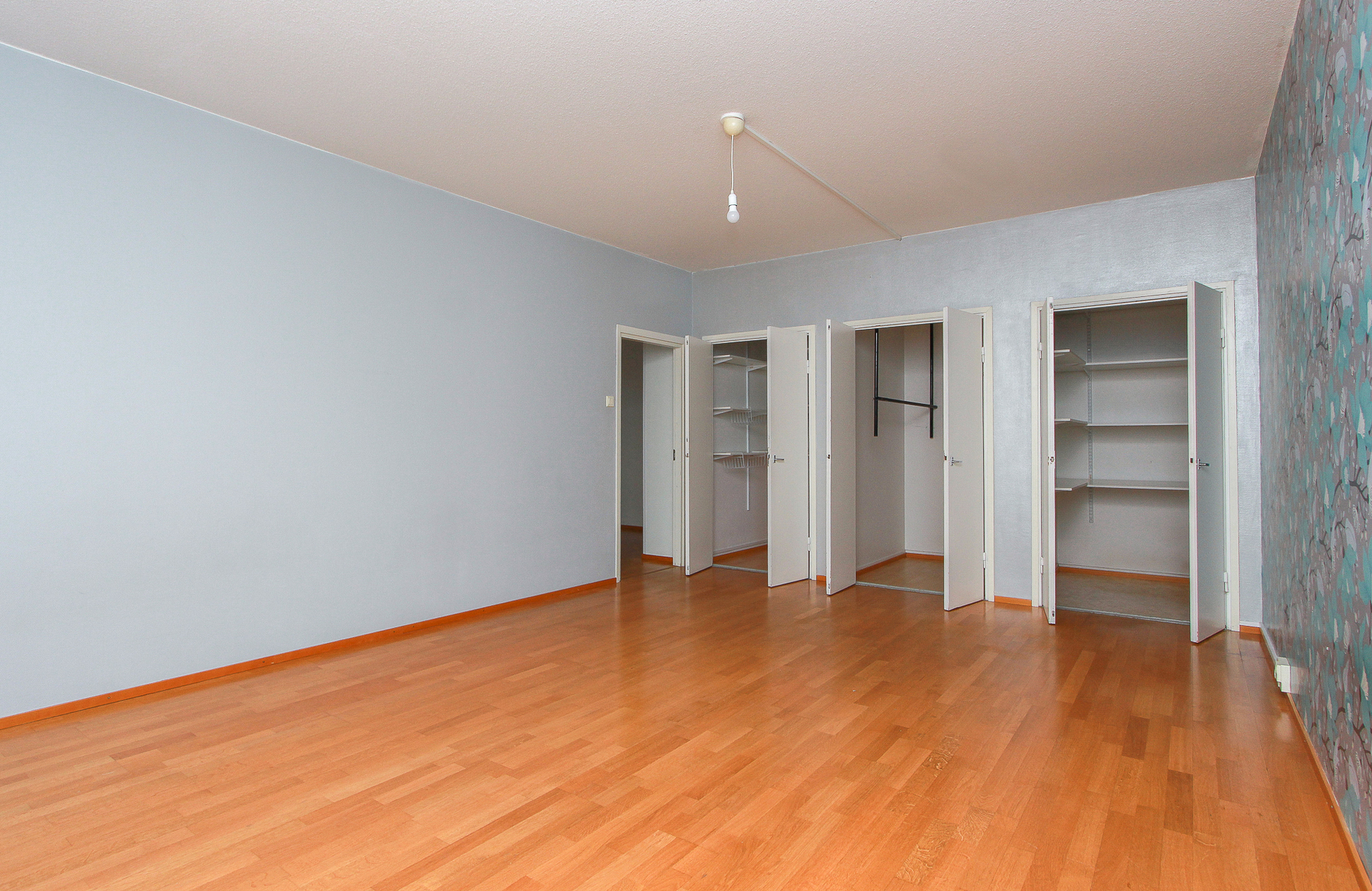 Asunnossa on suuret ja valoisat huoneet sekä makuuhuoneen yhteydessä kolme reilunkokoista vaatehuonetta, jotka tarjoavat runsaasti säilytystilaa. Parkettilattiat tuovat lämpöä ja kodikkuutta tiloihin. Keittiö on toimiva ja hyvin varusteltu.