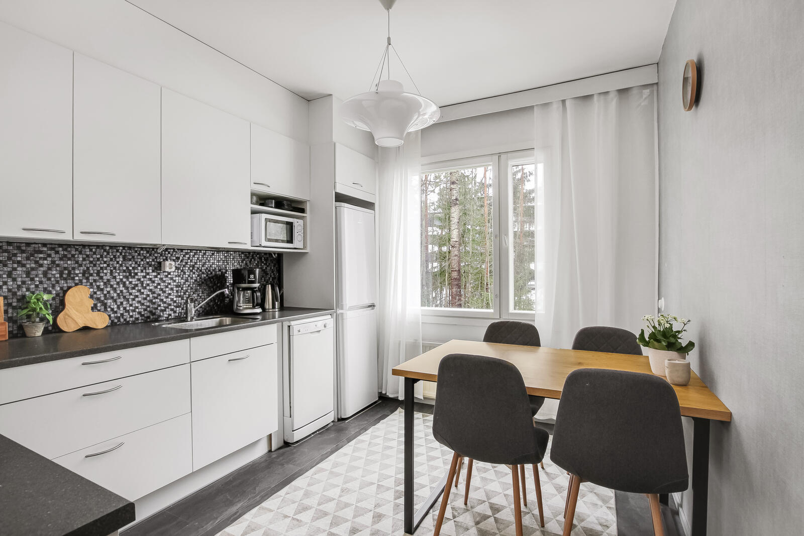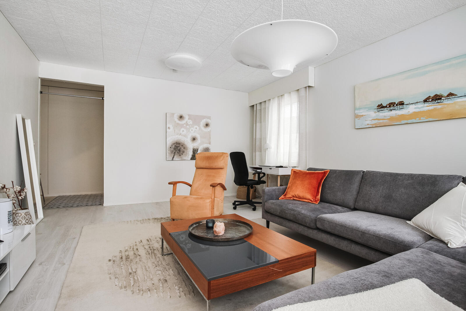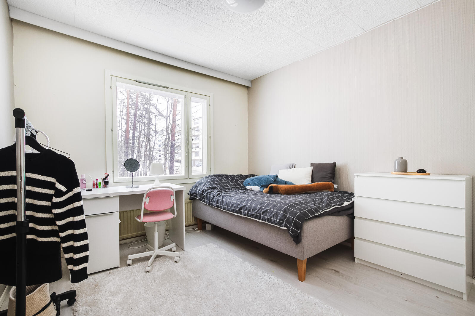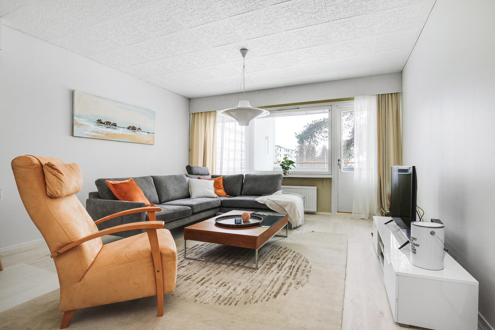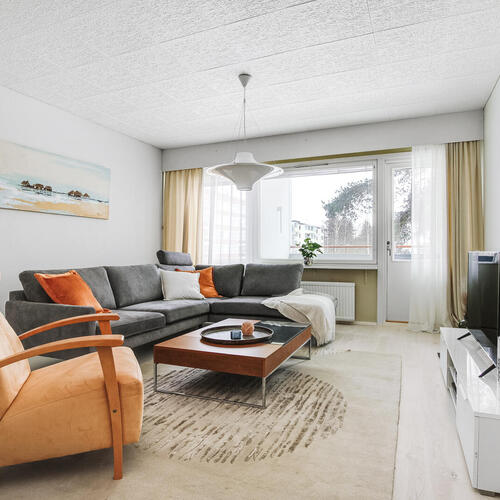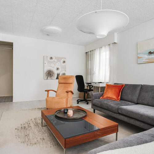 Tämä valoisa koti hurmaa sinut heti sisään astuessasi. Ikkunat avautuvat kolmeen suuntaan, tulvien tilat luonnonvalolla. Avaruutta ja valoisuutta arvostavalle tämä koti on todellinen unelmien täyttymys.