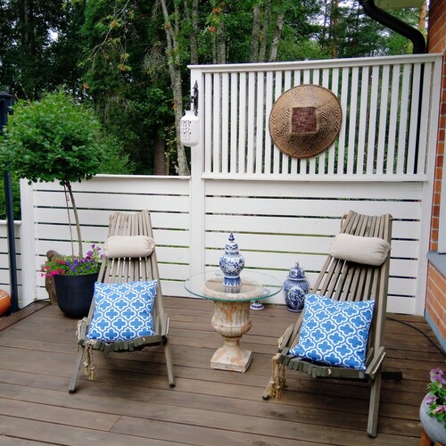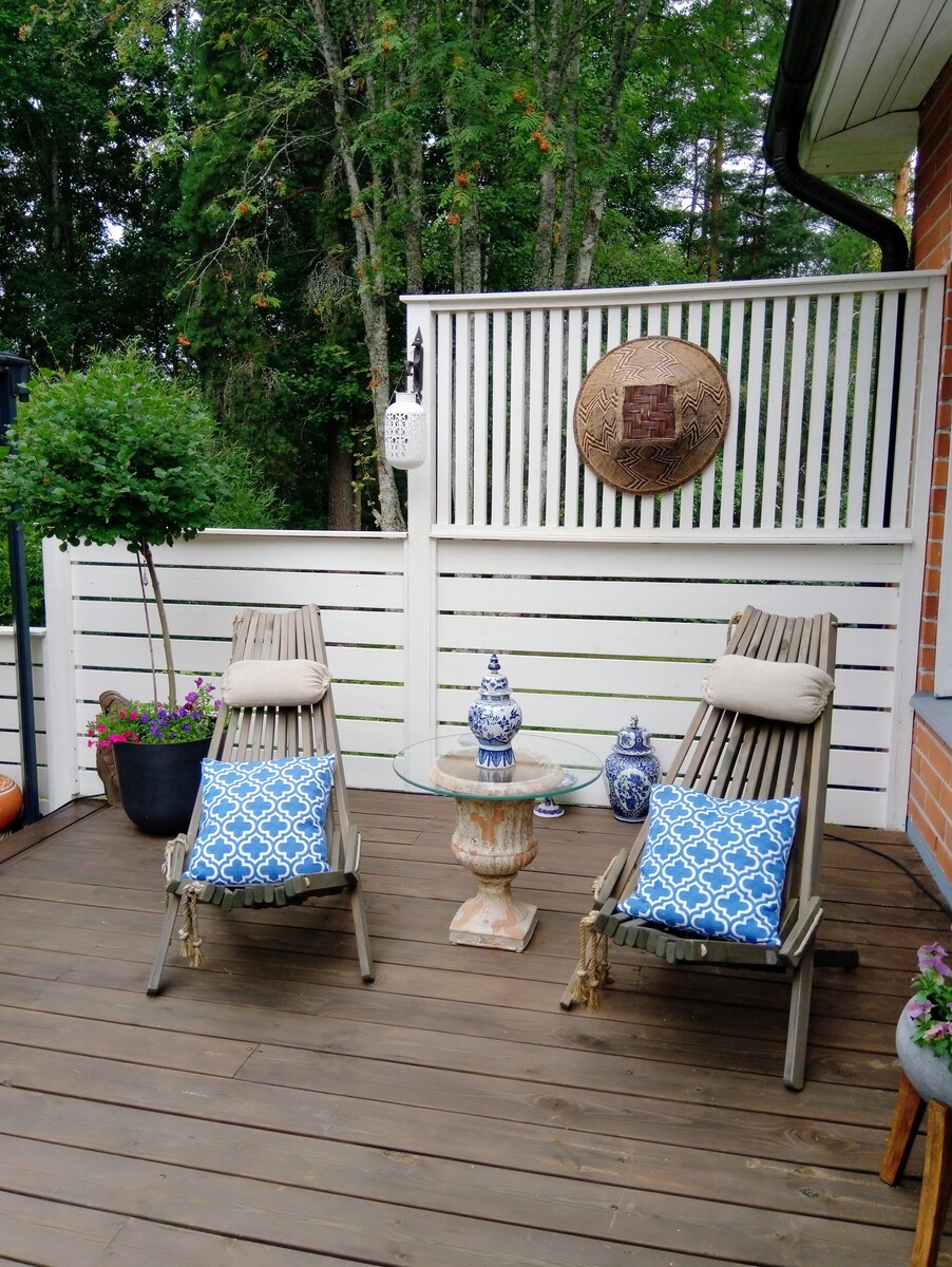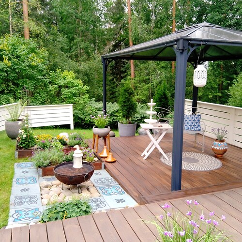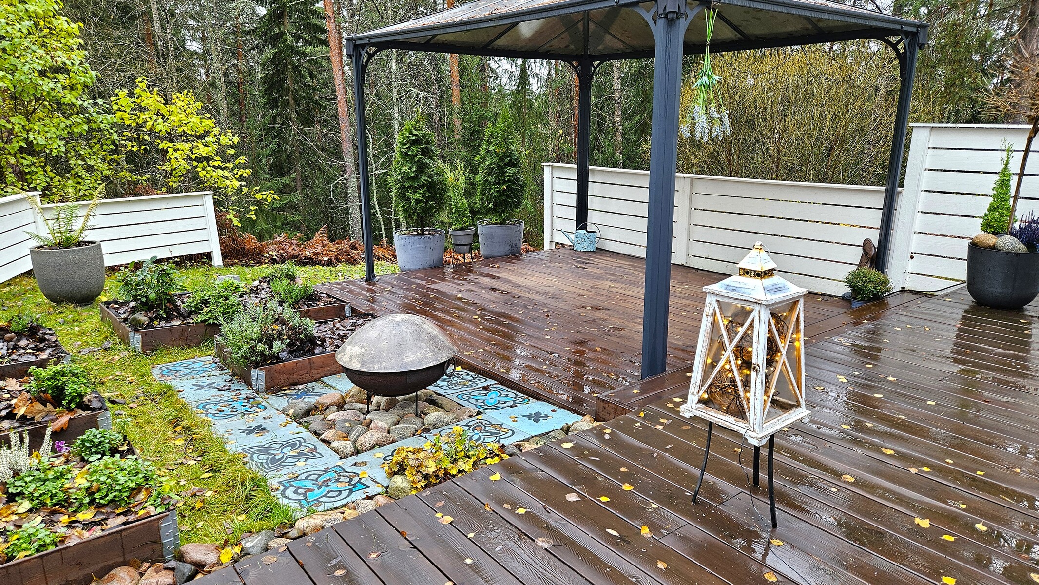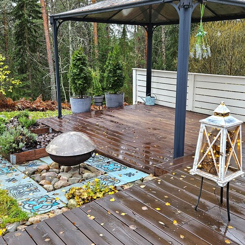 Patio: Terassien yhteydessä pikkupatio, jolla paikka ulkotulelle.