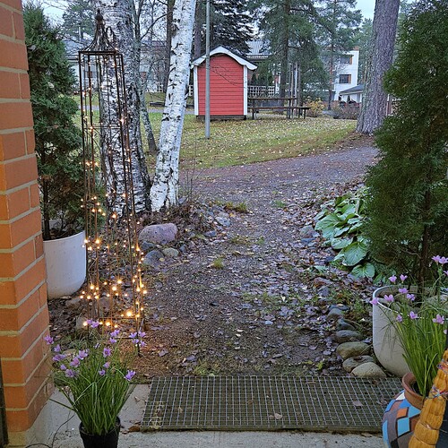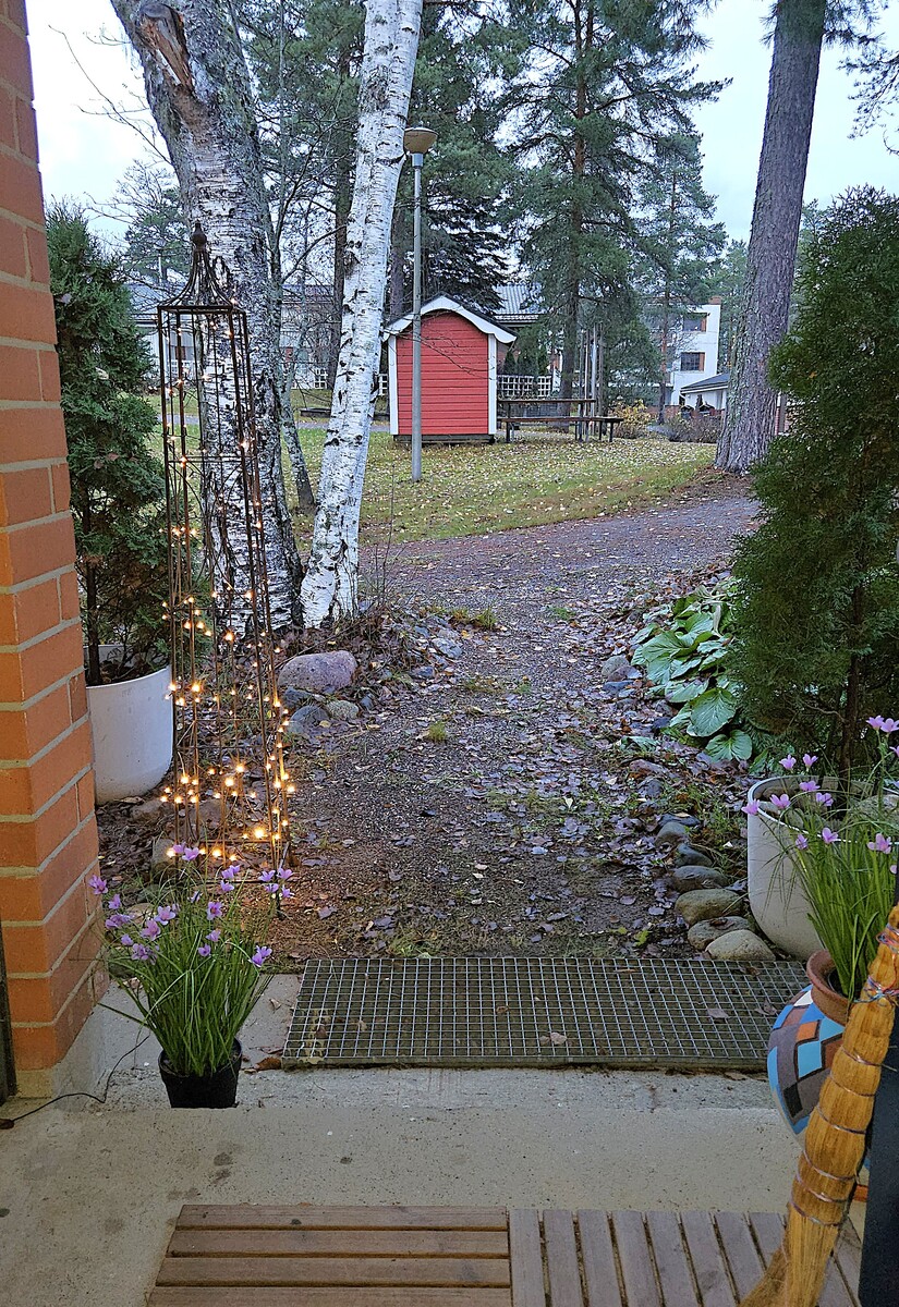 Saumattomasti käy siirtyminen omalta piha-alueelta puistomaiselle reunusta-alueelle ja metsäpoluille.