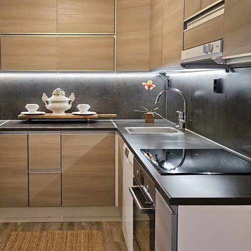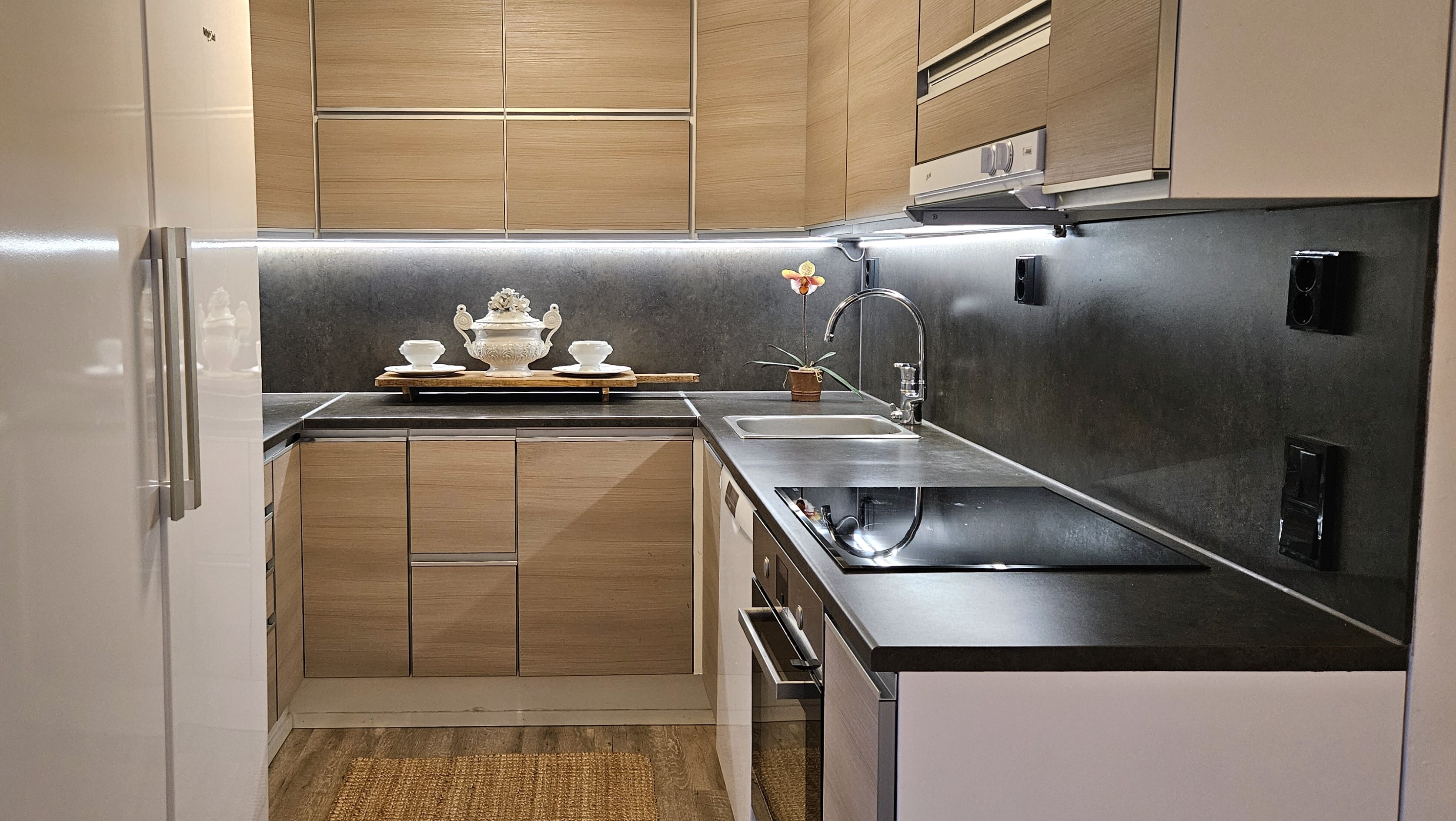 Tyylikäs ja toimiva keittiö tarjoaa erinomaiset puitteet ruoanlaittoon ja yhdessäoloon.