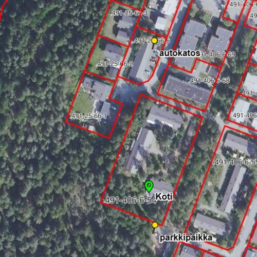 Asunnon käytössä olevat autopaikat: autokatospaikka sähköpistokkeella