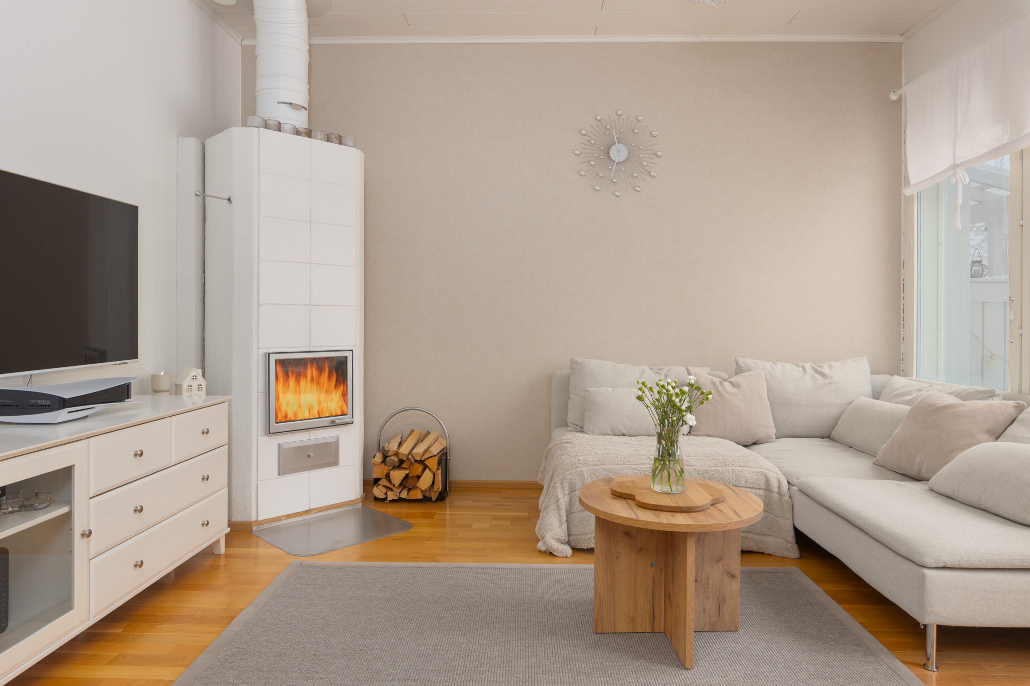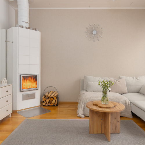 Varaava takka olohuoneessa. Nuohous suoritettu vuosittain.