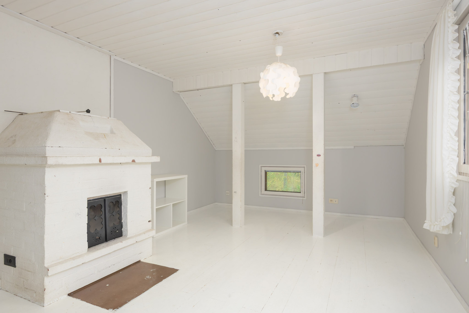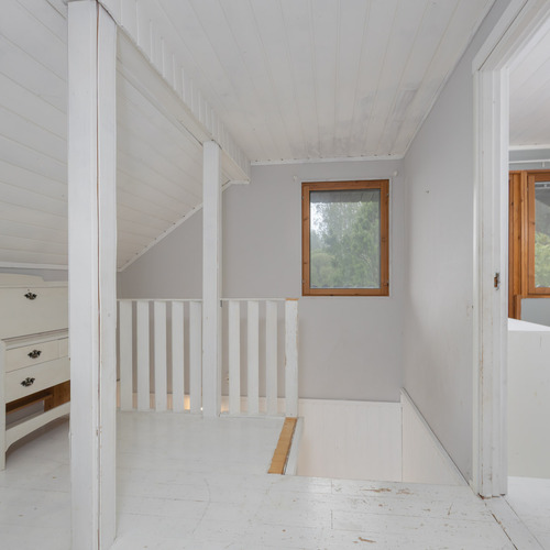 makuuhuoneen yhteydessä vaatehuone (ullakko) ja varaava takka.