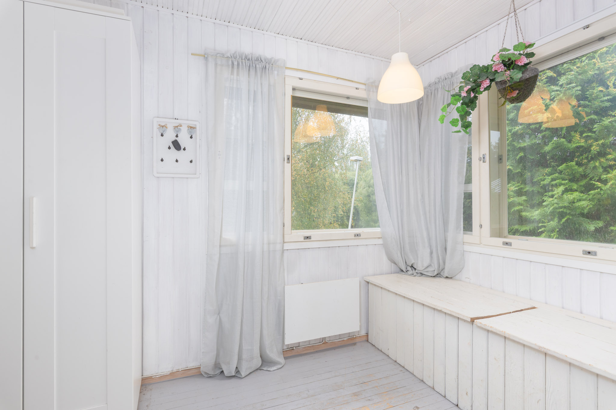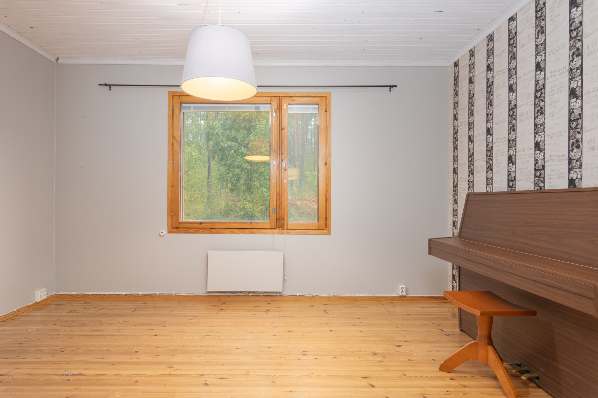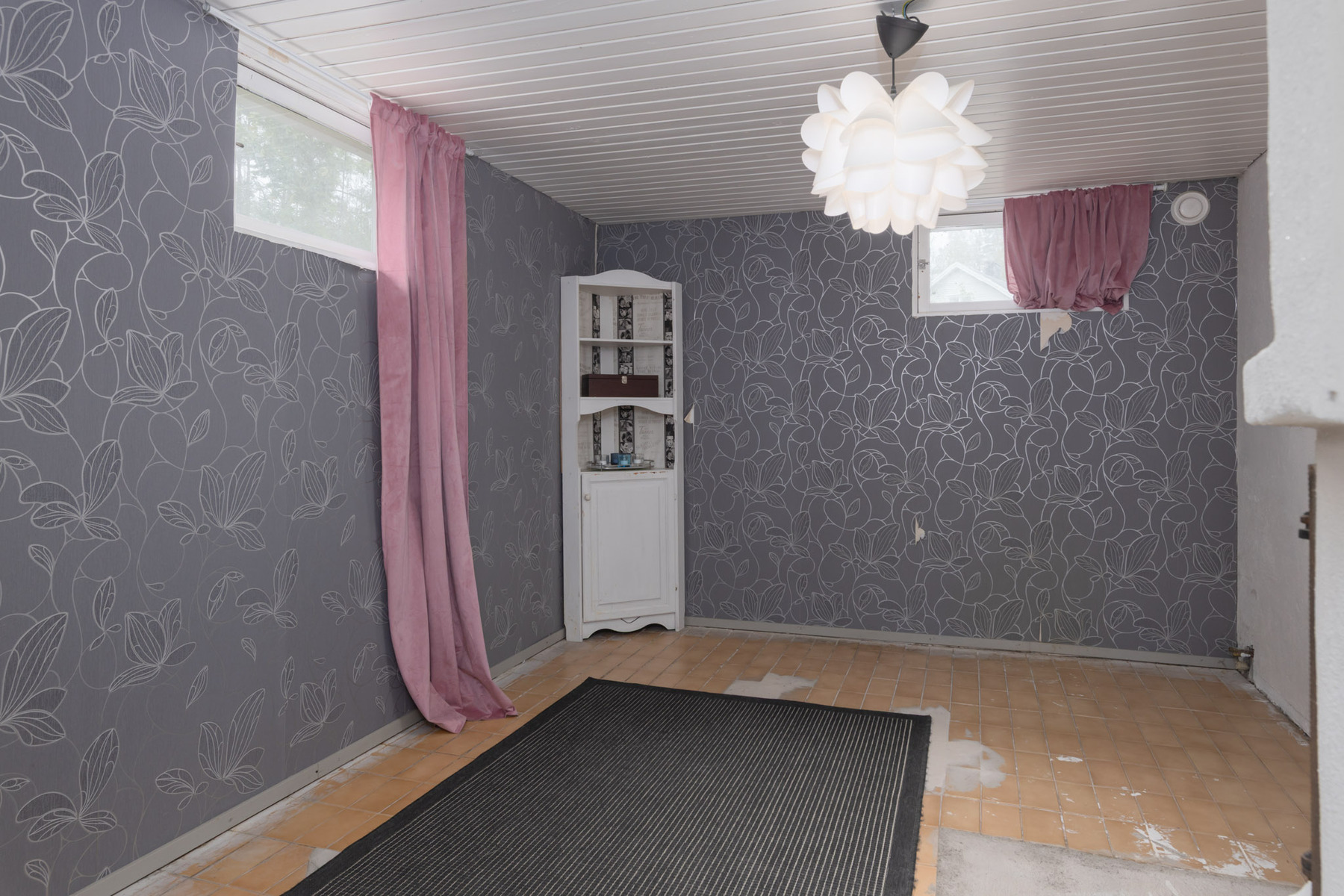 Alakerran makuuhuone toimii tällä hetkellä ruokailuhuoneena. Seinät: