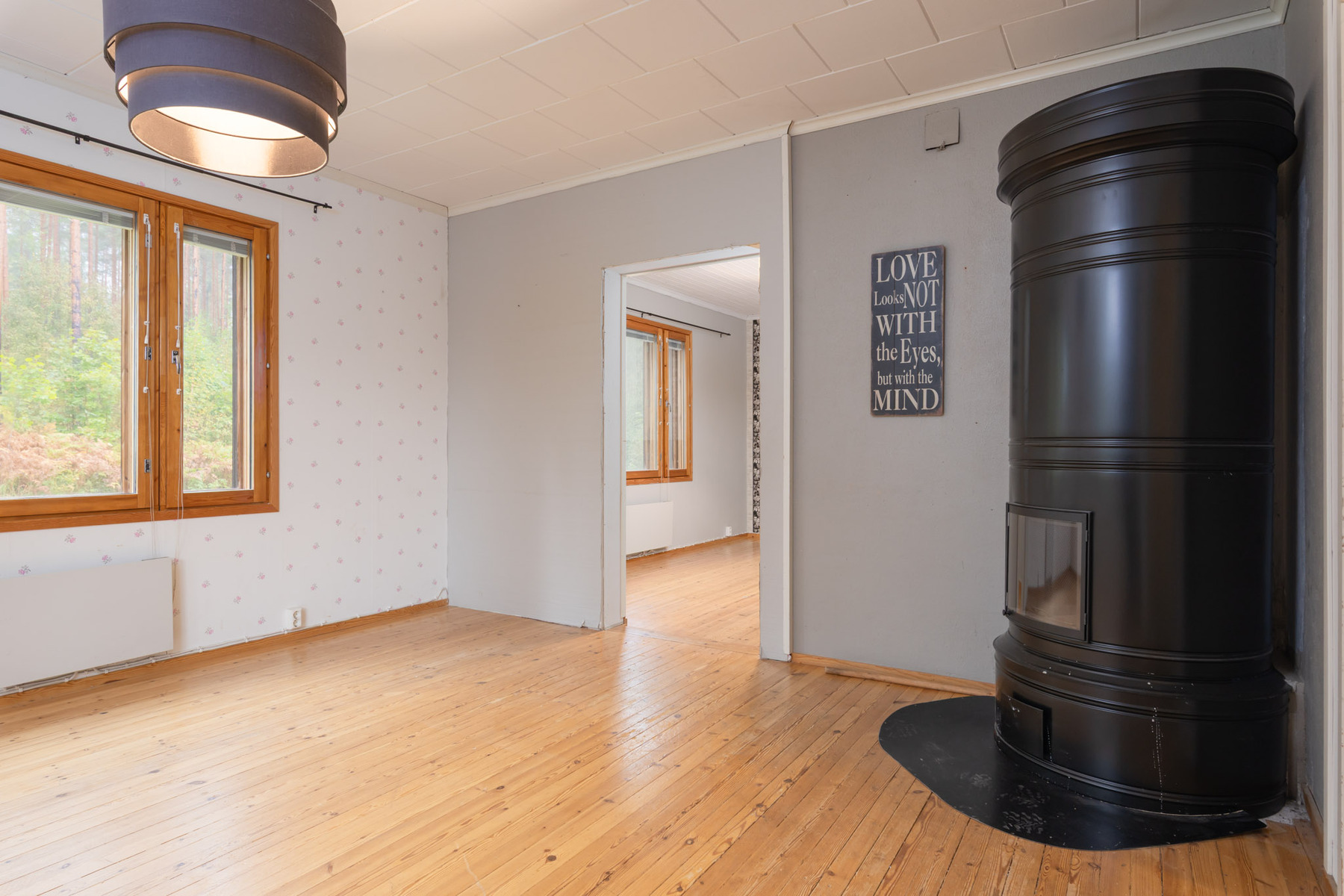 Talo lämpenee sähköllä ja puulla. Tulisijoja löytyy joka kerroksesta – olohuoneeseen asennetaan uutta upeaa pystyuunia, keittiöstä löytyy puuhella ja sekä yläkerrasta että kellarissa on varaava tiilitakka. Ilmalämpöpumppu uusittiin v. 2023.