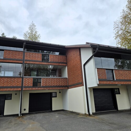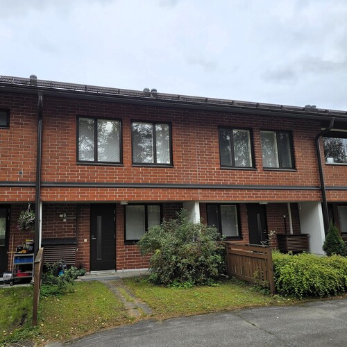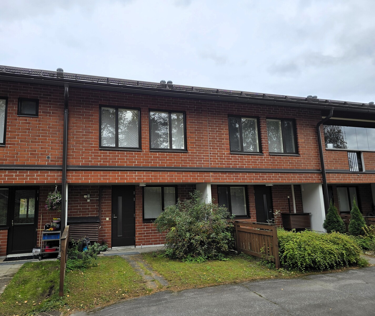 This two-level terraced home on Hanhikankaankatu offers a functional layout and plenty of living space. The home features four rooms, a kitchen, a sauna, a bathroom, and two separate toilets. Both floors have balconies, and the property includes a heated garage and a storage room. The total area is 130 m², of which 100.5 m² is residential space.