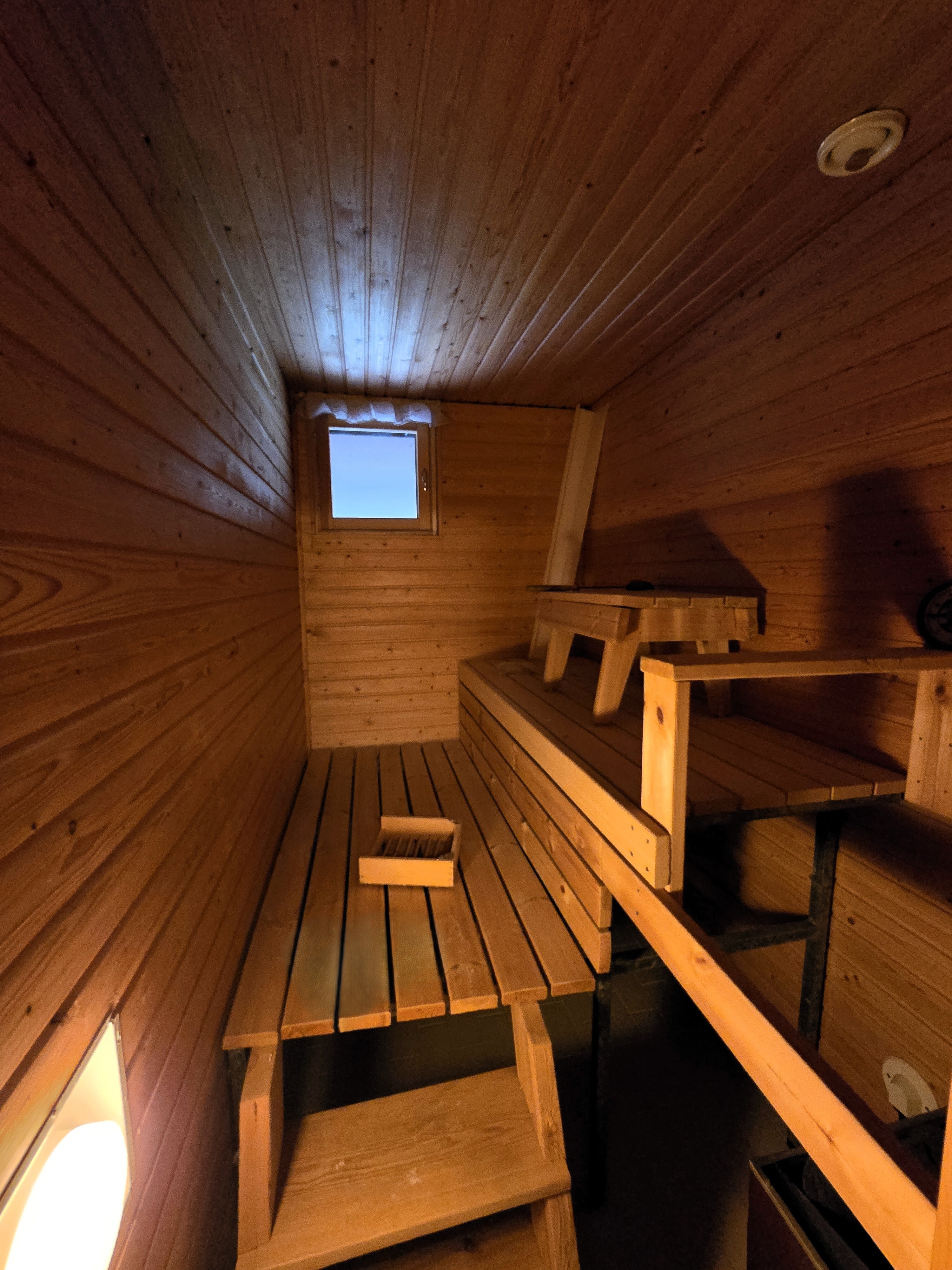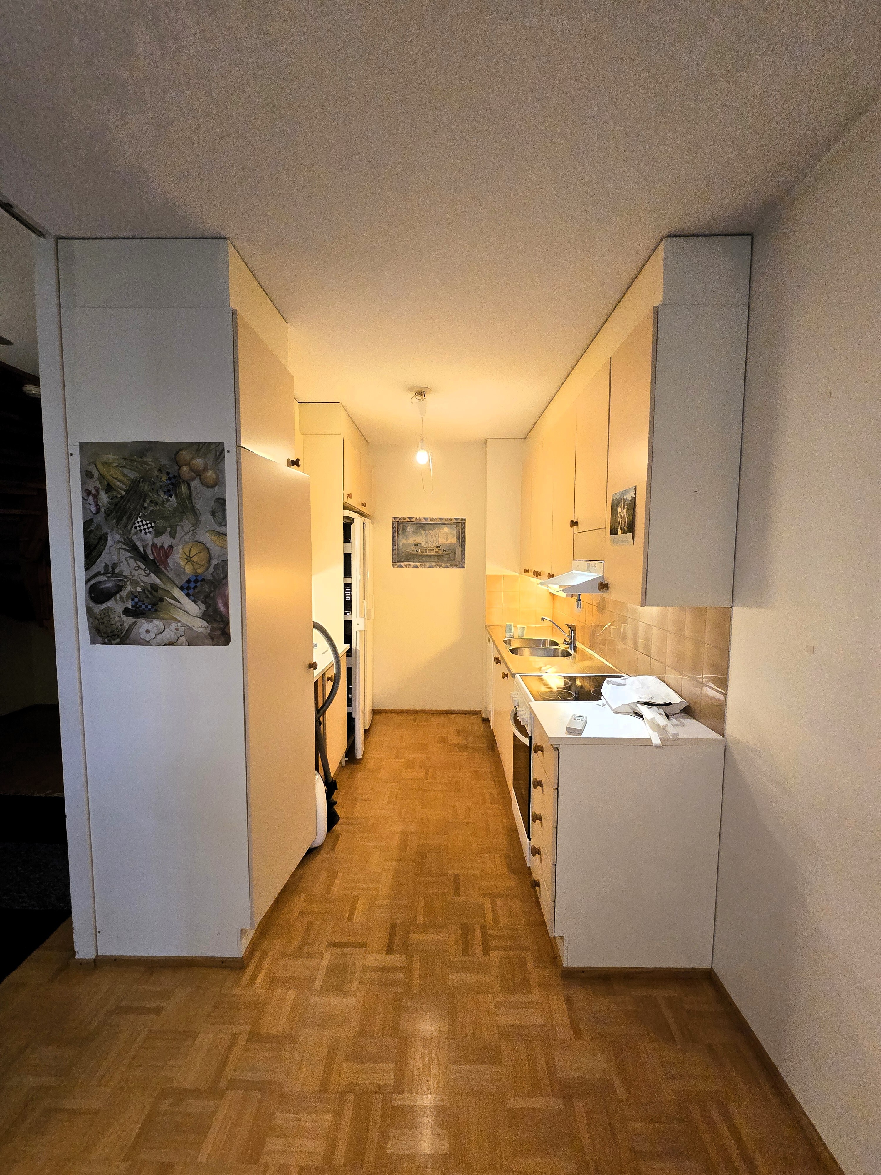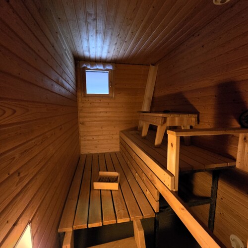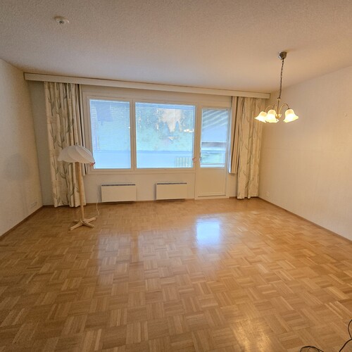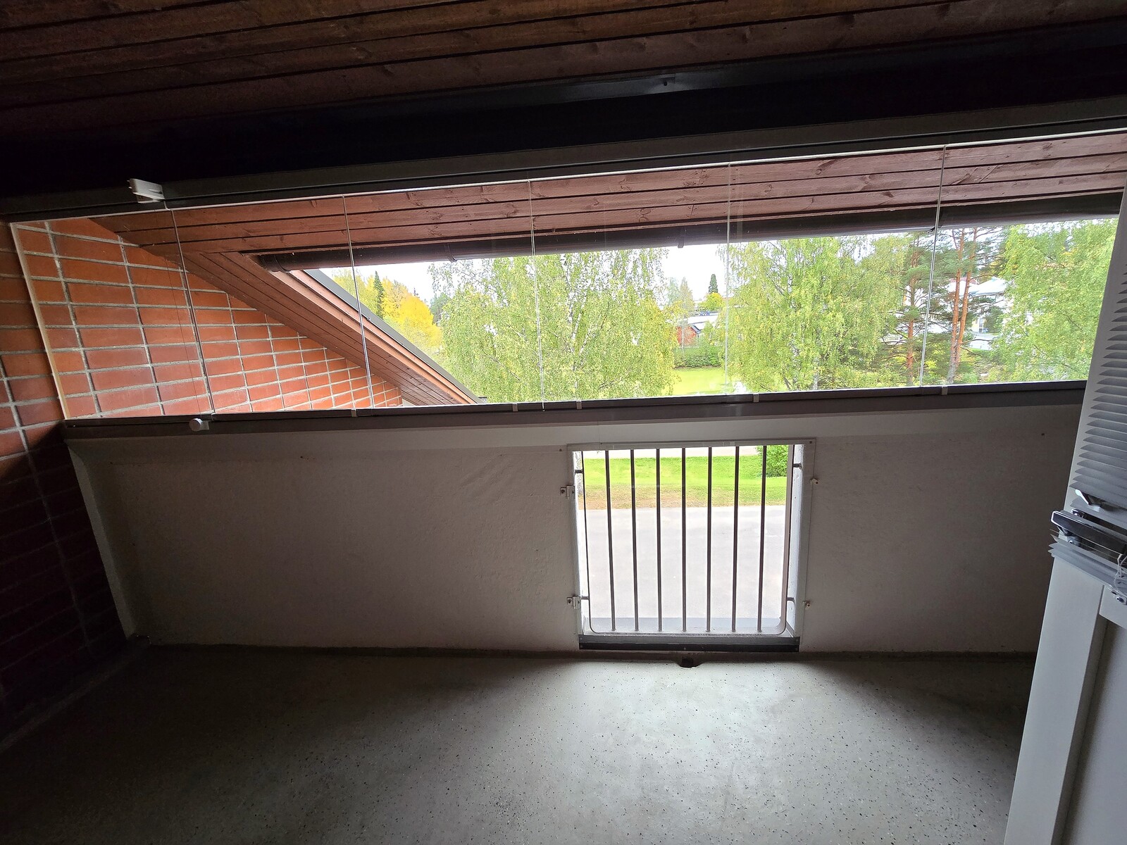 The layout is practical and divides the living and private areas naturally. The entrance level hosts the kitchen and a bright living room with access to a glazed balcony. Upstairs, there are three bedrooms, a sauna, and another balcony. The apartment is mainly in its original condition, offering an excellent opportunity to renovate and update the interiors according to your own style and preferences.