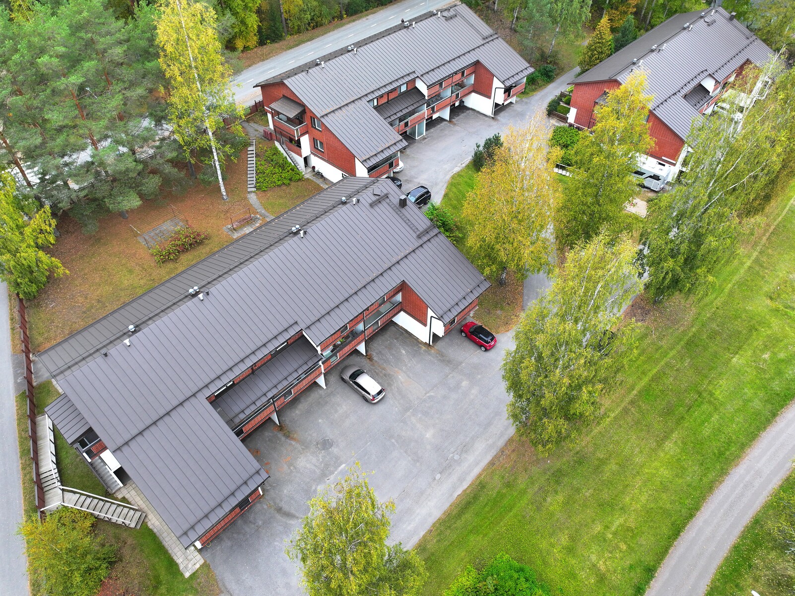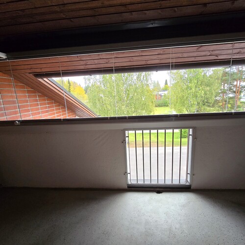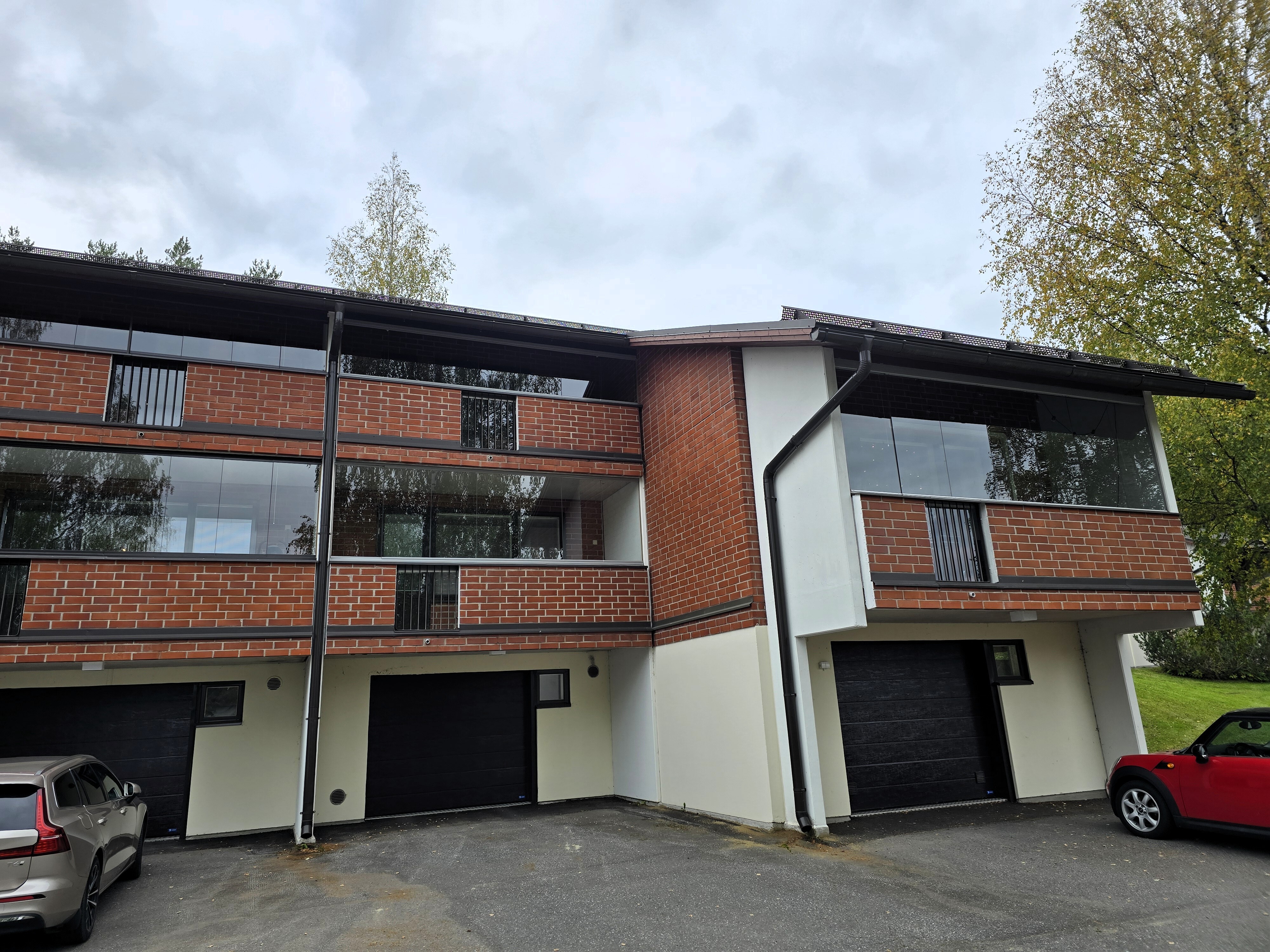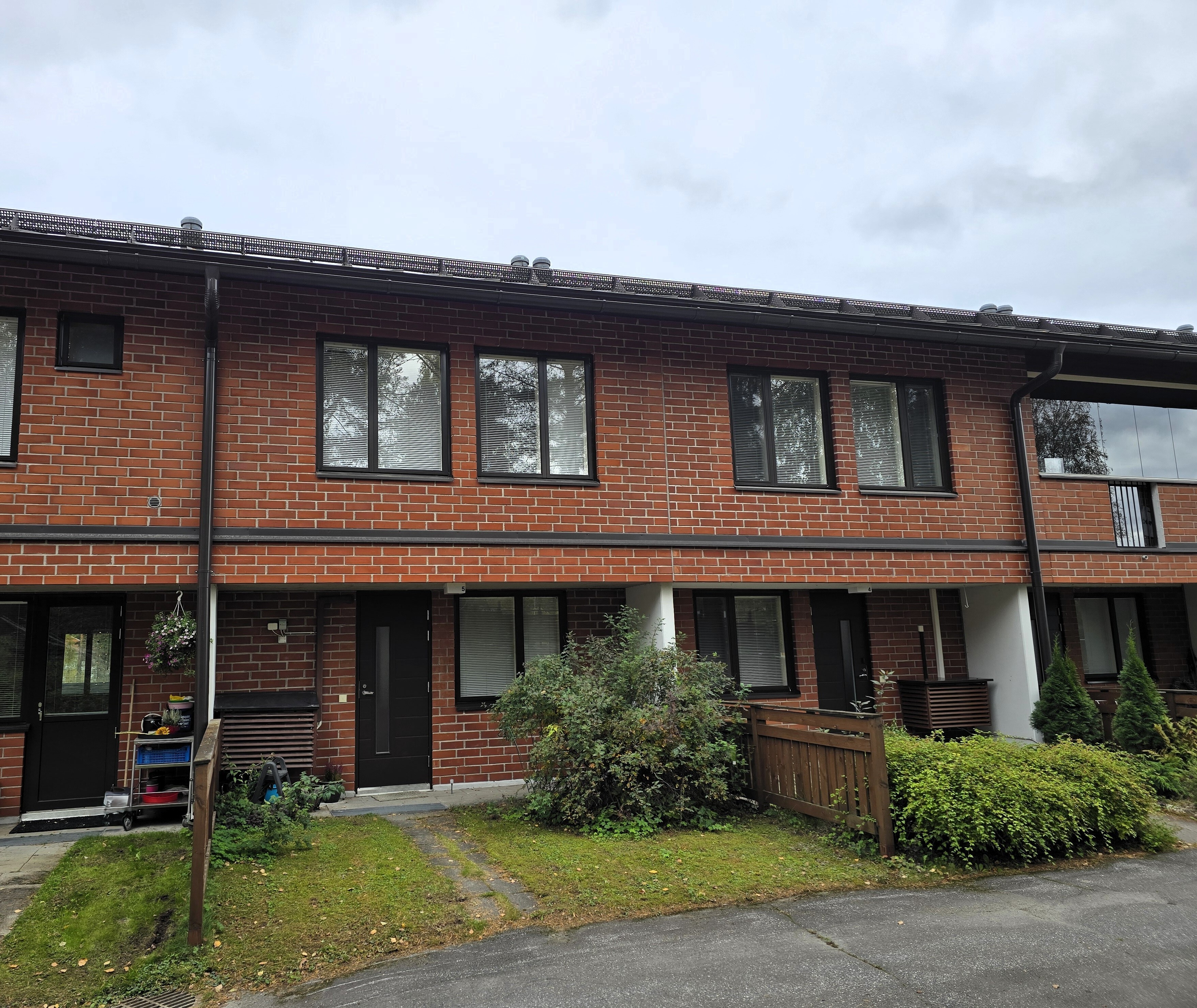The housing company has carried out several major renovations, including a roof renovation (2010), renewal of wooden staircases (2018), replacement of windows, doors, and garage doors (2023), as well as repair of foundations and yard asphalts (2023). The warm garage provides direct access to a spacious storage room, and the courtyard area is well-maintained and peaceful.