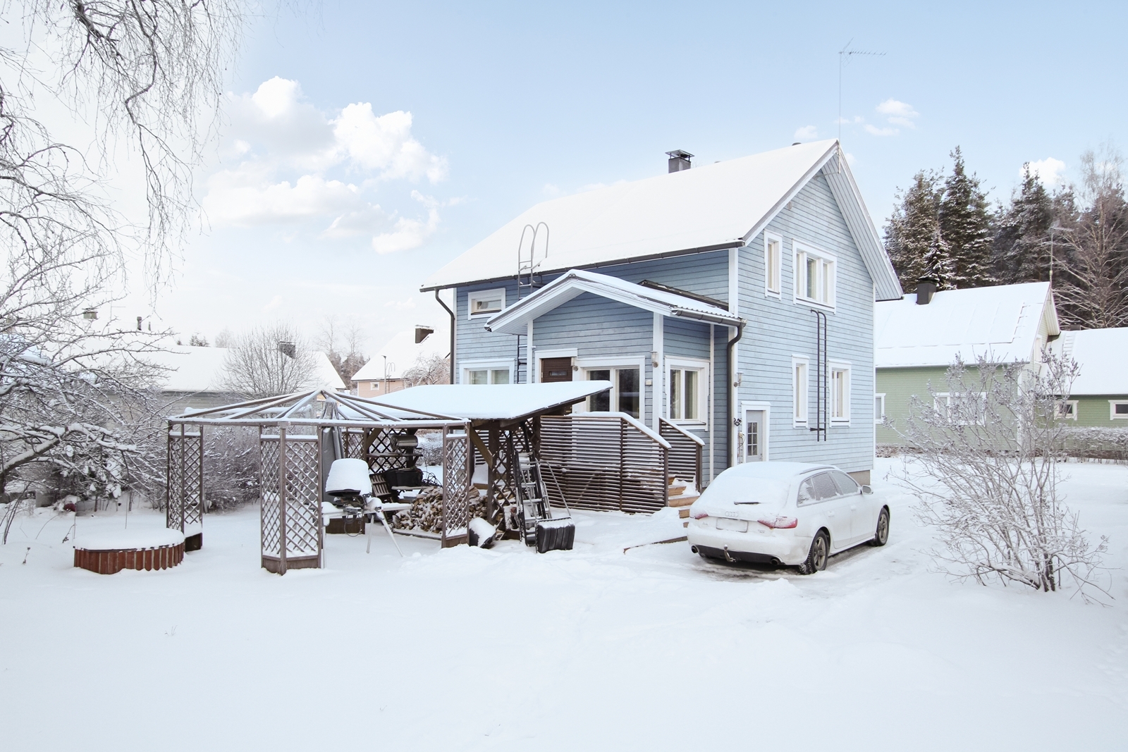 Kodin lämmityksessä on huomioitu myös kesäajan mukavuus: käytössä on viilennystoiminto, joka pitää sisäilman miellyttävänä myös lämpiminä kuukausina. Suojaisa ja huolella hoidettu oma tontti tarjoaa vehreyttä ja yksityisyyttä – täydellinen ympäristö perhe-elämälle, puutarhaharrastukselle tai vaikka ulkoporealtaalle.