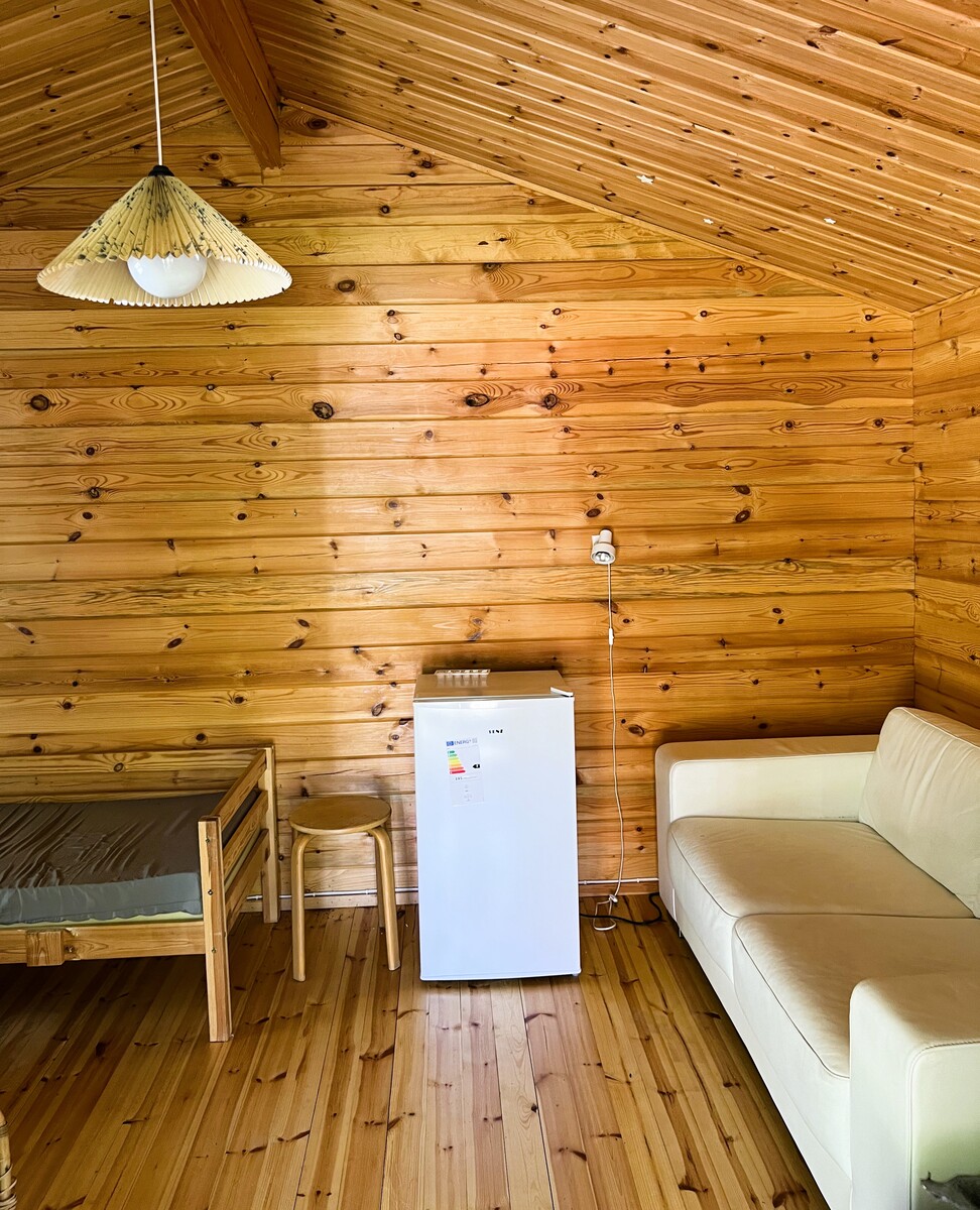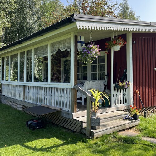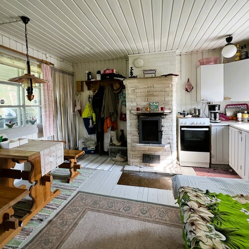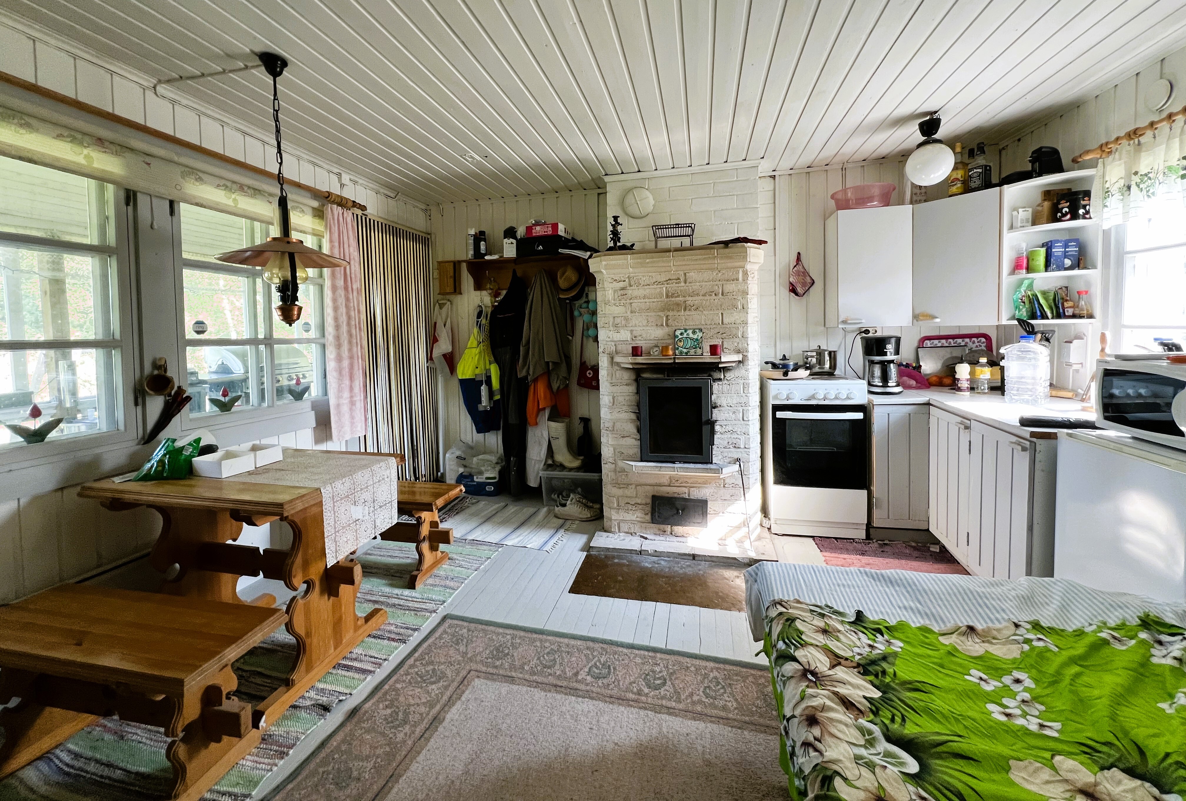 Tämä viihtyisä vapaa-ajan paikka kutsuu viettämään kiireetöntä aikaa luonnon keskellä. Päärakennuksen tunnelmallinen tupakeittiö, varaava takka ja ilmalämpöpumppu tekevät oleskelusta miellyttävää myös viileämmillä keleillä. Tilavassa puulämmitteisessä saunassa nautit perinteisistä löylyistä, ja löylyhuoneen ikkunasta avautuu näkymä suoraan järviluontoon.