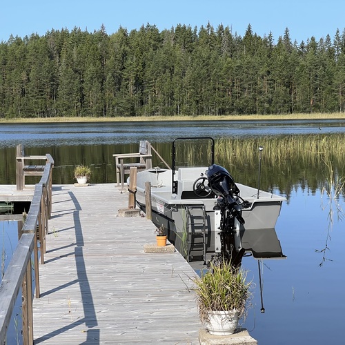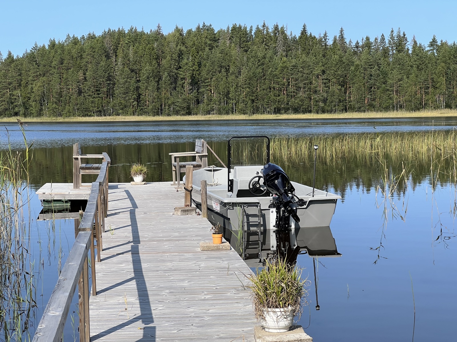 Rannassa odottaa pitkä ja hyväkuntoinen laituri, josta pääset helposti uimaan tai veneilemään. Vesi on kirkasta ja virtaavan joen ansiosta aina raikasta.