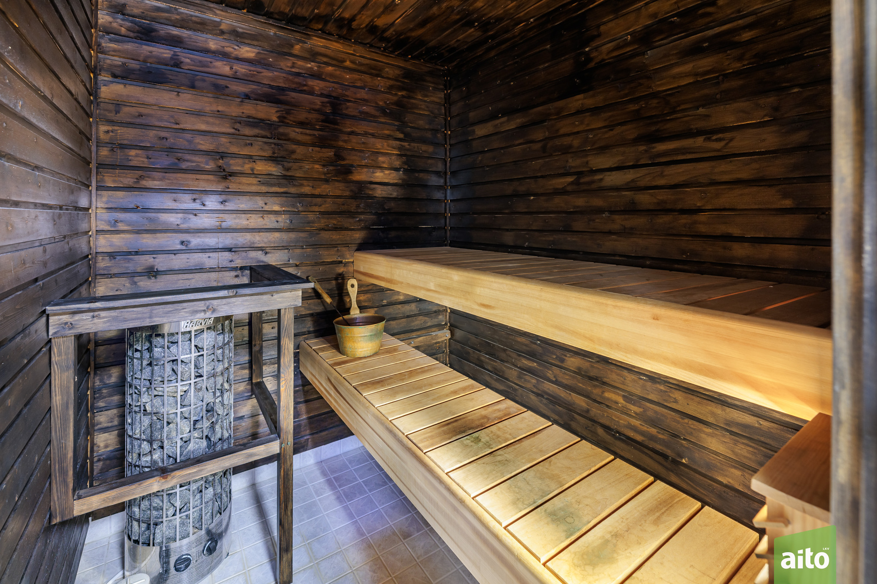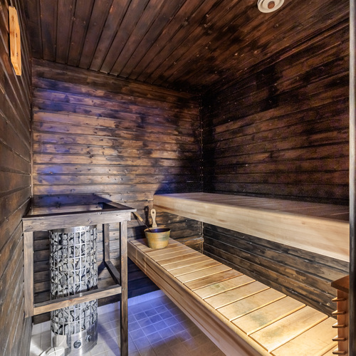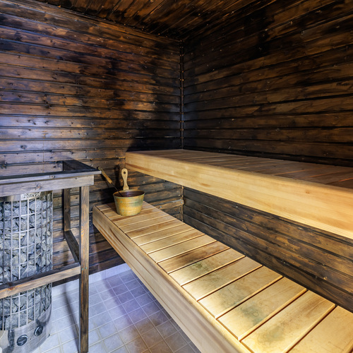 Sauna Asunnossa on sauna Saunan lauteet, saunan lauteet