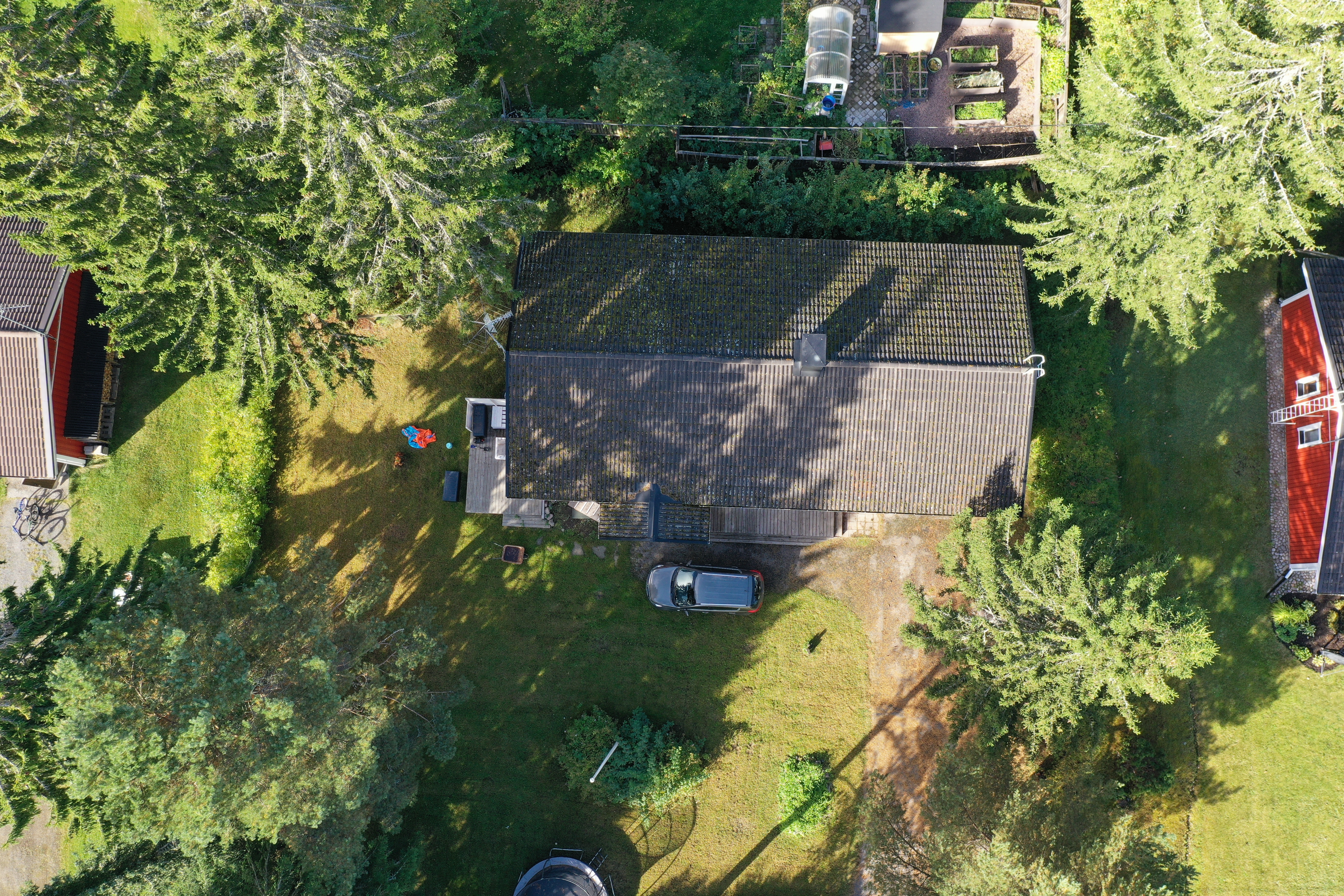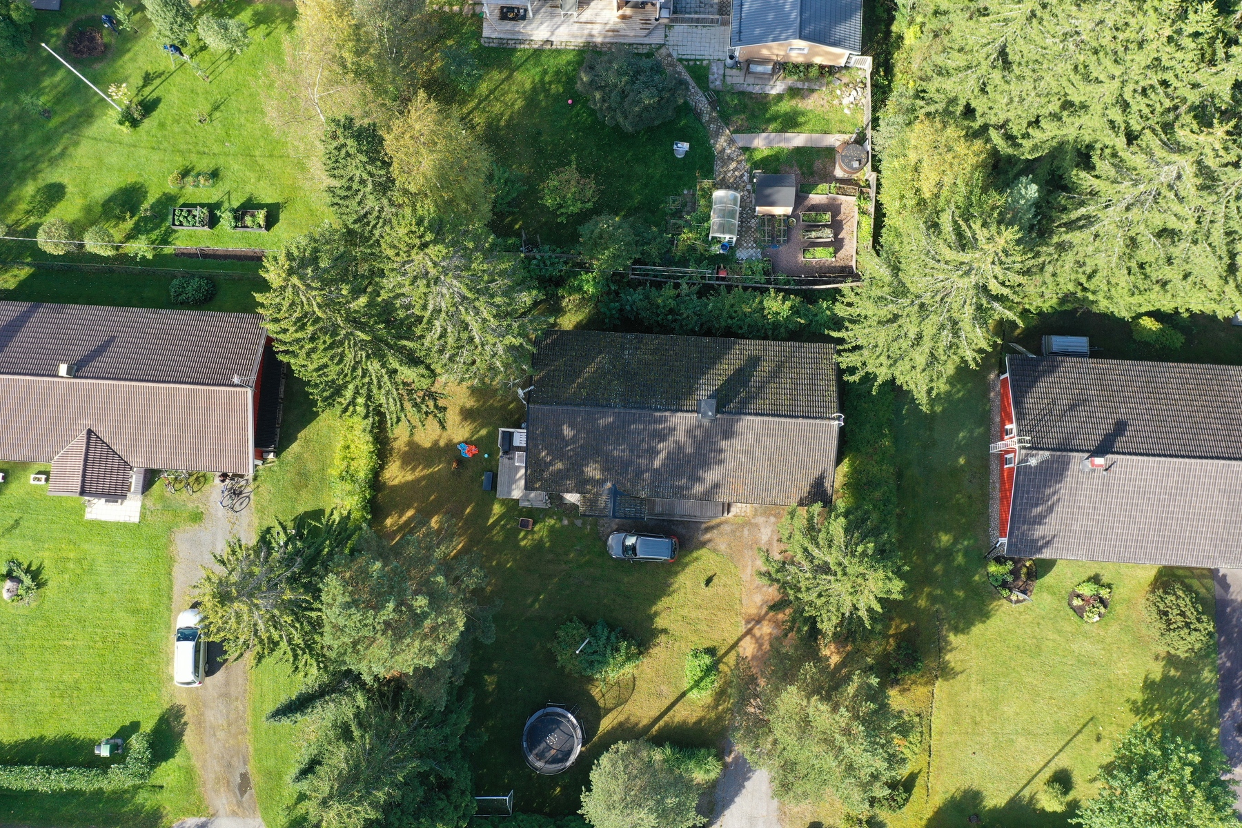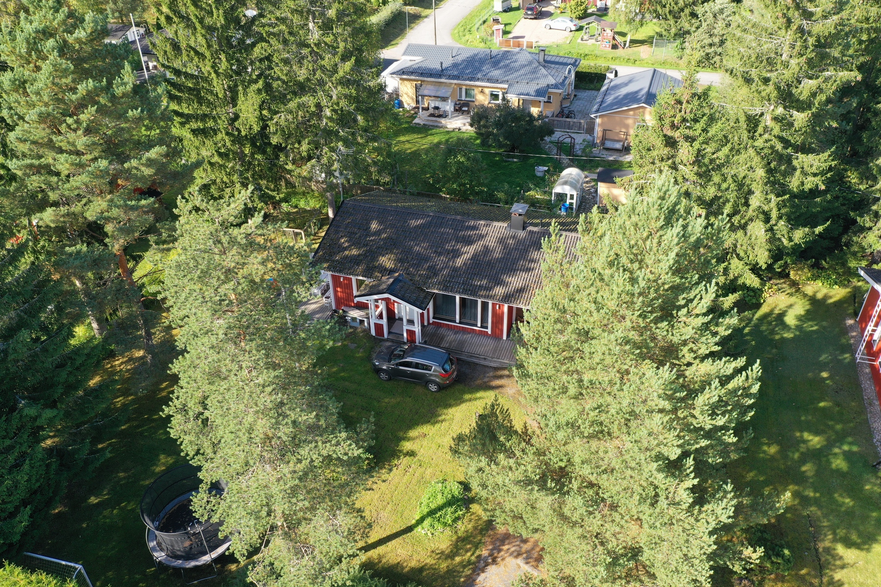 Tontti on tasamaata ja helppohoitoinen, nurmipohjainen piha on viimeistelty monivuotisilla istutuksilla ja ikivihreillä kasveilla, jotka tuovat yksityisyyttä. Kulkuväylä on asfaltoitu. Pihapiiri tarjoaa tilaa sekä lasten leikeille että puutarhaharrastukselle.