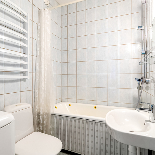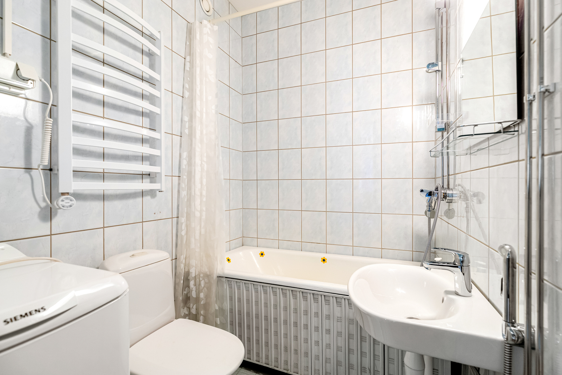 Varusteet: suihku, pesukoneliitäntä, kylpyamme, peili