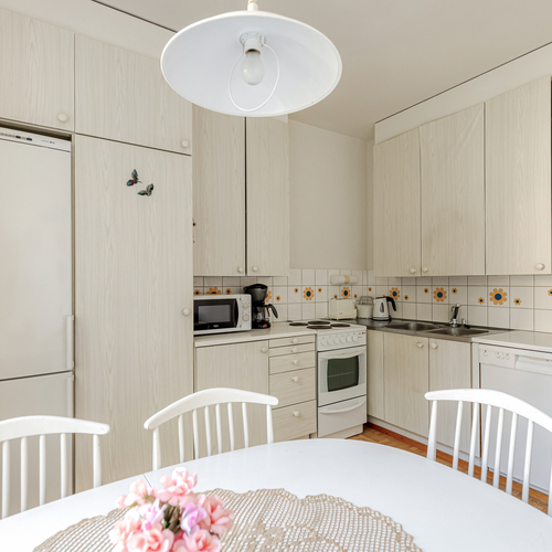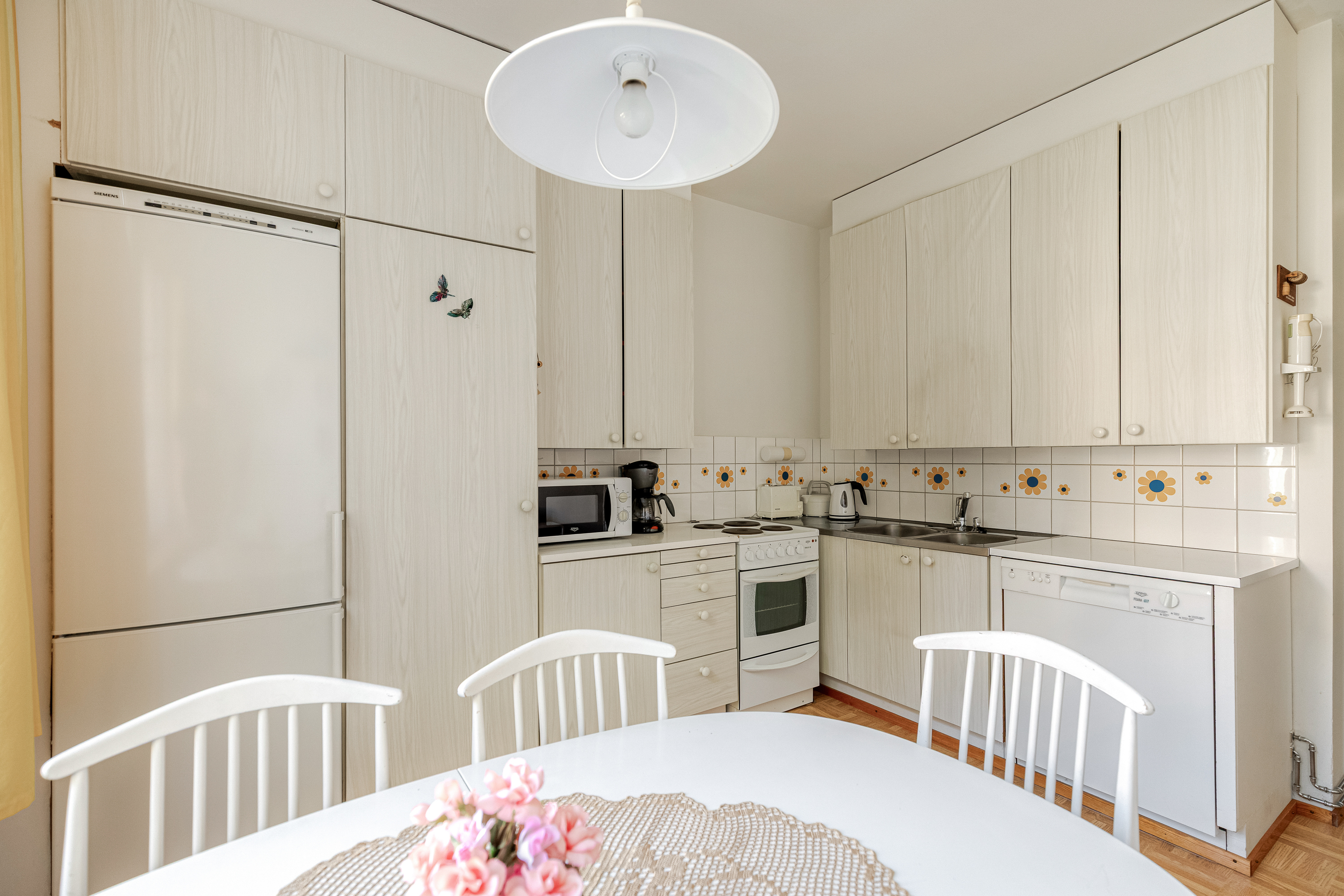 Päivitetty keittiö. Kylpyhuone laatoitettu ja ammeessa on mukava rentoutua.
