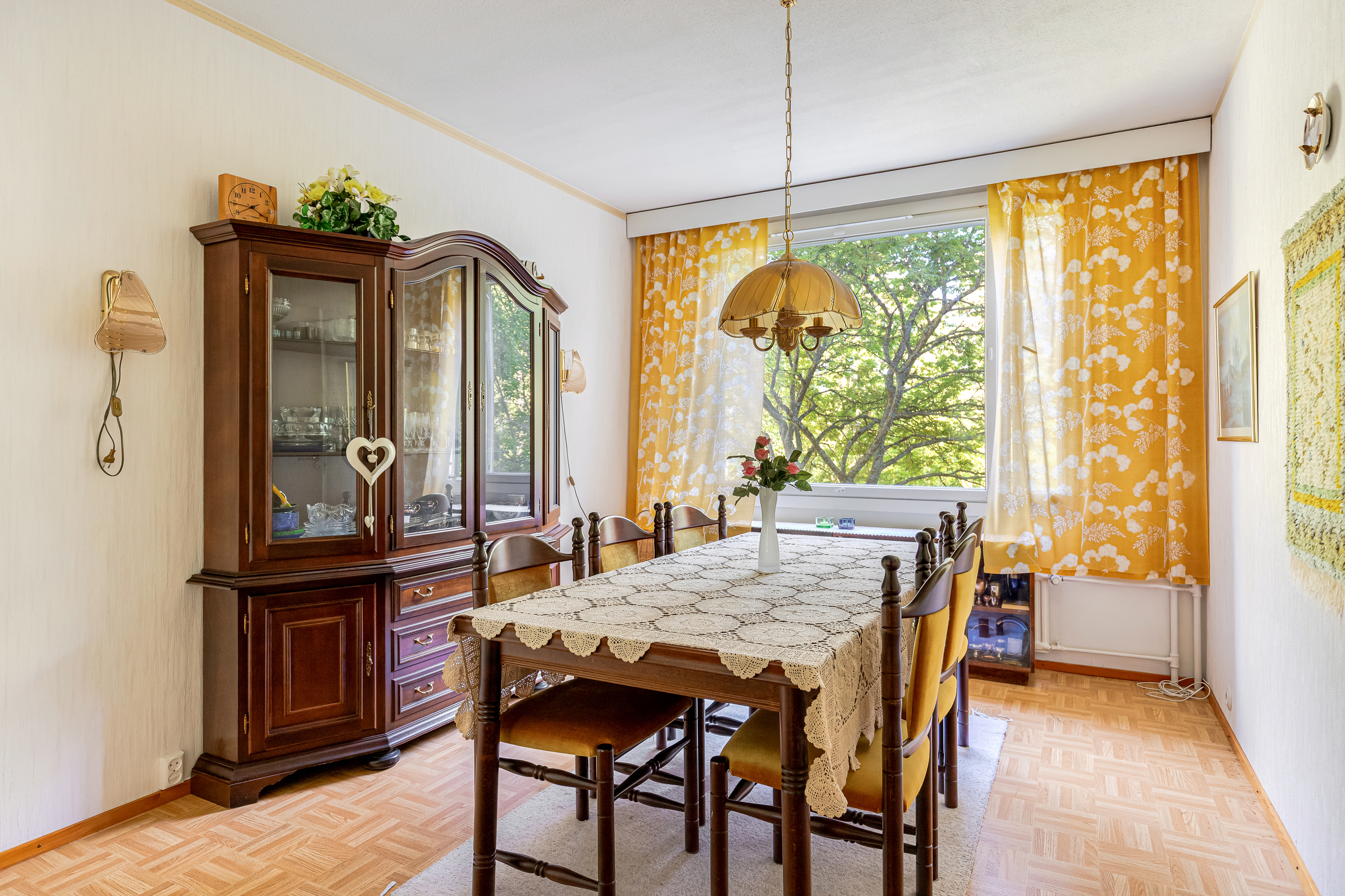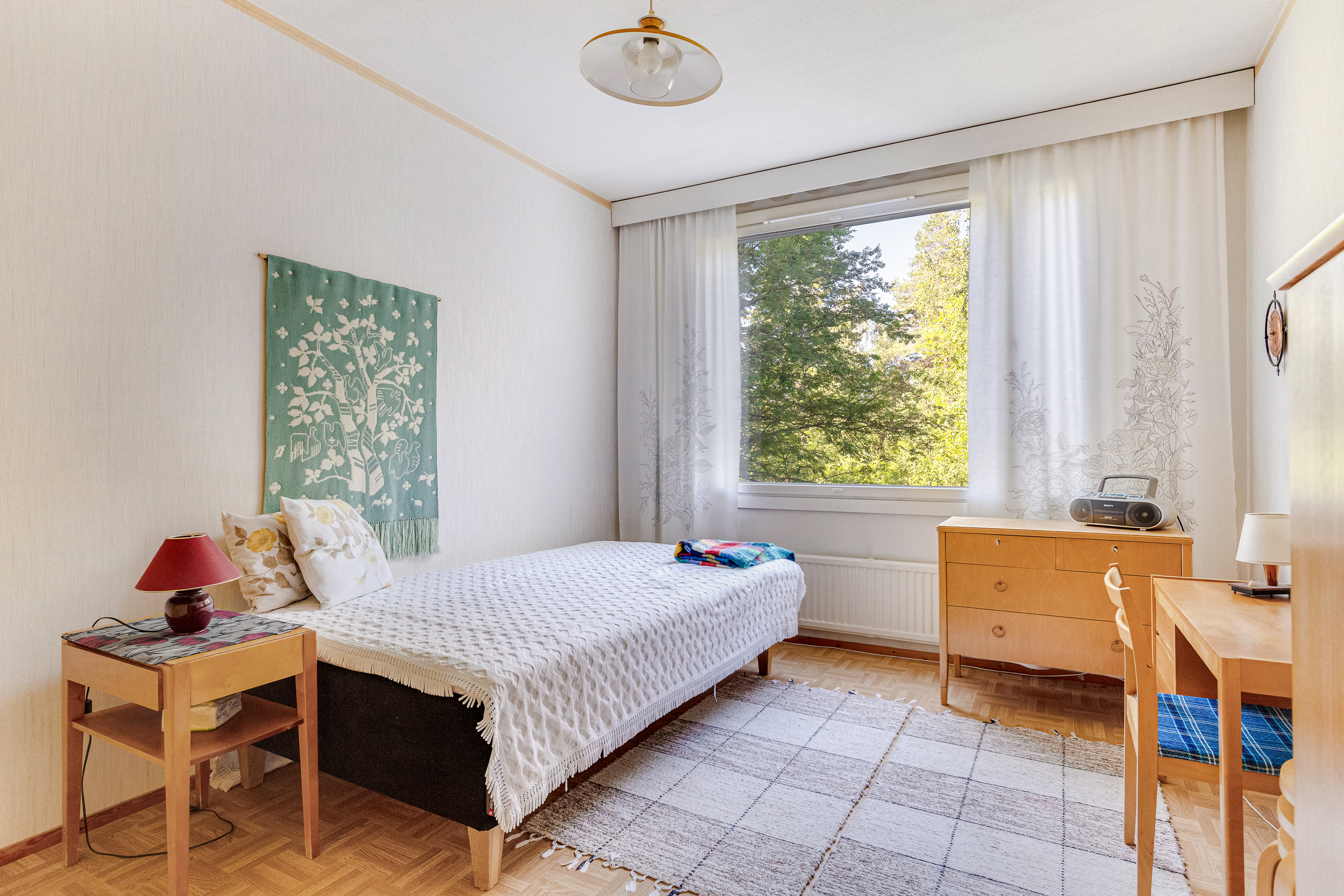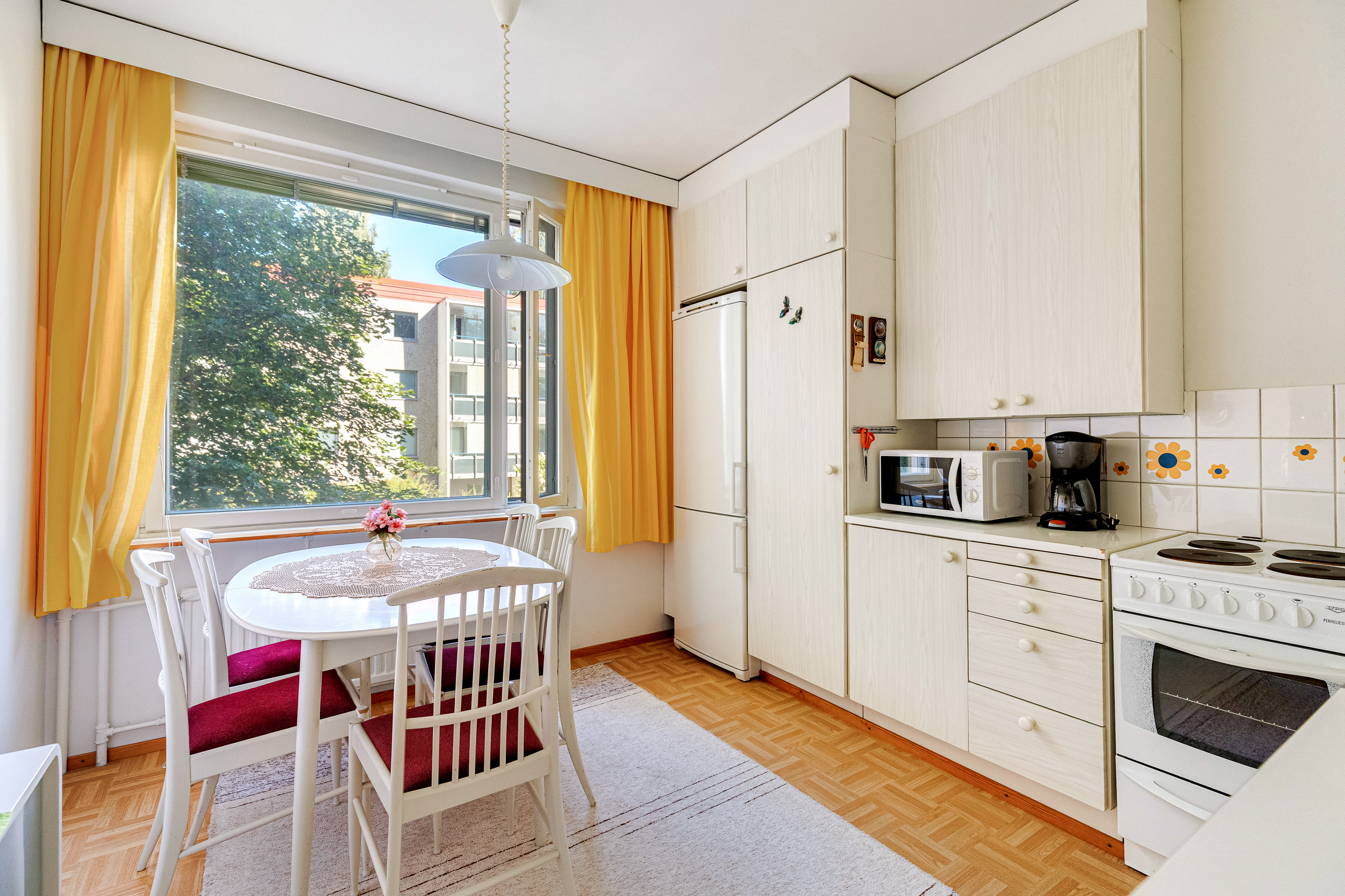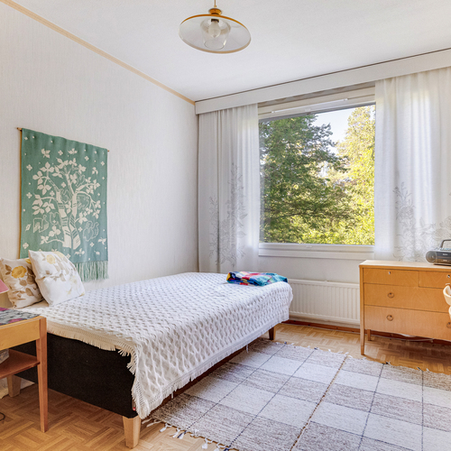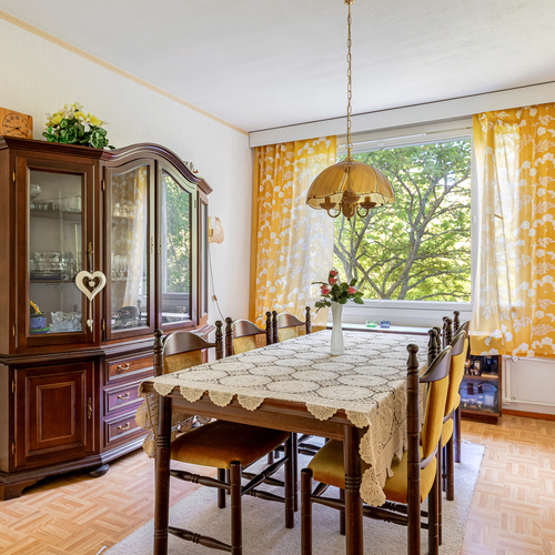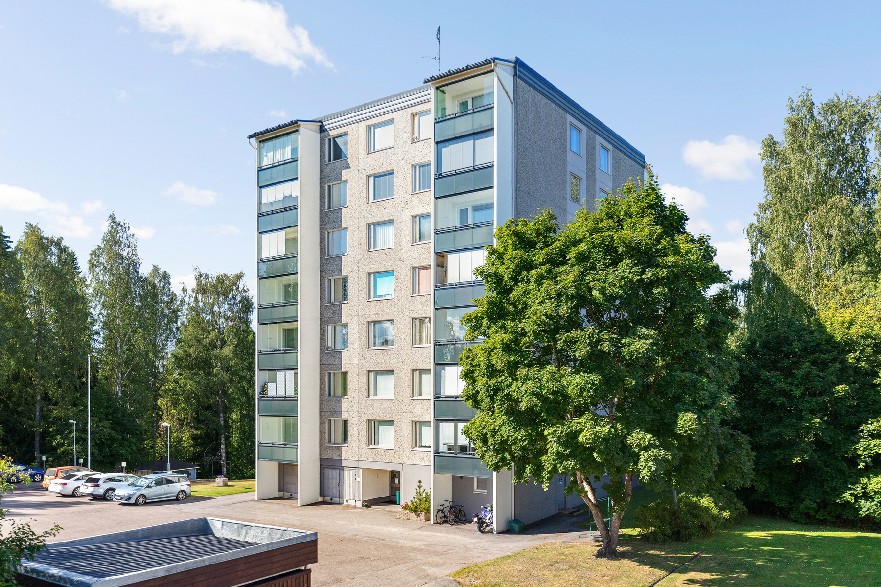 Tämä valoisa asunto tarjoaa selkeät ja tilavat huoneet, jotka luovat avaran ja viihtyisän tunnelman. Asunnon ikkunoista sekä parvekkeelta avautuvat kauniit, metsäiset maisemat, jotka tuovat luonnon lähelle arkea.